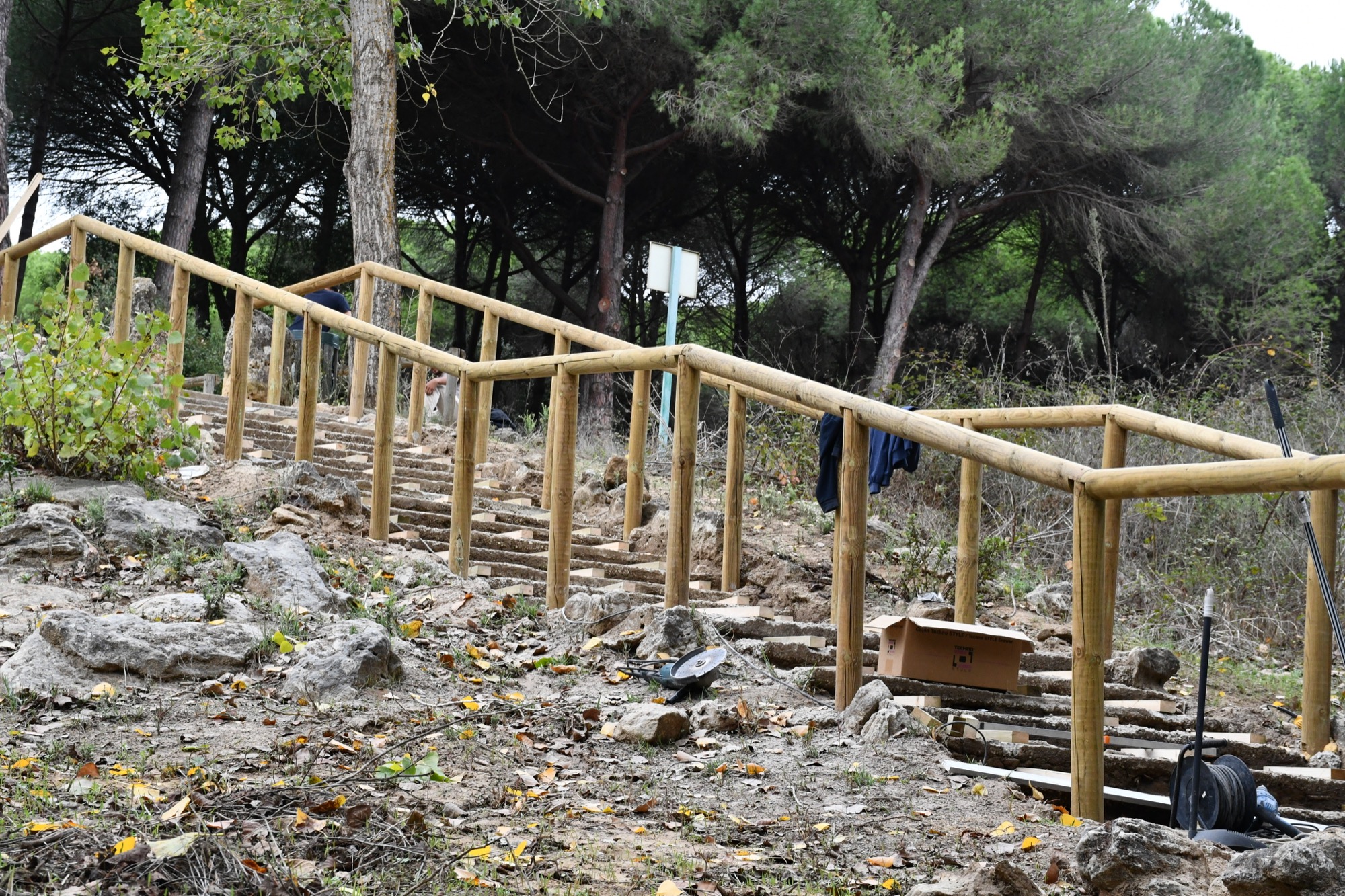 La Delegación de Obras y Servicios está ensanchando la pasarela que lleva a la Fuente de la Alhaja, además de reponer los elementos de madera del acceso a la misma. Se trata de preservar uno de los espacios más visitados del Pinar del Rey, el pulmón verde del municipio de San Roque.