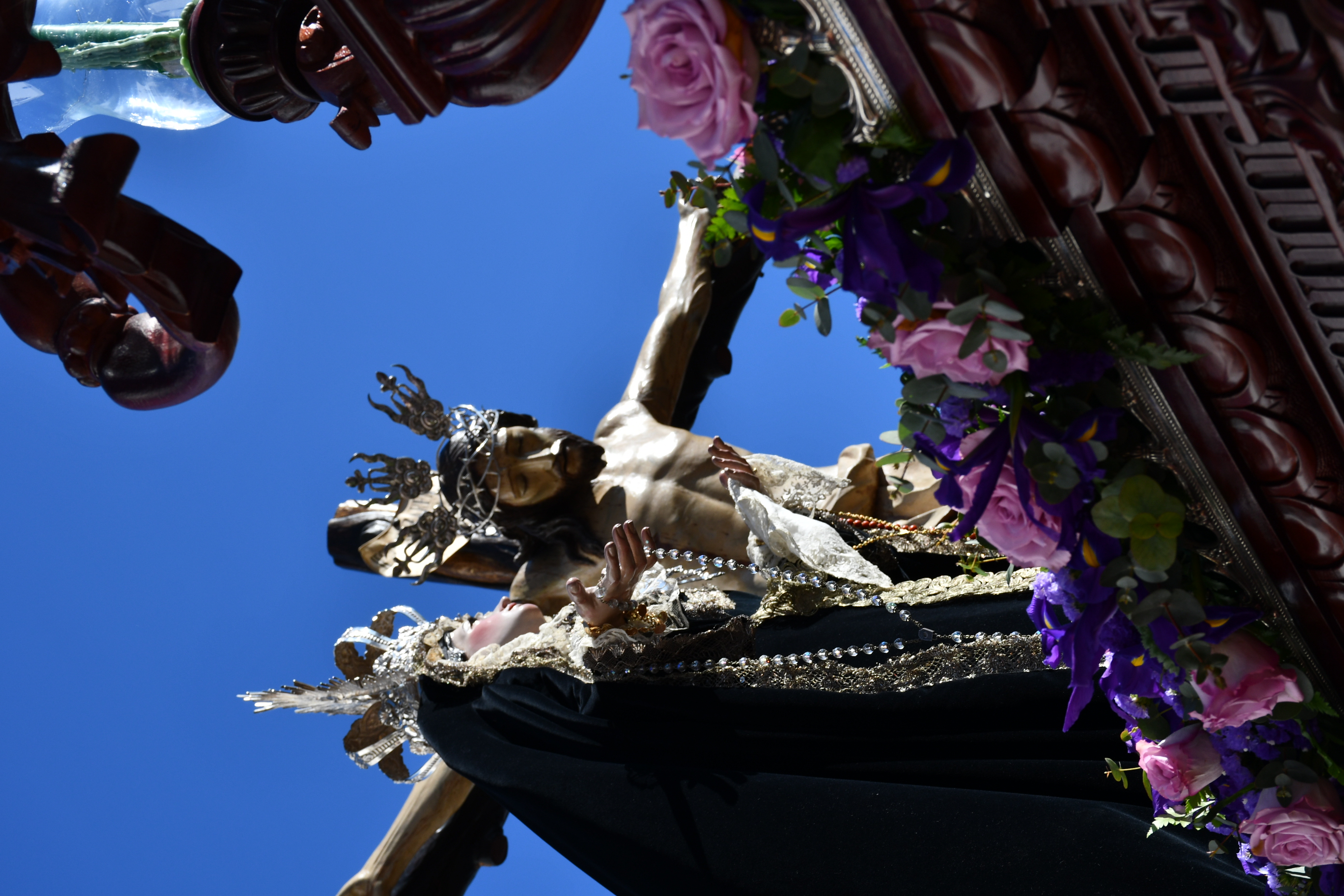 La Antiquísima y Venerable Hermandad del Santísimo Cristo de la Vera-Cruz en el Calvario (Cristo de las Aguas), María Santísima de las Penas, San Juan Evangelista y Santa María Magdalena ha participado este Viernes Santo en la Procesión Magna del Santo Entierro, que se desarrolla en San Roque desde las 16.00 horas.