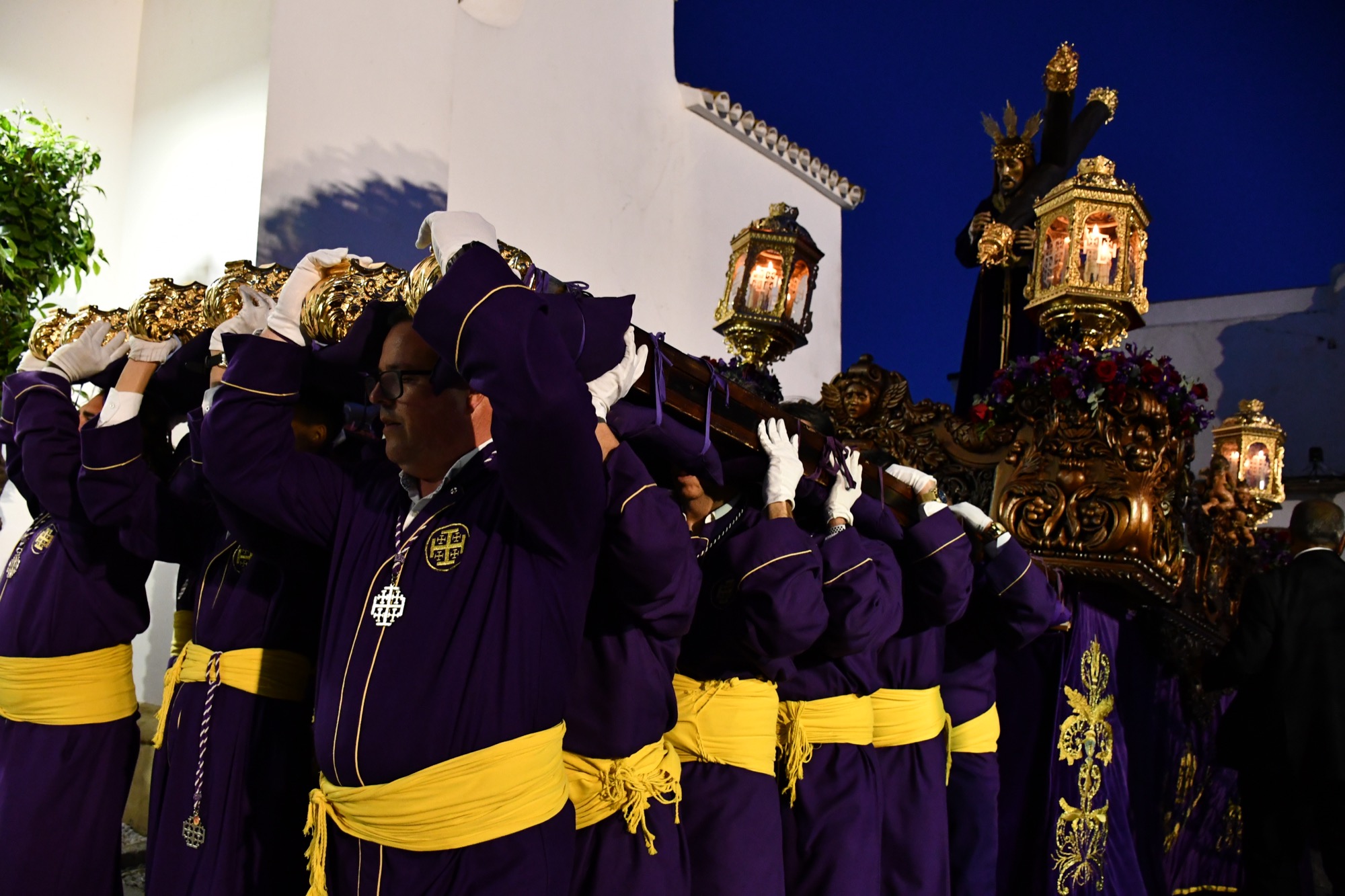 La Venerable Hermandad de Penitencia de Nuestro Padre Jesús Nazareno y María Santísima de los Dolores ha participado este Viernes Santo en la Procesión Magna del Santo Entierro, que se desarrolla en San Roque desde las 16.00 horas.