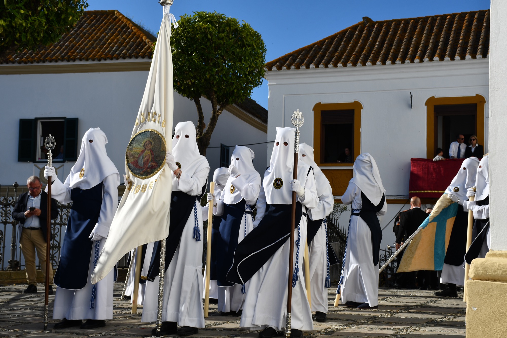 La Venerable Hermandad y Cofradía de Penitencia de Nuestra Señora de la Angustias ha participado este Viernes Santo en la Procesión Magna del Santo Entierro, que se desarrolla en San Roque desde las 16.00 horas.