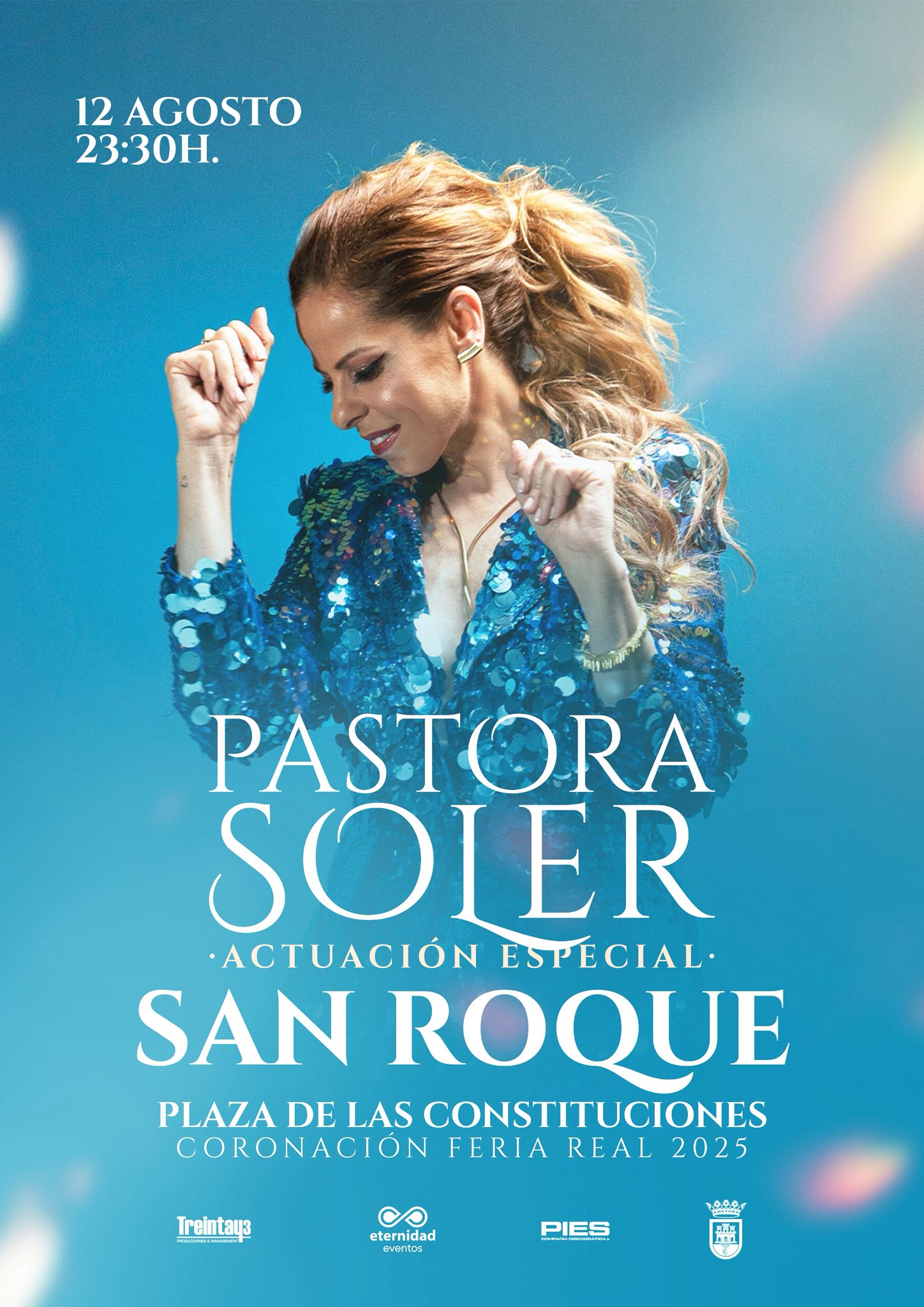 El acto de Coronación de María García y Lara Álvarez, como Reinas Juvenil y Infantil de la Feria Real de San Roque 2025, el martes 12 de agosto en la plaza de las Constituciones, tendrá como colofón la actuación actuación especial de Pastora Soler. Será un espectáculo concebido especialmente para esta ocasión tan destacada, y adaptado a la singularidad del evento y del entorno. Un verdadero privilegio para San Roque recibir a una artista de su trayectoria y sensibilidad, cuya presencia engrandecerá aún más uno de los actos más emblemáticos de nuestras fiestas.