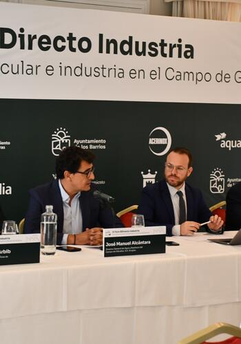 En la mesa se encontraban responsables de las empresas Aqualia y Arcgisa, así como de las empresas Acerinox y Moeve, y el debate ha sido conducido por el director de 8Directo, organizador del encuentro.