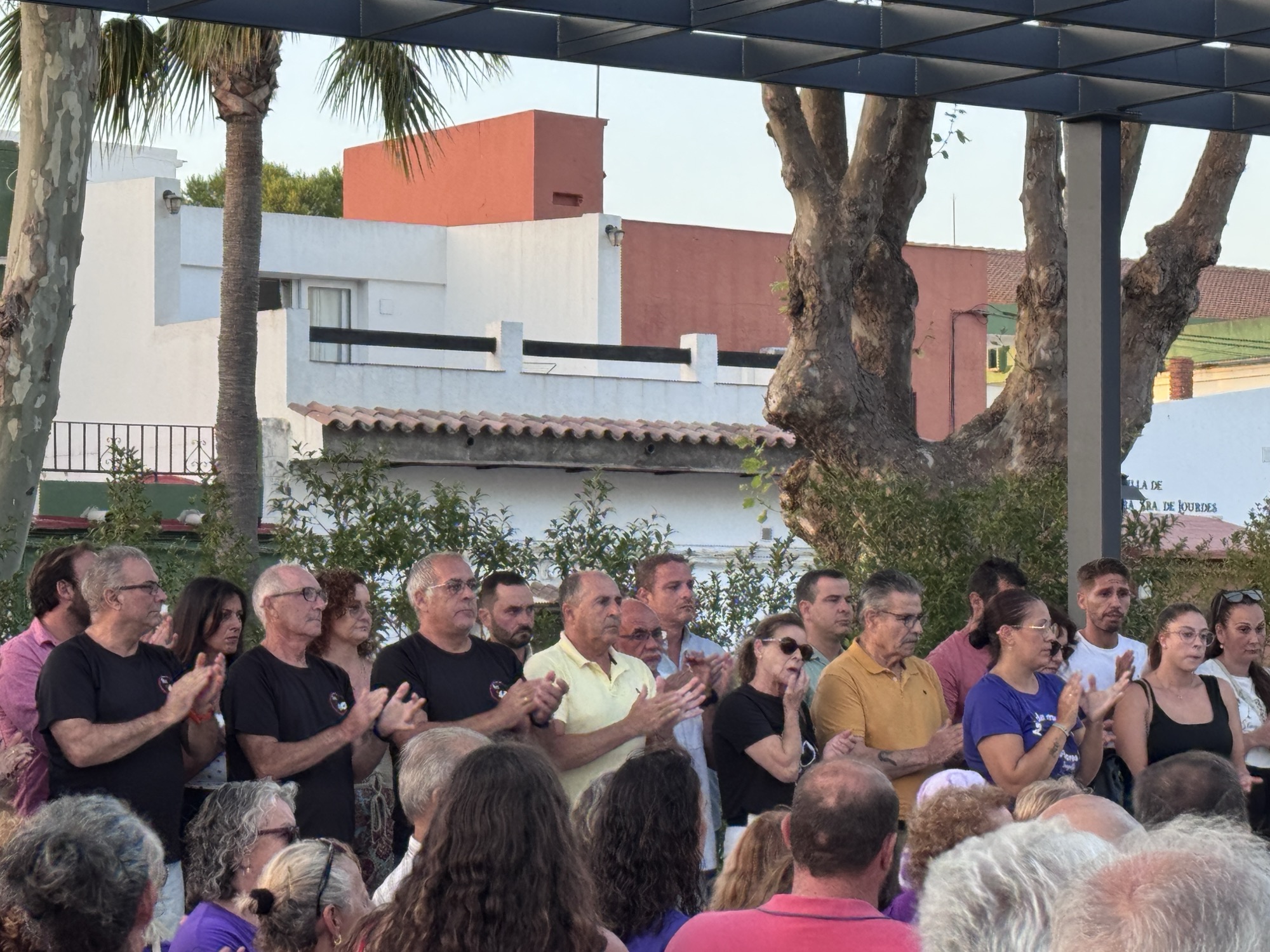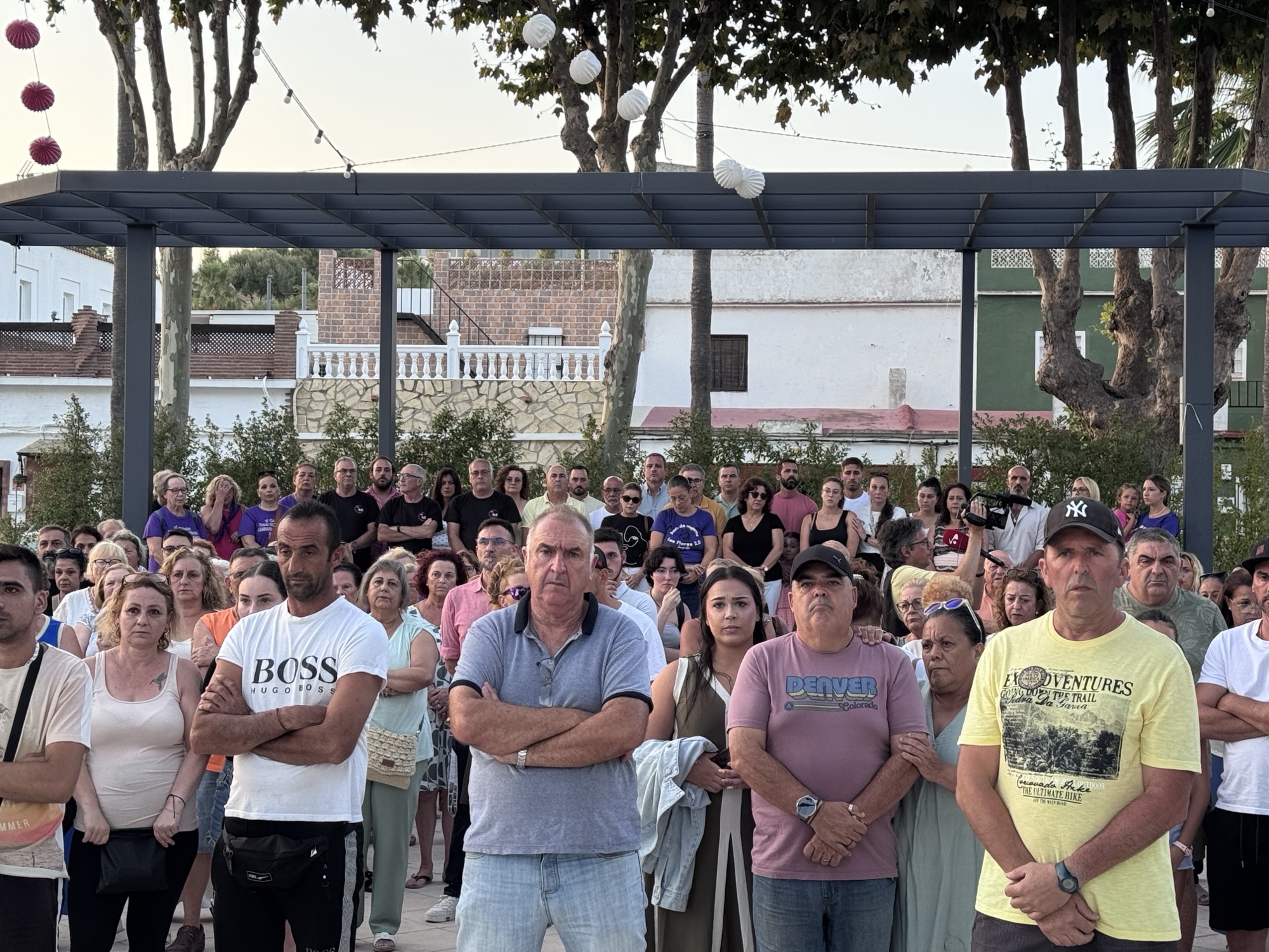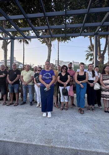 Diversos ediles de la Corporación, con el teniente de alcalde de la zona interior, Juan Serván, a la cabeza, asistieron en la tarde de ayer miércoles 30 a la concentración celebrada en Taraguilla por el asesinato de Miguel Ángel ‘el Lebrija’, el vecino asesinado en su domicilio el pasado 16 de julio.