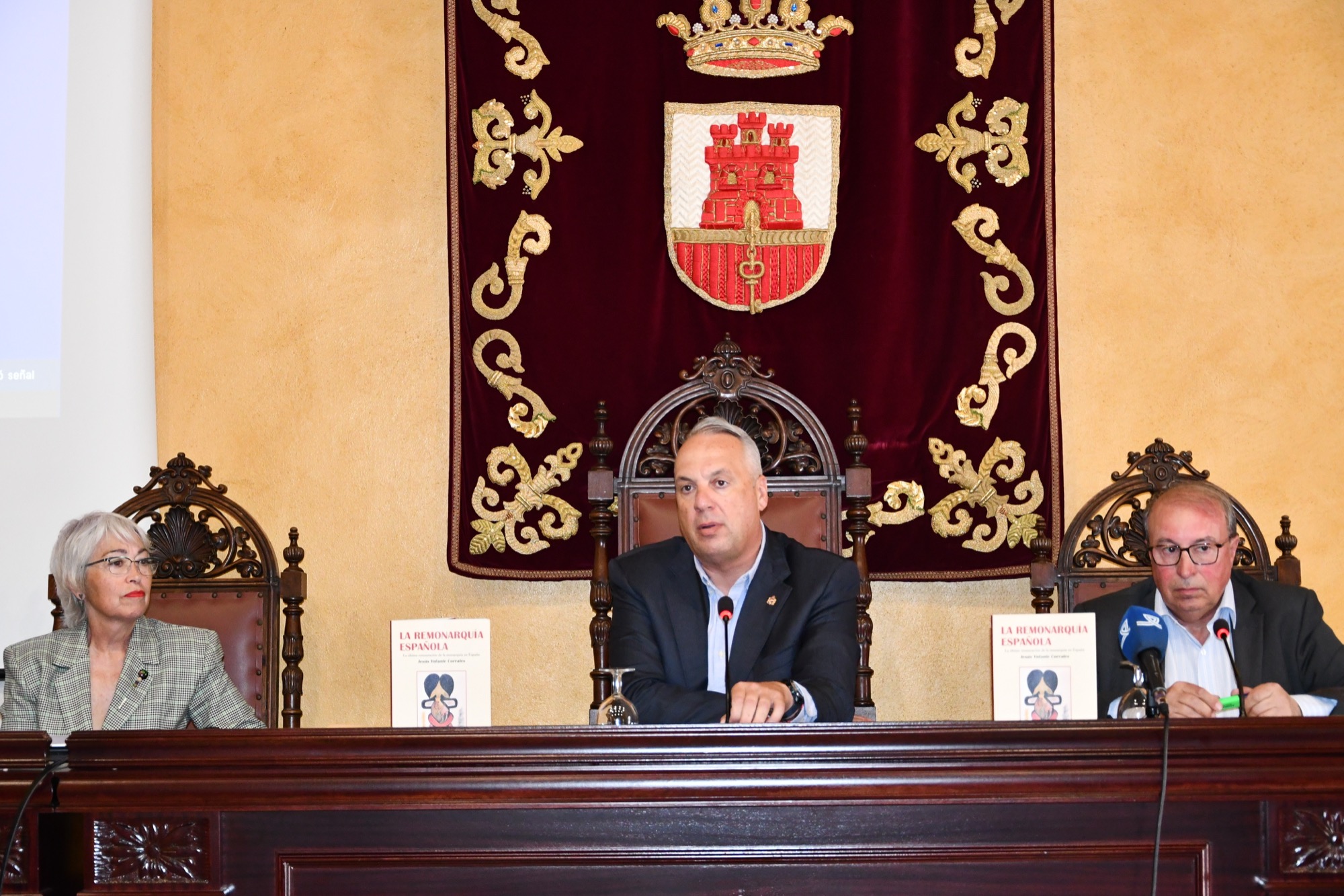 El Palacio de los Gobernadores ha acogido en la mañana de hoy, martes, la presentación del libro “La remonarquía española. La última restauración de la monarquía en España”, obra de Jesús Ynfante. El acto, presidido por el presidente de la Diputación y alcalde de San Roque, Juan Carlos Ruiz Boix, ha estado organizado por el ente provincial, el Foro por la Memoria del Campo de Gibraltar y la Casa de la Memoria “La Sauceda”.