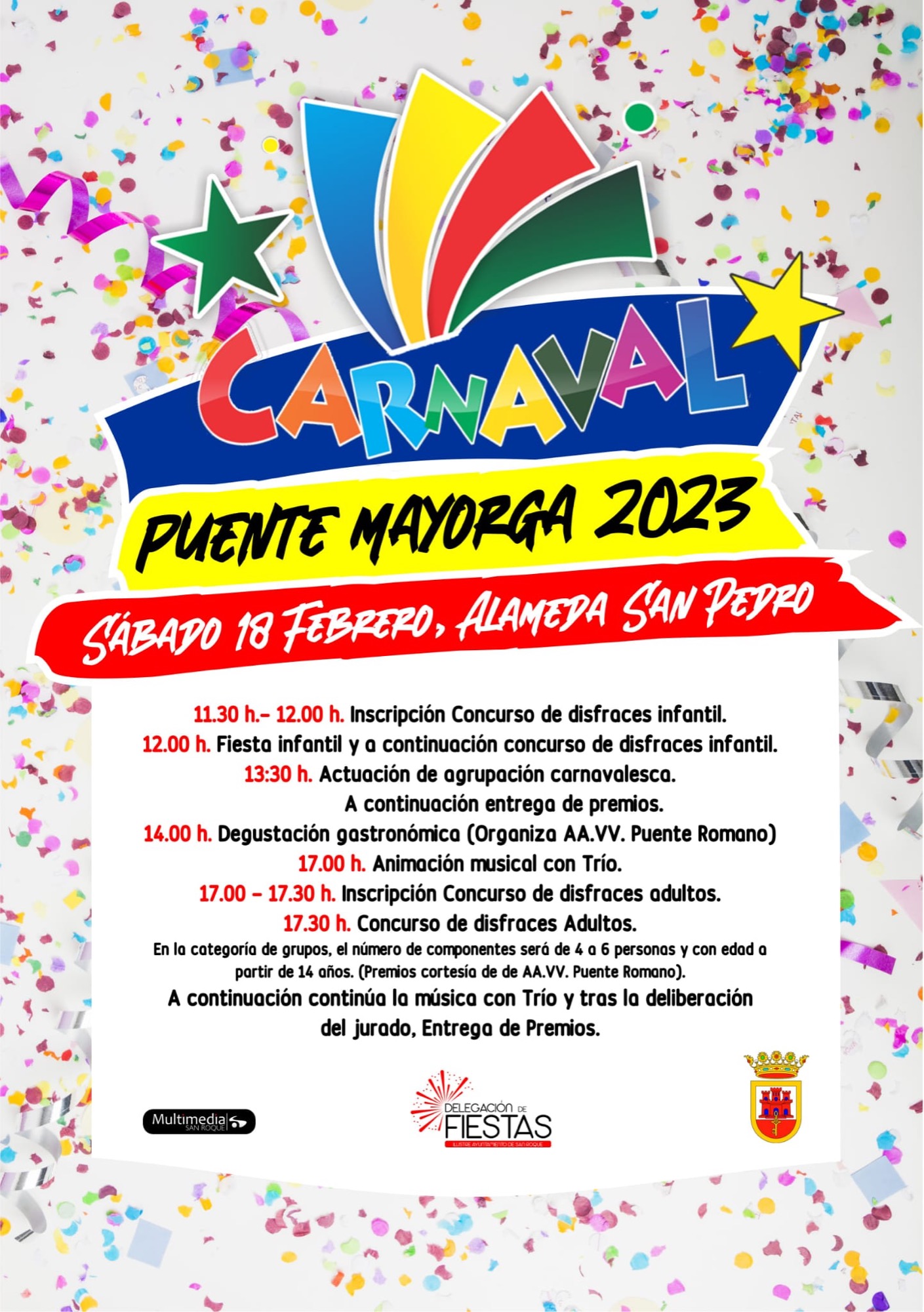 El Carnaval de Puente Mayorga tendrá lugar también el sábado, en la Alameda de San Pedro. Entre las 11.30 y las 12.00 horas se procederá a la inscripción para el Concurso de Disfraces Infantil, y a partir del mediodía tendrá lugar una Fiesta Infantil, que incluirá la celebración del citado concurso.