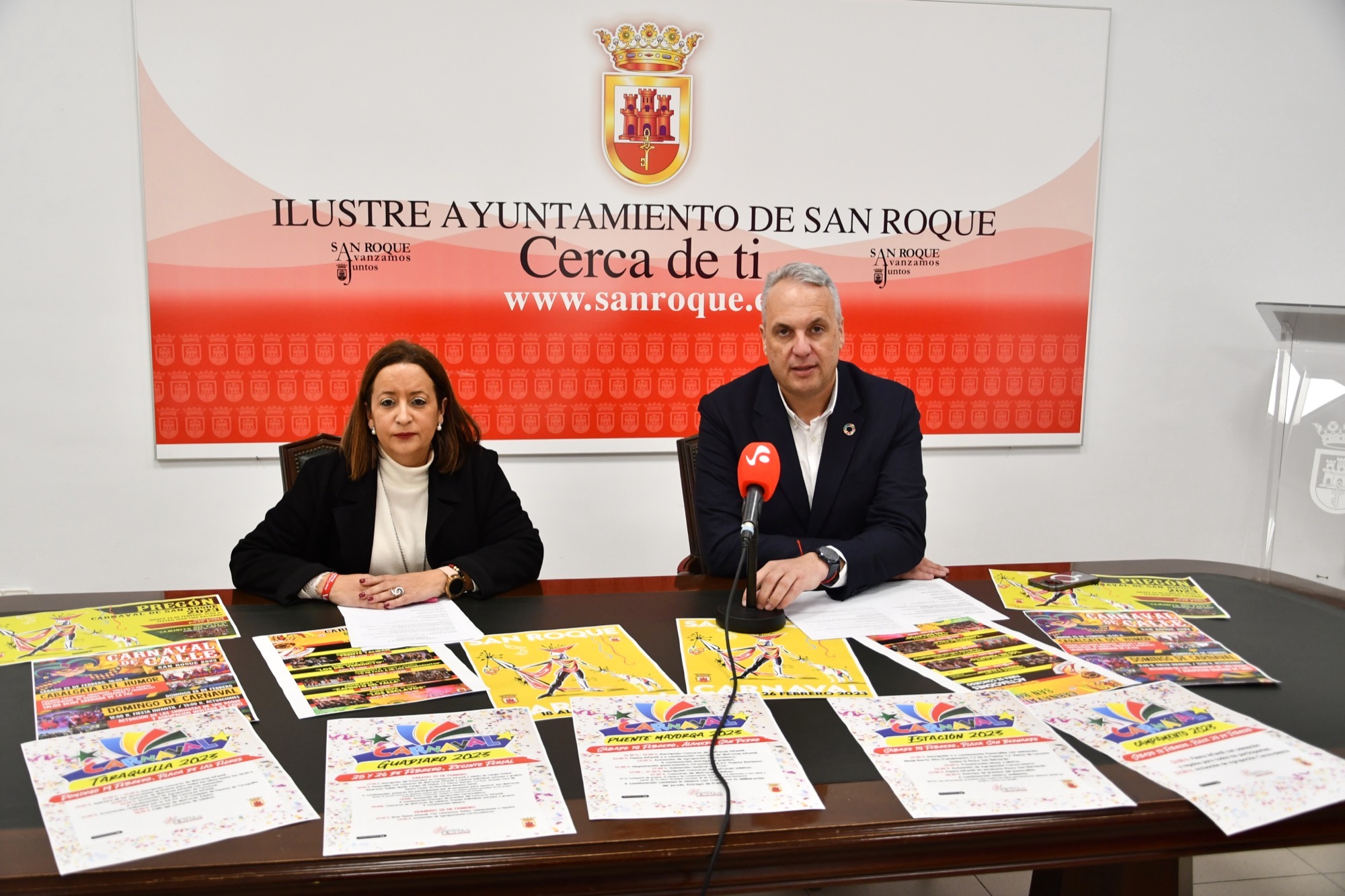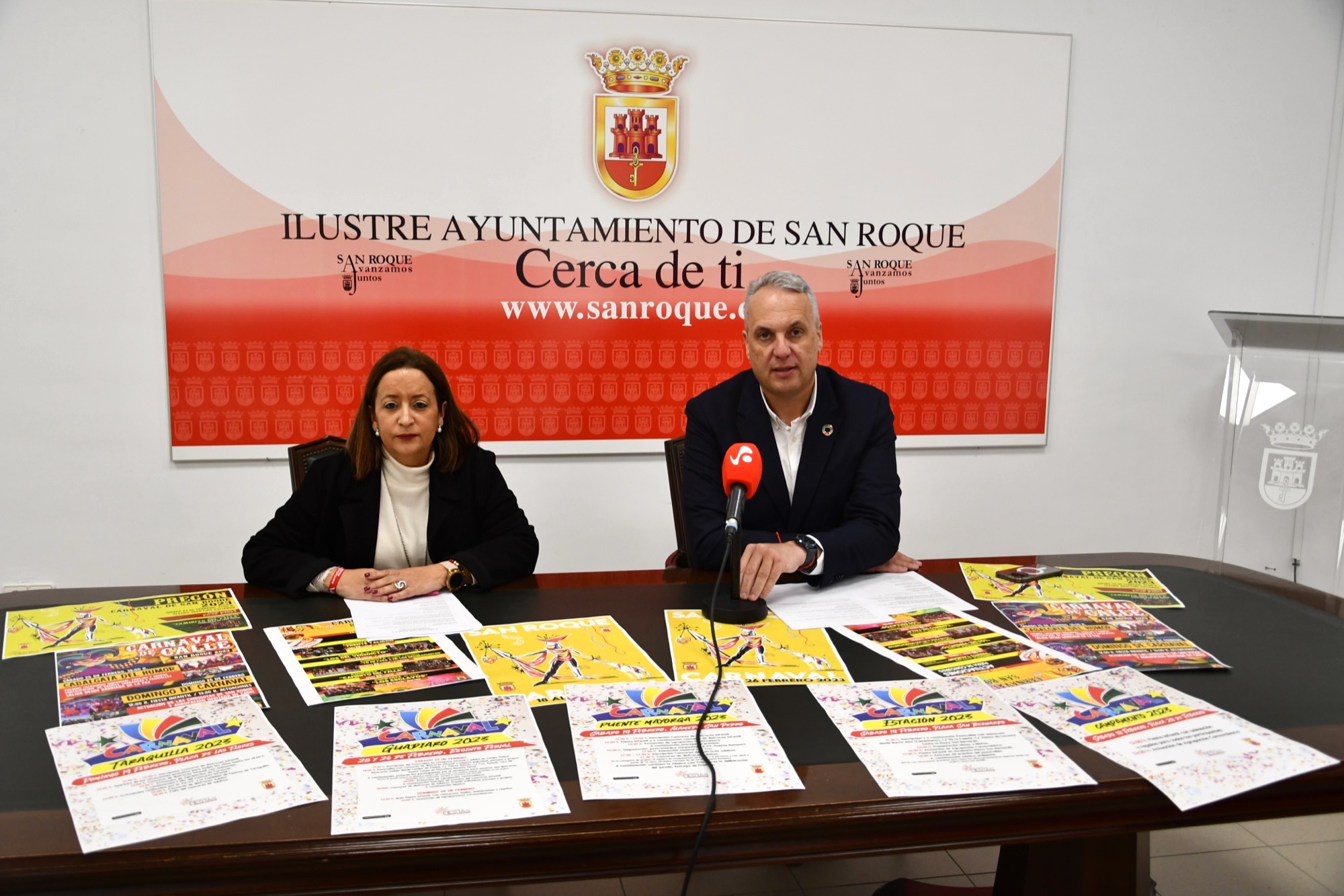 El alcalde, Juan Carlos Ruiz Boix, y la concejal de Fiestas, María del Mar Collado, han presentado hoy, martes, la programación del Carnaval 2023. Explicó el primer edil que durante “estas dos últimas semanas de febrero” se podrá disfrutar de un gran número de actividades a las que invitó a participar a toda la población sanroqueña.