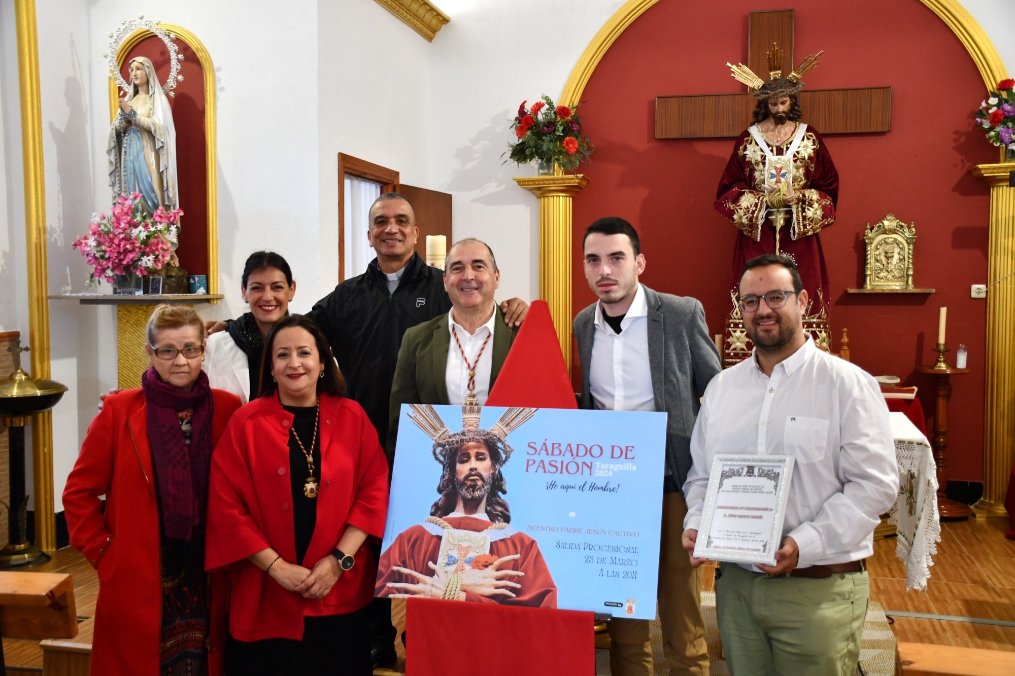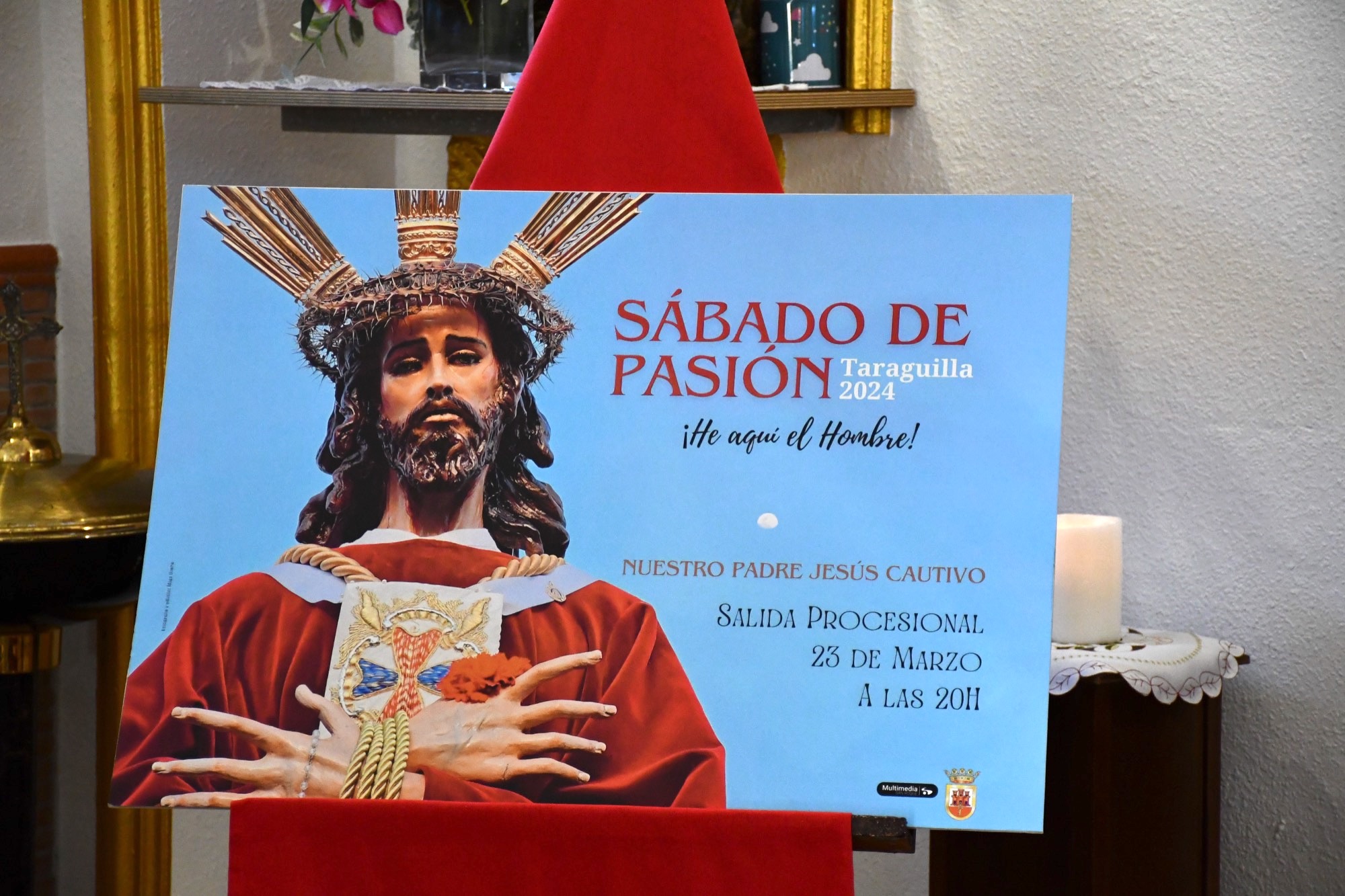 La Capilla de Nuestra Señora de Lourdes ha acogido en la mañana de este domingo la presentación del cartel del Sábado de Pasión de Taraguilla, cuando tendrá lugar la procesión de Nuestro Padre Jesús Cautivo. El cartel se basa en una fotografía de Íñigo Diarte.