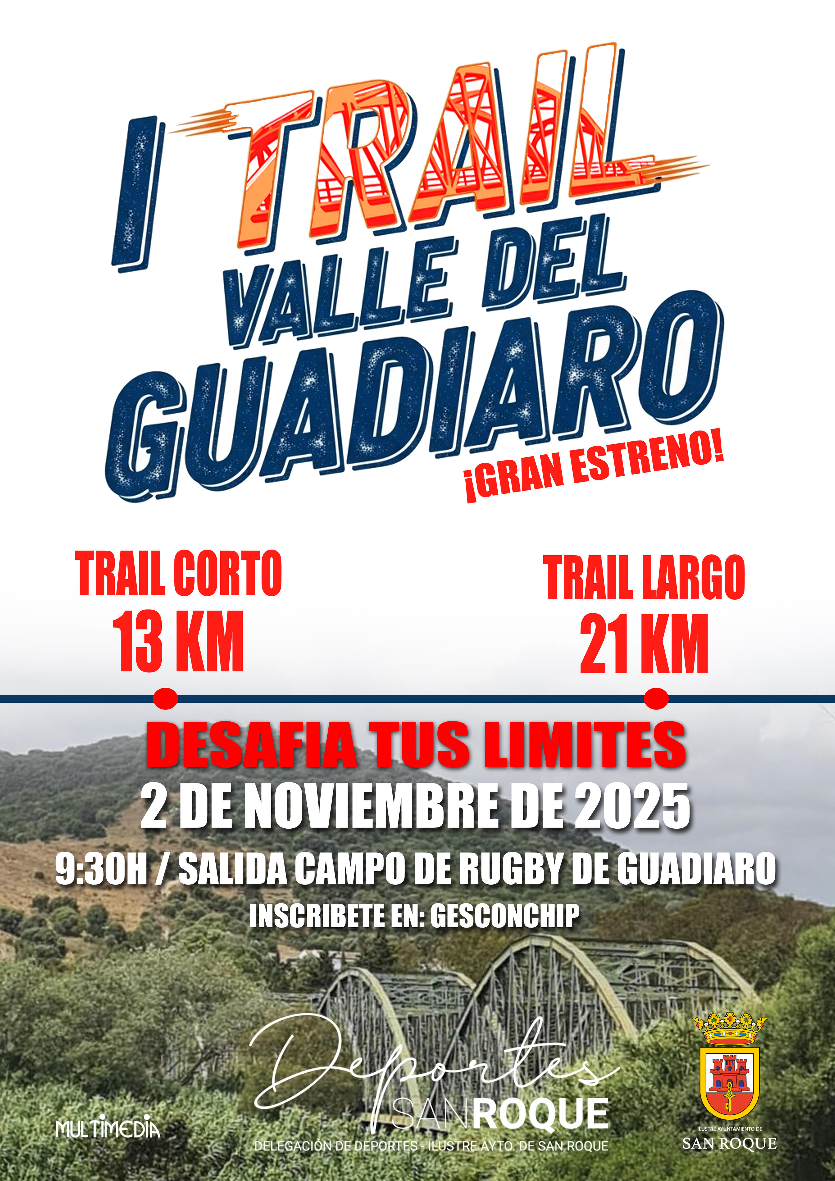 El próximo domingo 2 de noviembre se celebrará el I Trail Valle del Guadiaro 2025, que a su vez se dividirá en dos pruebas: una carrera corta de 13 kilómetros y otra larga de 21,4. Organiza la Delegación de Deportes del Ayuntamiento de San Roque y la salida y llegada se ha fijado en el campo de rugby de Pueblo Nuevo, aunque la mayoría del trazado discurrirá por distintos senderos rurales.
