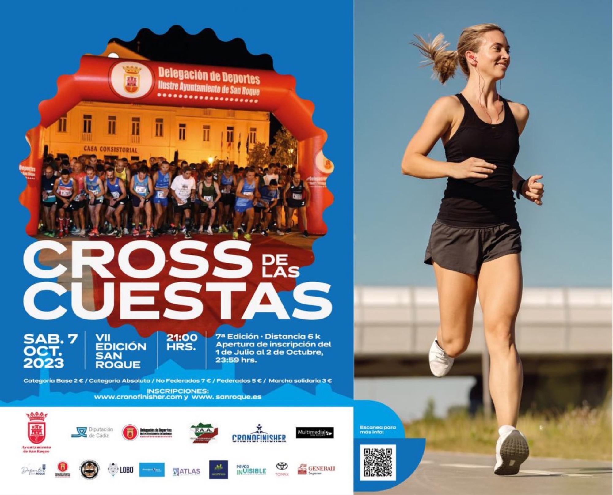 La Delegación de Deportes del Ayuntamiento de San Roque ha presentado hoy, jueves, la séptima edición del Cross de las Cuestas que se celebrará el sábado 7 de octubre, aunque la prueba para categorías inferiores será mañana, viernes 6. La cita que estará homologada por la Federación Andaluza de Atletismo, concentrará a 800 participantes locales y de la comarca.