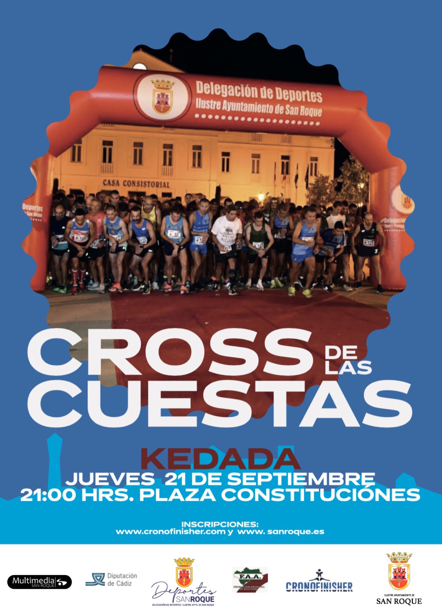 Son más de 70 personas de los siguientes colectivos quienes se han implicado en esta nueva entrega del Cross de las Cuestas: Club Atletismo San Roque, Club MTB Los Enmonaos, Club Running San Roque, Club Natación San Roque, Club Waterpolo San Roque, Agrupación Ciclista Sanroqueña, Club Deportivo San Roque, Club Centurias San Roque, Club Tenis Gaviota, Club Rítmica San Roque, Club Fútbol Sala San Roque, Protección Civil, Policía Local, Federación Andaluza de Atletismo, Cronofinisher que velarán por la seguridad de los participante durante la carrera.