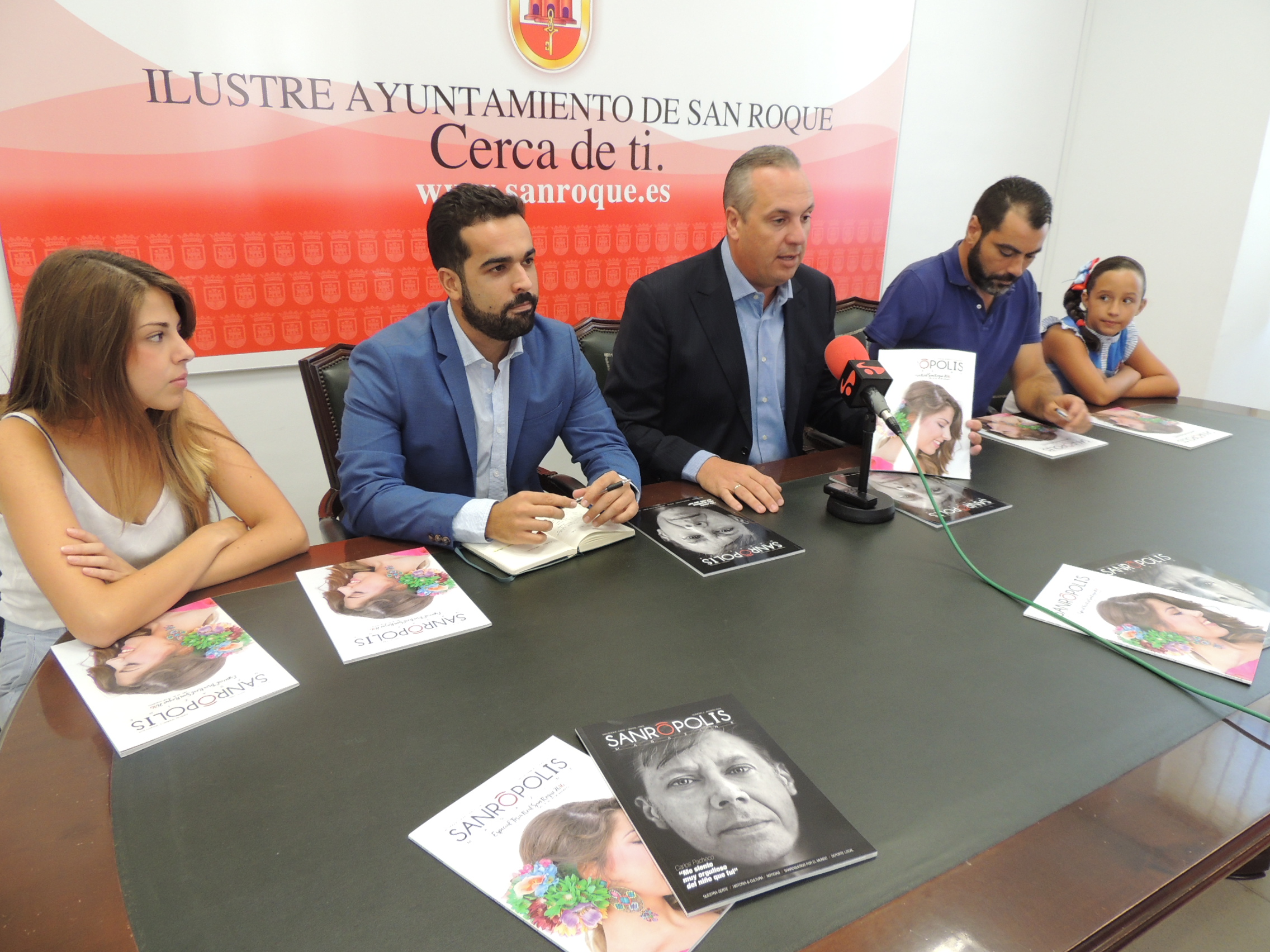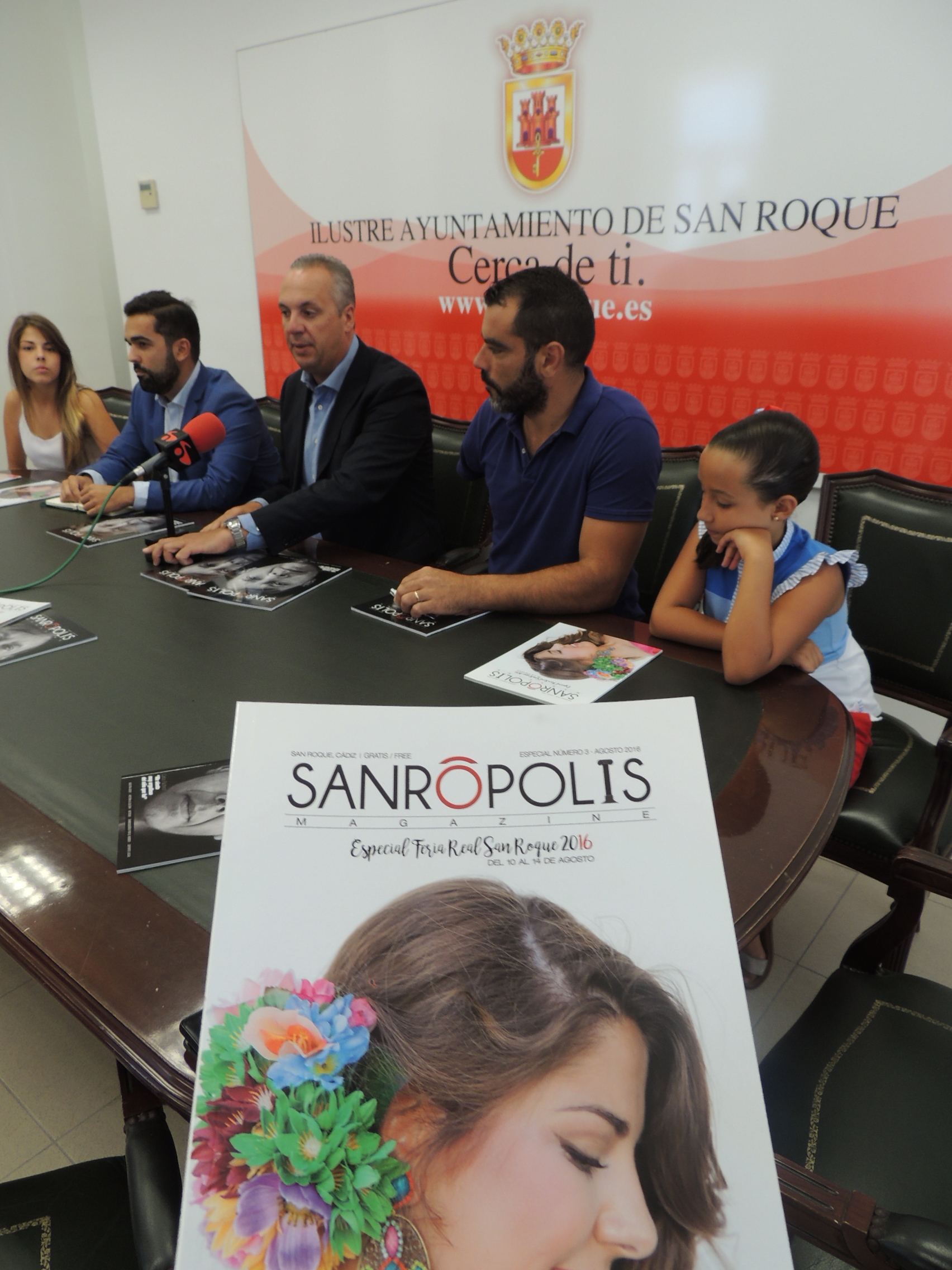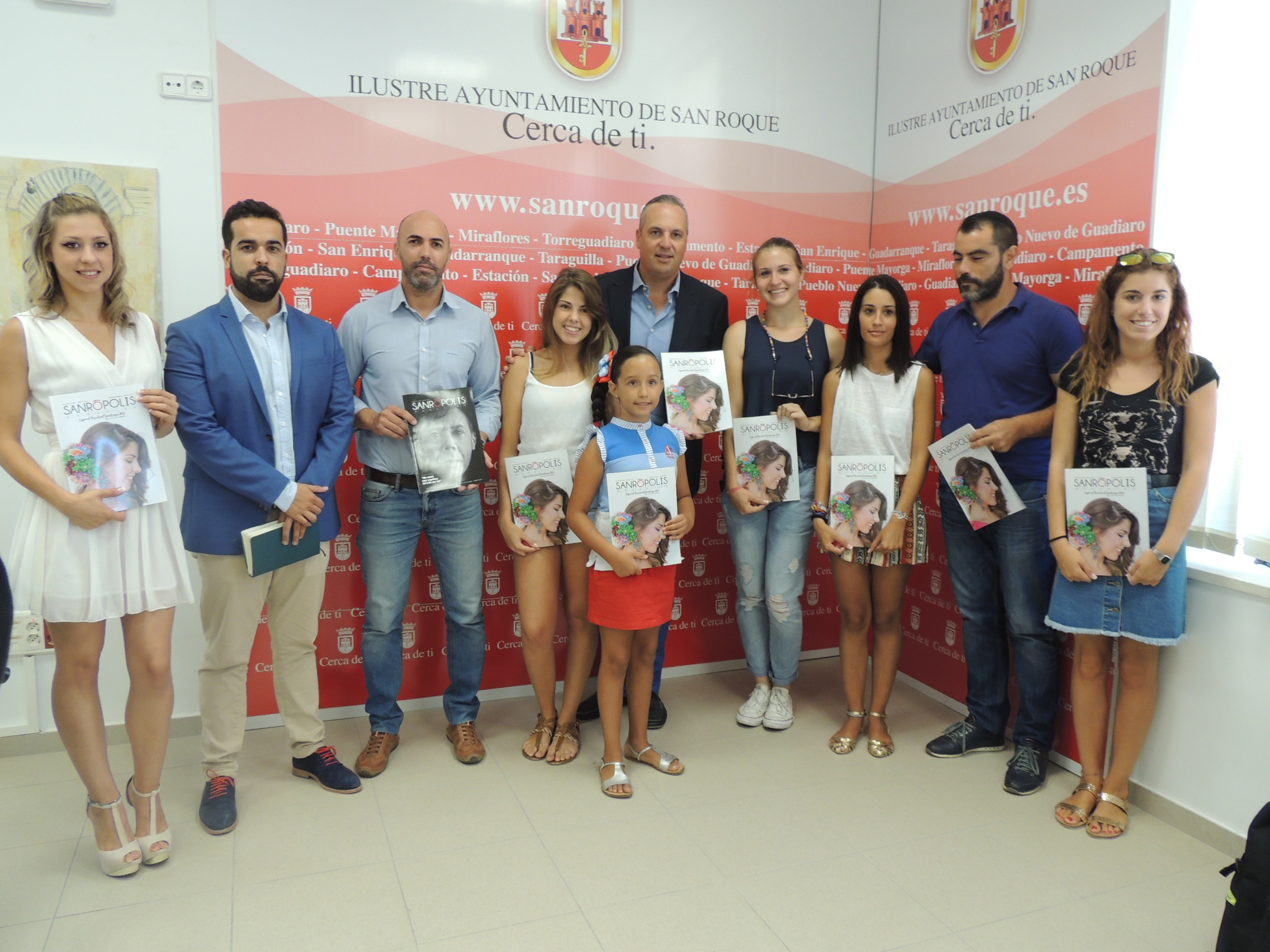 El alcalde de San Roque, Juan Carlos Ruiz Boix, y el director del grupo editorial Acento Edita, Juan José González, acompañados de las reinas infantil y juvenil de la Feria Real 2016, Yazmina Bartelo y María Rojas, han presentado en la mañana de hoy, martes, la edición especial de Feria de la Revista Sanrópolis, que alcanza su cuarta edición.