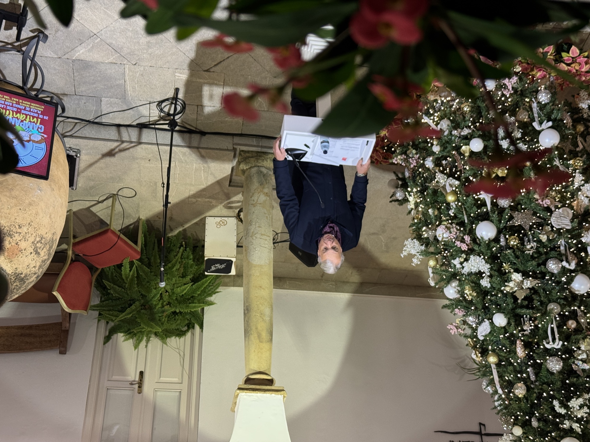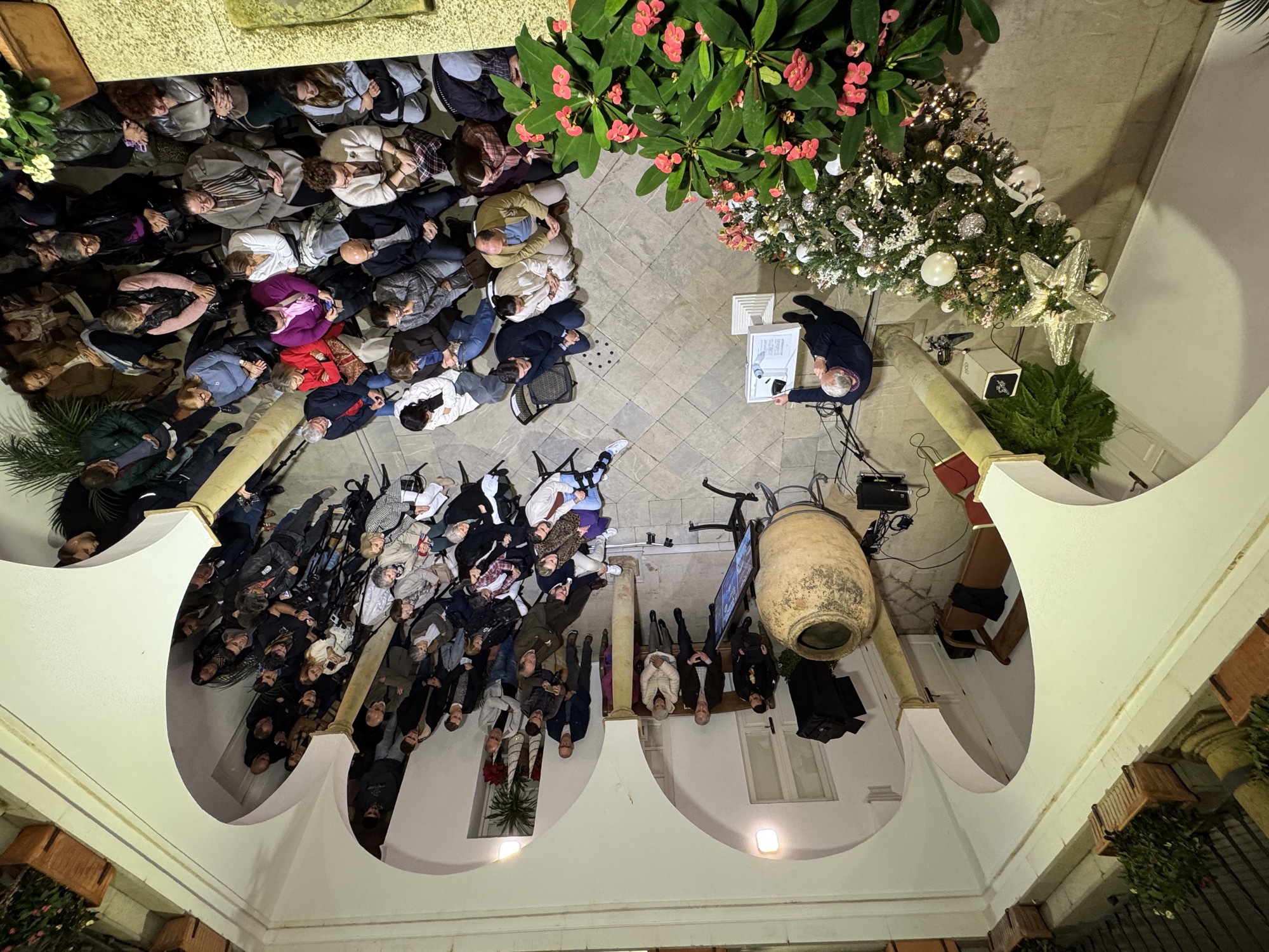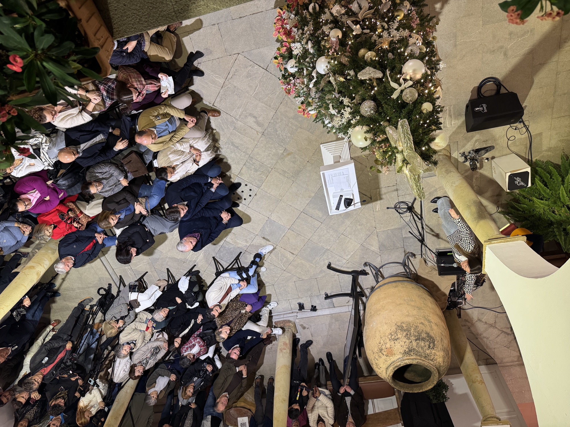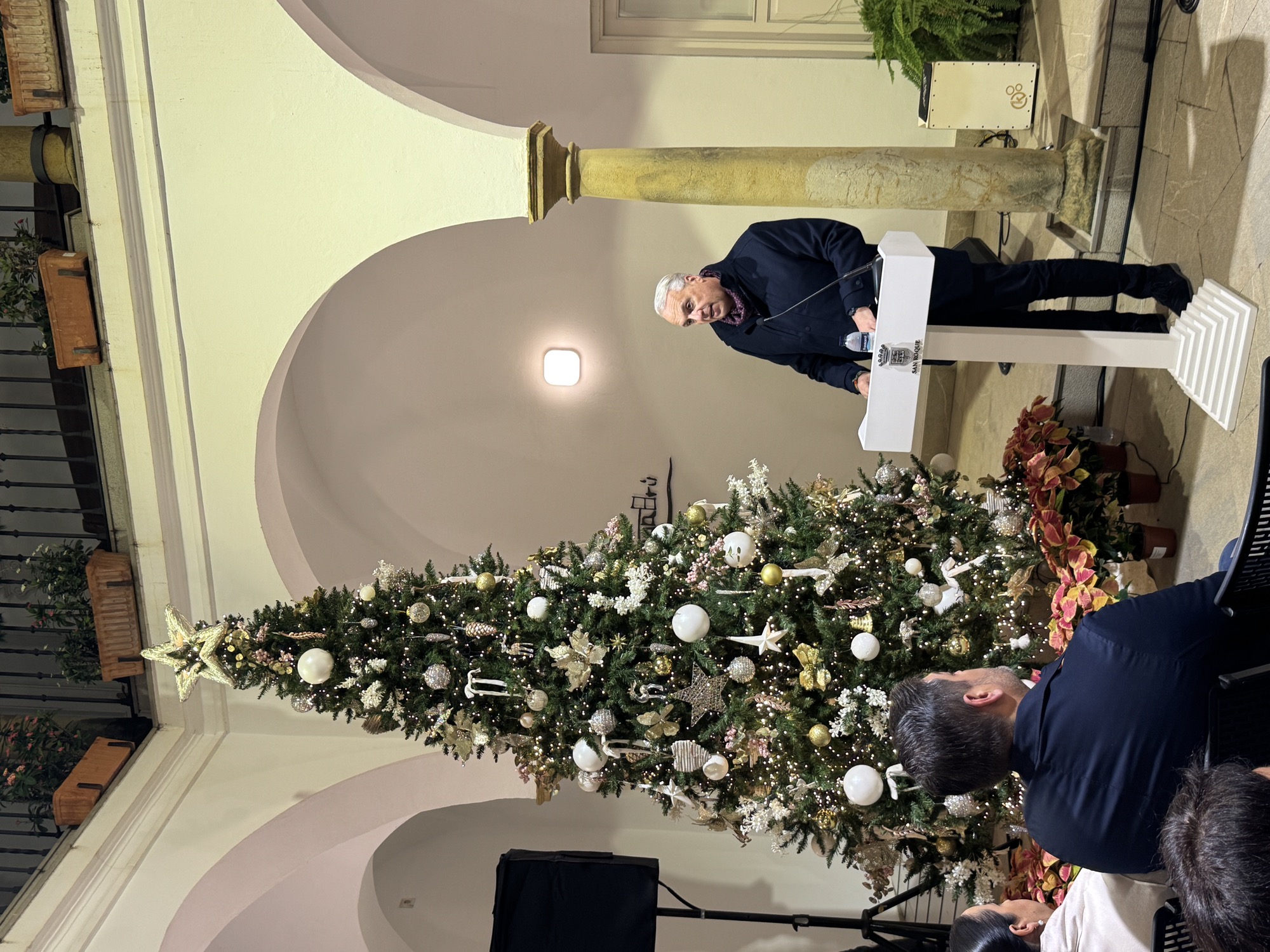 En la presentación, el alcalde señaló que “estas últimas semanas, en nuestros paseos por las calles y plazas, hemos visto cómo se iba engalanando San Roque y sus barriadas, se iban colgando las luces, los parques y jardines se llenaban de pascueros, o como en este Palacio de Gobernadores, con su árbol y esta decoración percibimos ya el ambiente navideño”.