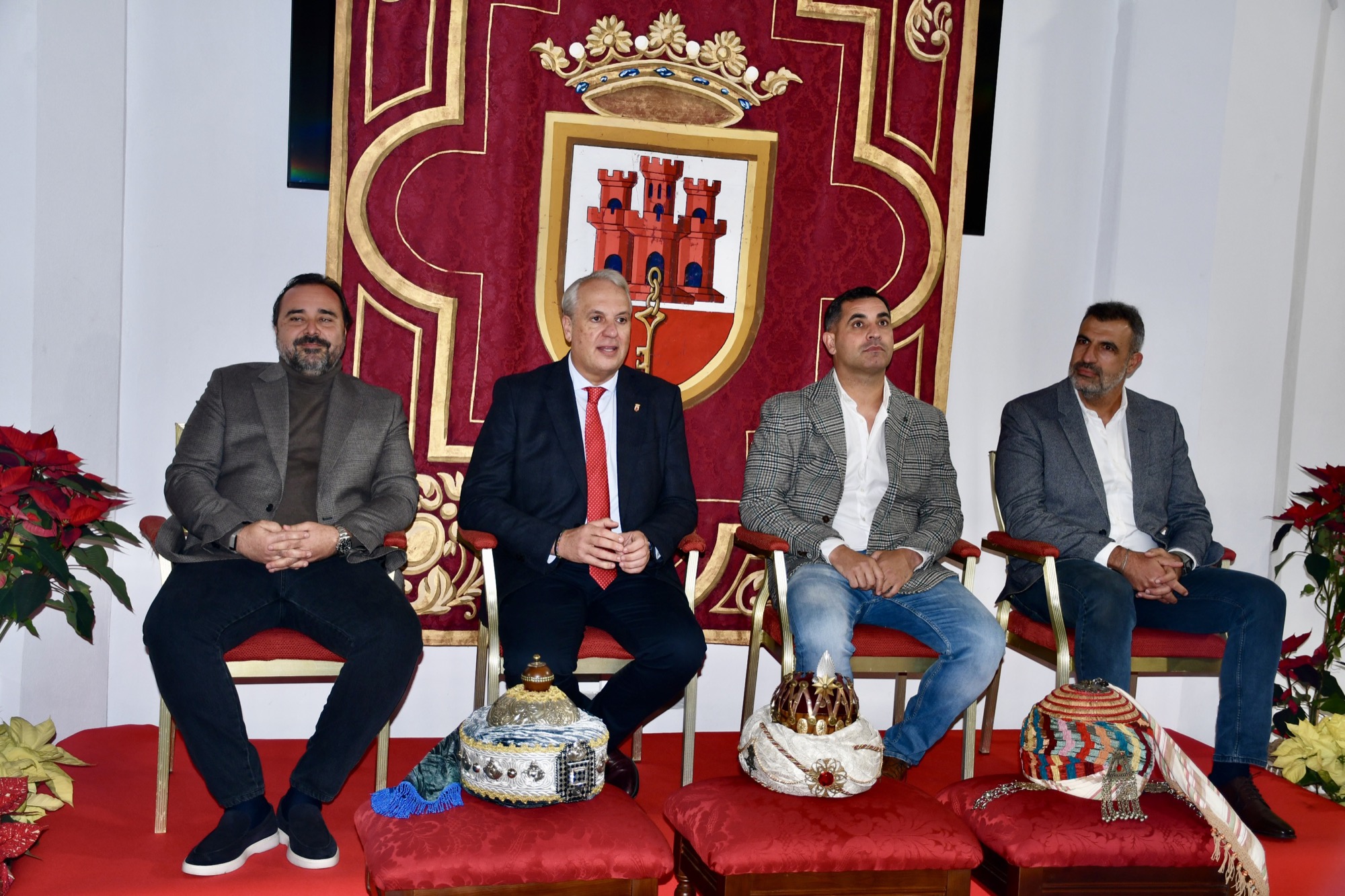 El alcalde, Juan Carlos Ruiz Boix, ha presidido este martes la presentación de las personas que el próximo 5 de enero encarnarán a los protagonistas de la Cabalgata de Reyes 2026 en San Roque. Se trata de los empresarios Raúl Martín, Juan Barberán y Jesús de Andrés, como Melchor, Gaspar y Baltasar, y de la coreógrafa Vanessa Orrán y del músico Manuel Zamora como Estrella de la Navidad y Emisario Real, respectivamente.