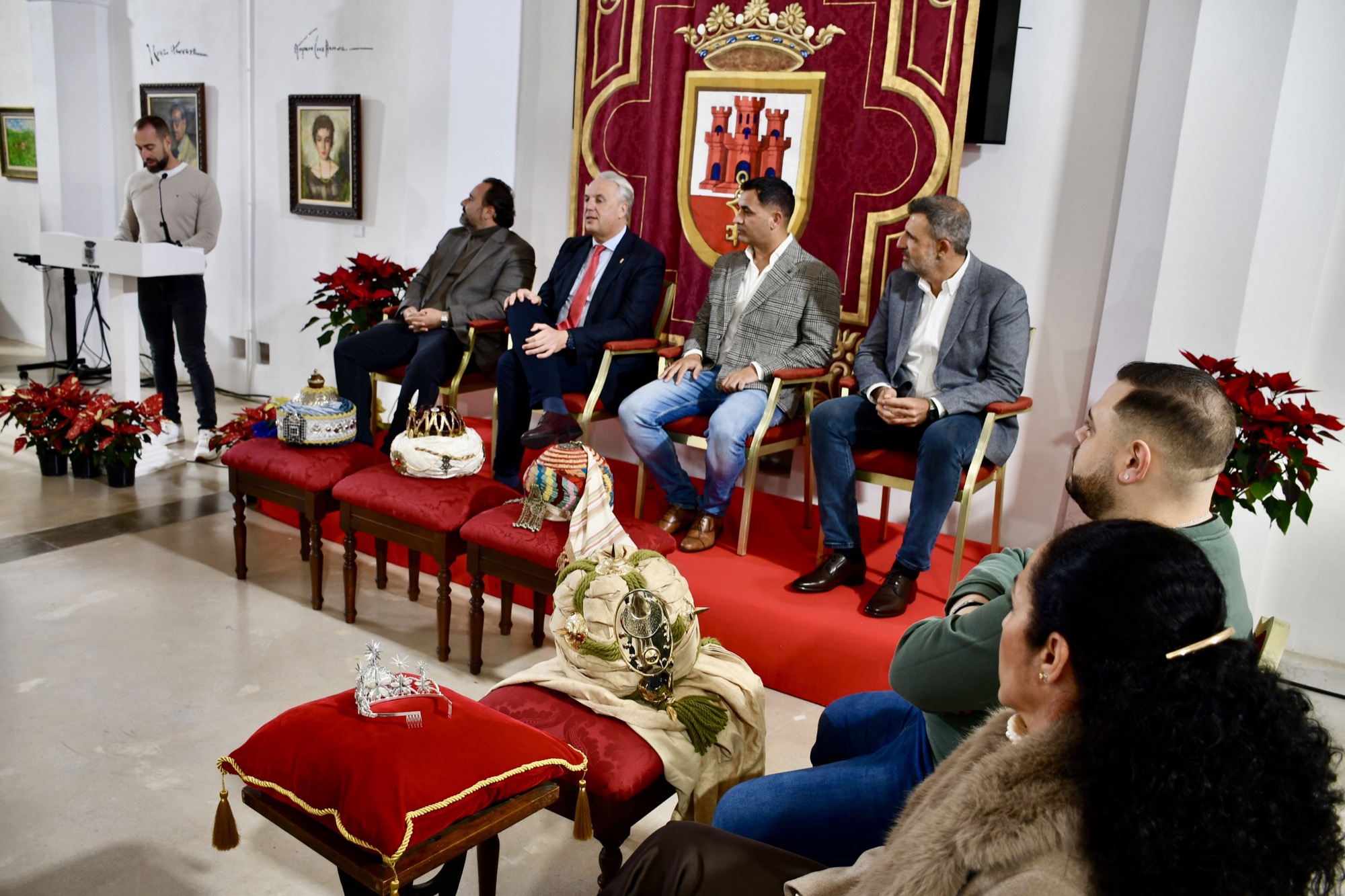 A continuación, el alcalde, Abel Heredia y otros ediles del Equipo de Gobierno entregaron las coronas a los tres Reyes Magos, la diadema a la Estrella de la Ilusión, y el sombrero al Emisario Real. Luego se pudo disfrutar del visionado de un vídeo elaborado por Multimedia con un villancico cantado por la sanroqueña Daniela Niebla, quien cuenta con el acompañamiento de un cuadro de baile coreografiado por Sara Rojas.