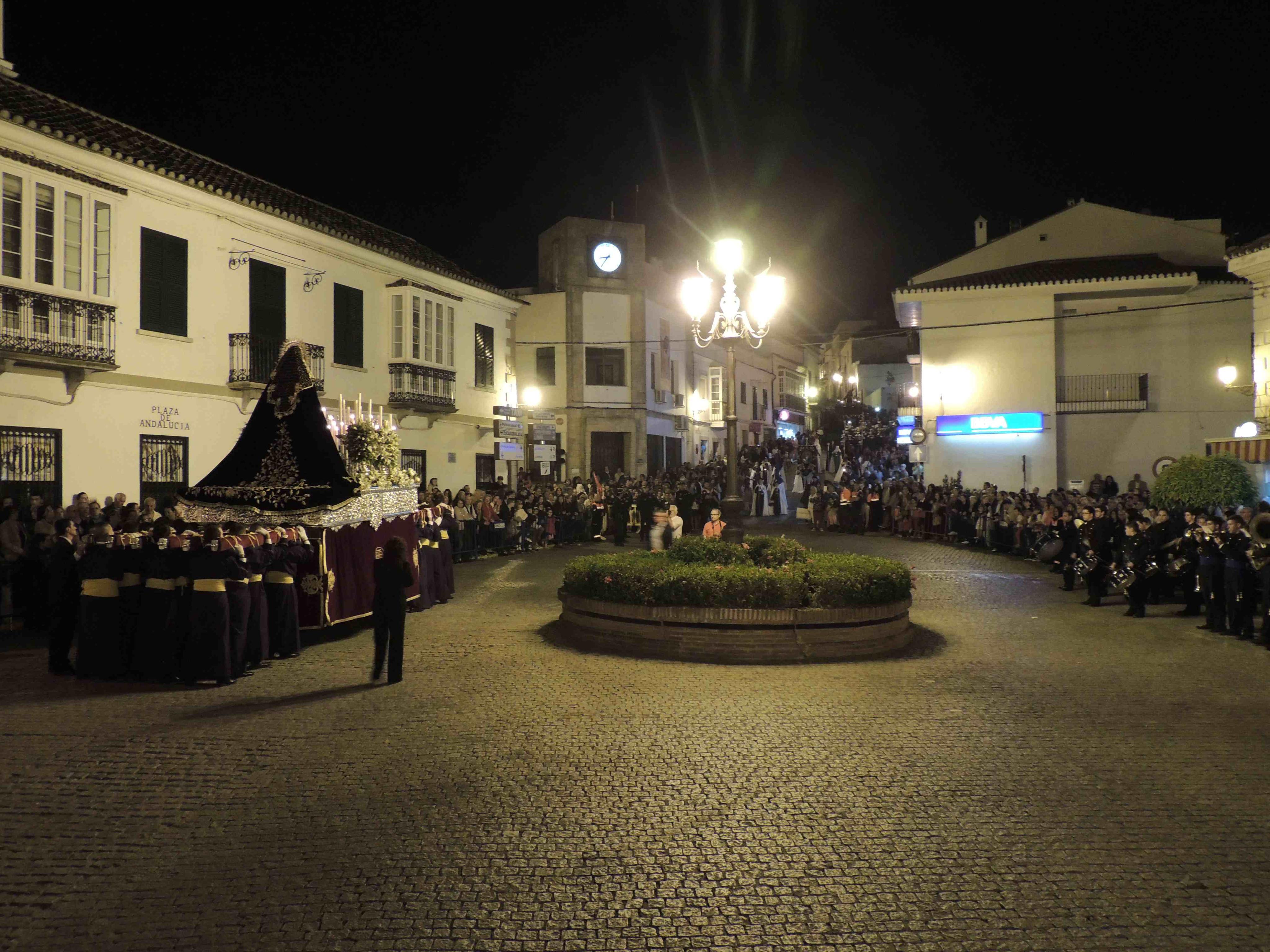 La Venerable Hermandad de Nuestro Padre Jesús Nazareno y María Santísima de los Dolores comenzó su estación de penitencia con la salida de la imagen de la Virgen desde la Parroquia Santa María la Coronada a las 20.00 horas, para discurrir por Plaza de la Iglesia, Siglo XX, Los Cañones, Médico Augusto Alcaide, Francisco Tubino, Pasaje Santa Ana, San Felipe, y Plaza de Andalucía.Por su parte, a las 20.30 partió el Cristo desde la Visitación, para ir en procesión por las calles Coronel Moscoso, General Lacy, Almoraima, San Felipe, y Plaza Andalucía, donde está previsto el Santo Encuentro a las 22.00 horas.