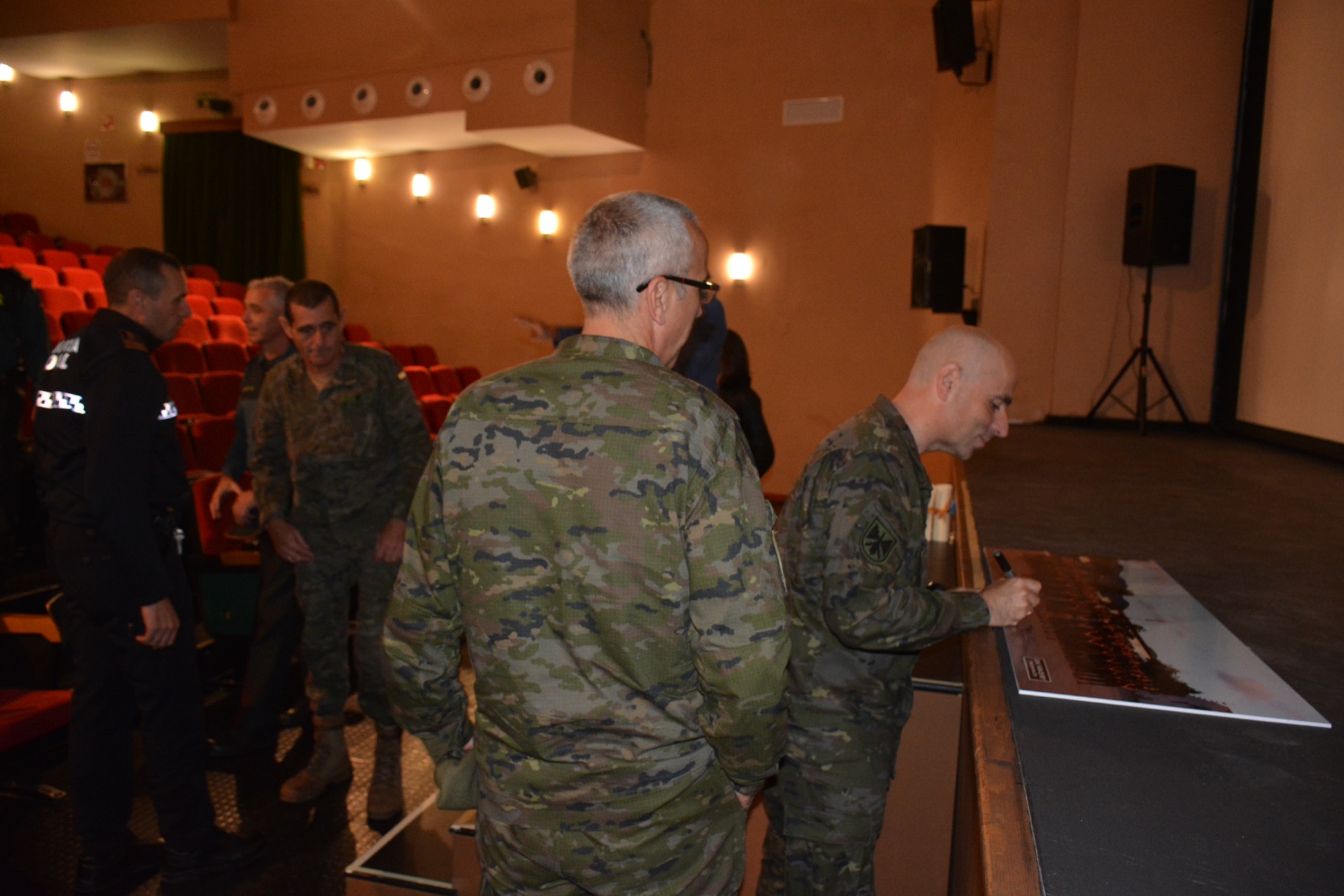 En el acto, de caracter interno del acuartelamiento, estuvieron presentes los consejeros delegados de Multimedia, David Ramos y María del Mar Collado, y la delegada de Cultura, Ana Ruiz, que hicieron entrega, al finalizar el acto, de una fotografía con todos los integrantes de la unidad protagonista del reportaje, y los vídeos proyectados en un soporte digital.