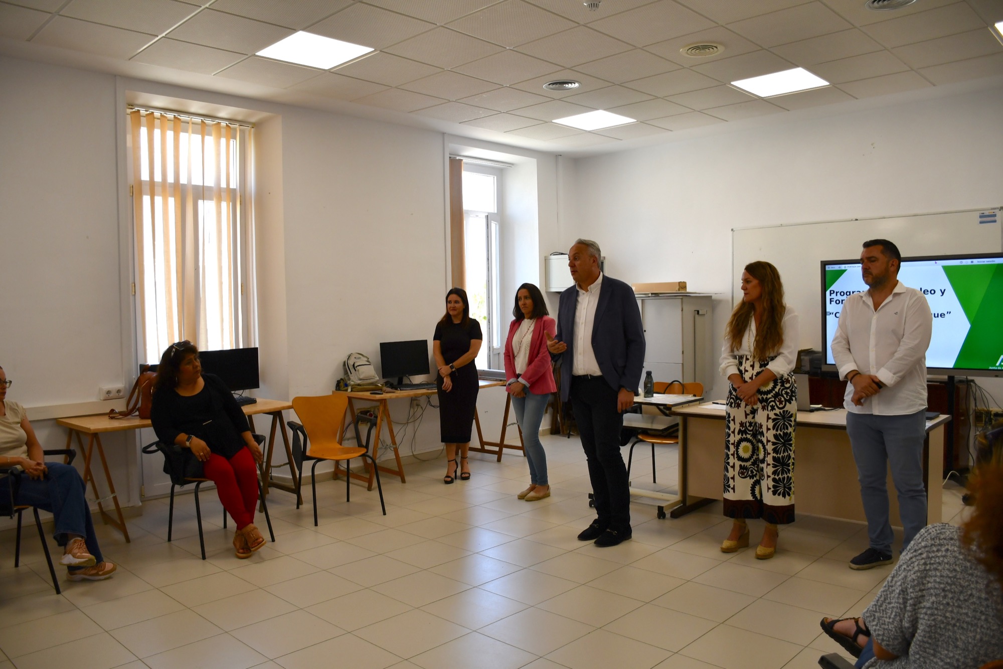 Un total de 15 personas desempleadas han iniciado hoy, martes 4 de junio, el programa de empleo y formación “Conect@doc San Roque”, con el que podrán obtener el certificado de profesionalidad de “Actividades Administrativas en la Relación con el Cliente” de 800 horas lectivas. El alcalde, Juan Carlos Ruiz Boix, ha dado la bienvenida a los beneficiarios que participarán en esta iniciativa durante un año en el aula de formación del Edificio Diego Salinas.