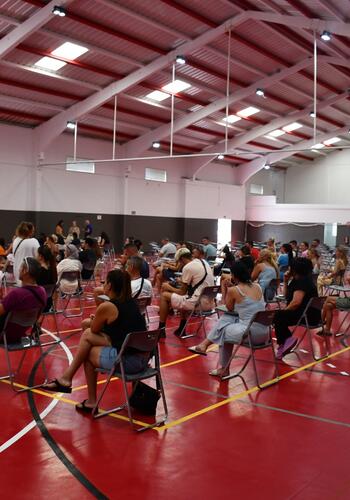 Los pabellones deportivos de San Roque Ciudad y de Estación han acogido hoy jueves los exámenes necesarios para optar a las contrataciones de seis meses de la bolsa de trabajos de temporada de Emadesa. En total, estaban convocadas más de 900 personas, que han realizado las pruebas en dos tandas, con inicio a las 10.00 y a las 11.30 horas.
