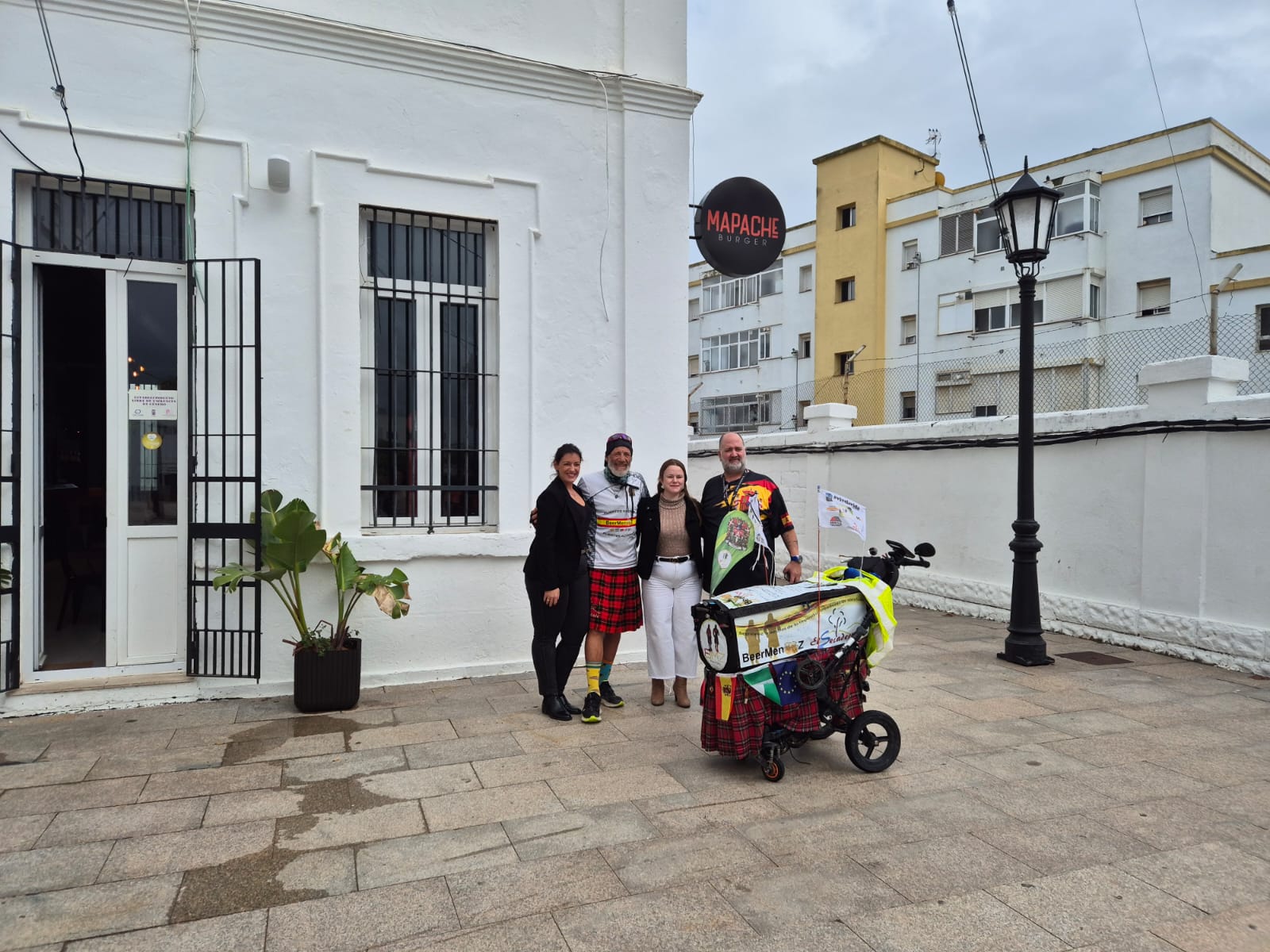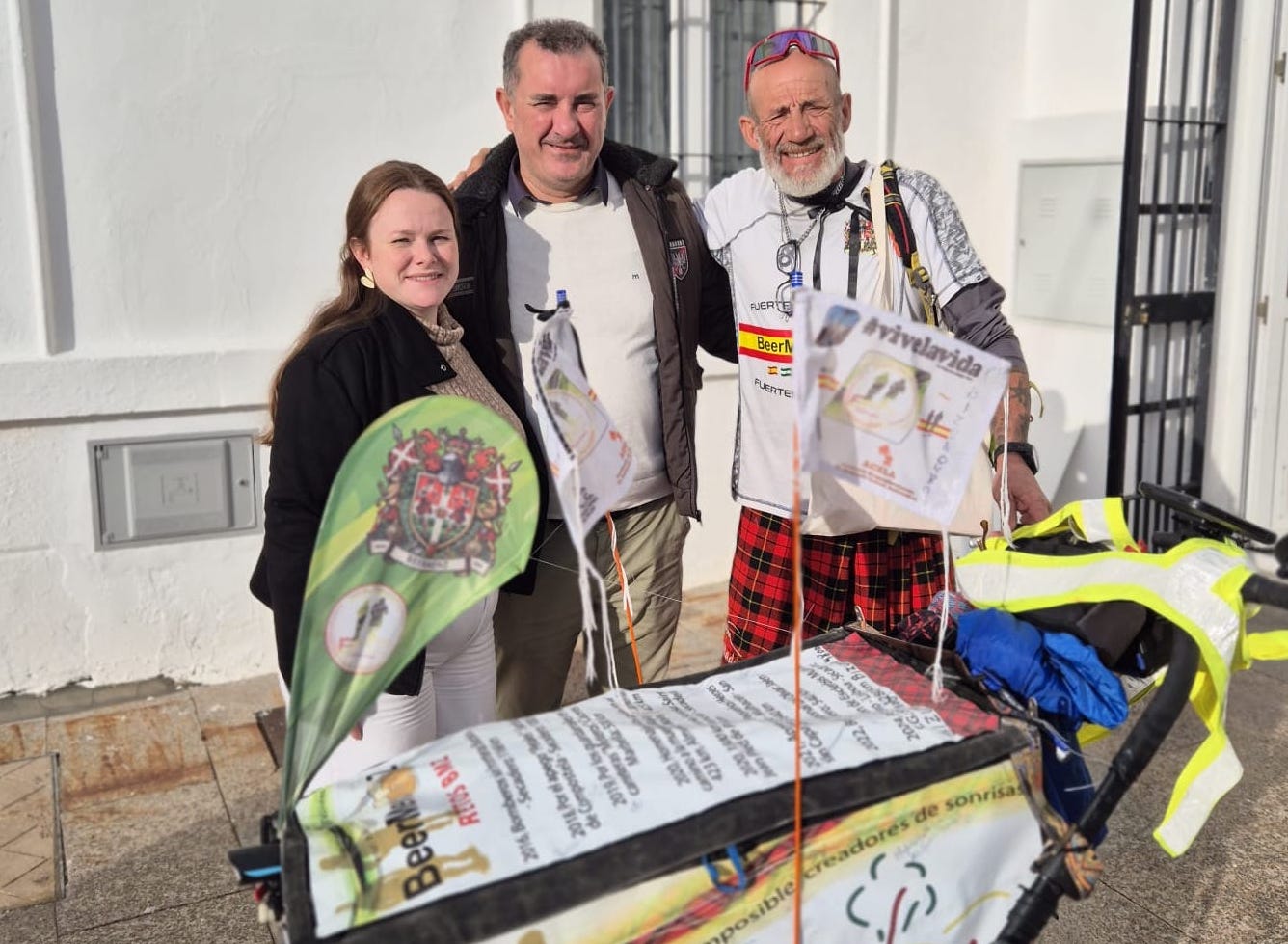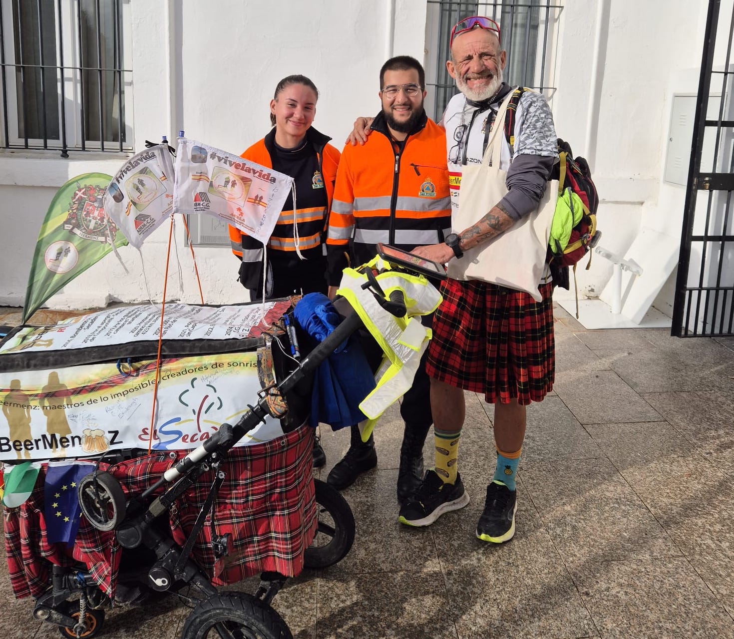 La edil, junto a miembros de Protección Civil y de la delegación de Turismo recibió al caminante, que ejecuta el reto de recorrer desde el 15 de octubre la distancia que hay entre El Secadero, en la provincia de Málaga hasta llegar a Lisboa y vuelta a El Secadero, unos 1300 km. todo ello durante dieciocho días, donde recorren en torno a unos 70-80 km. diarios y que realizan por etapas, visitando diferentes pueblos y ciudades incluidos dentro del recorrido.