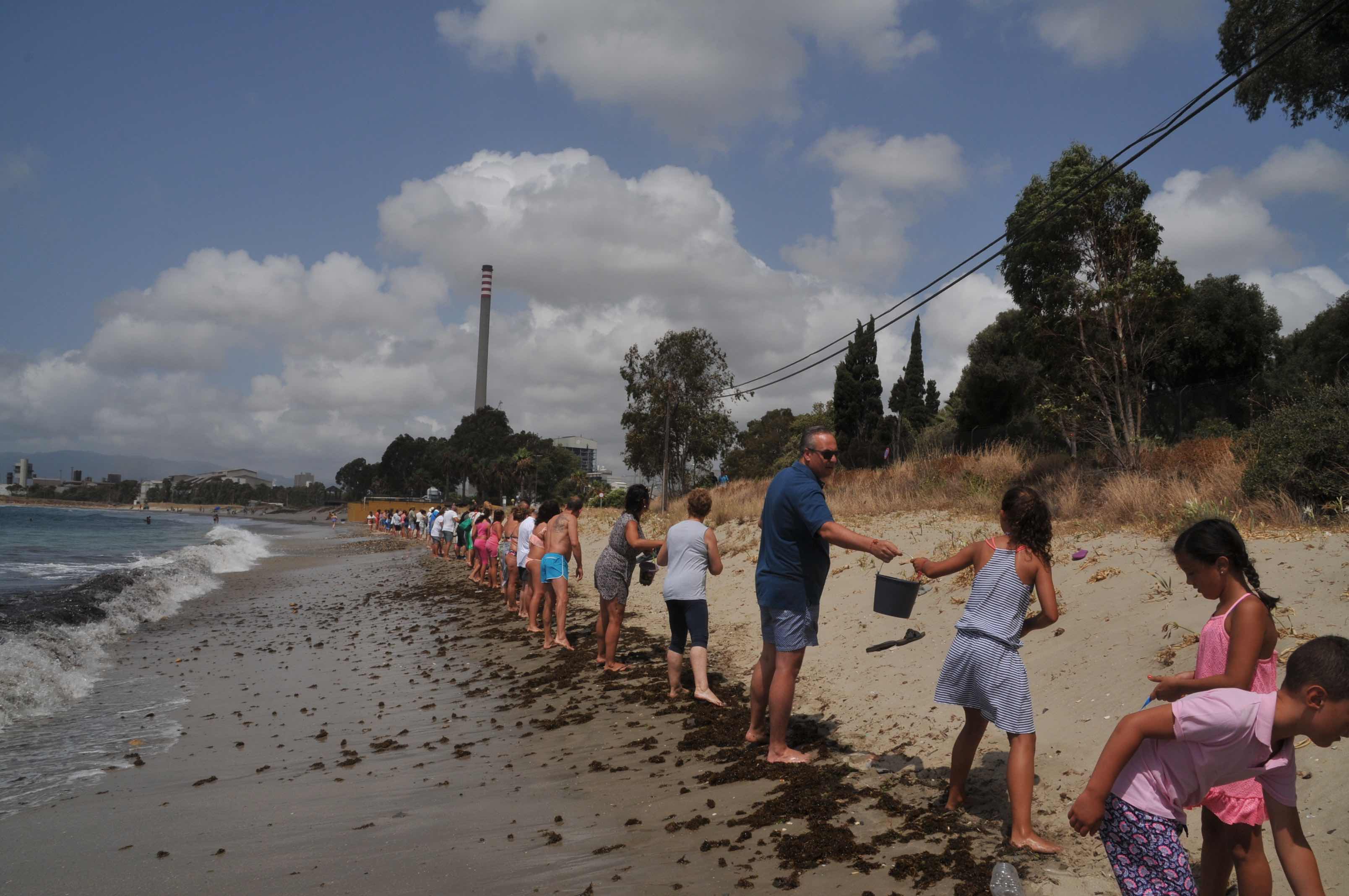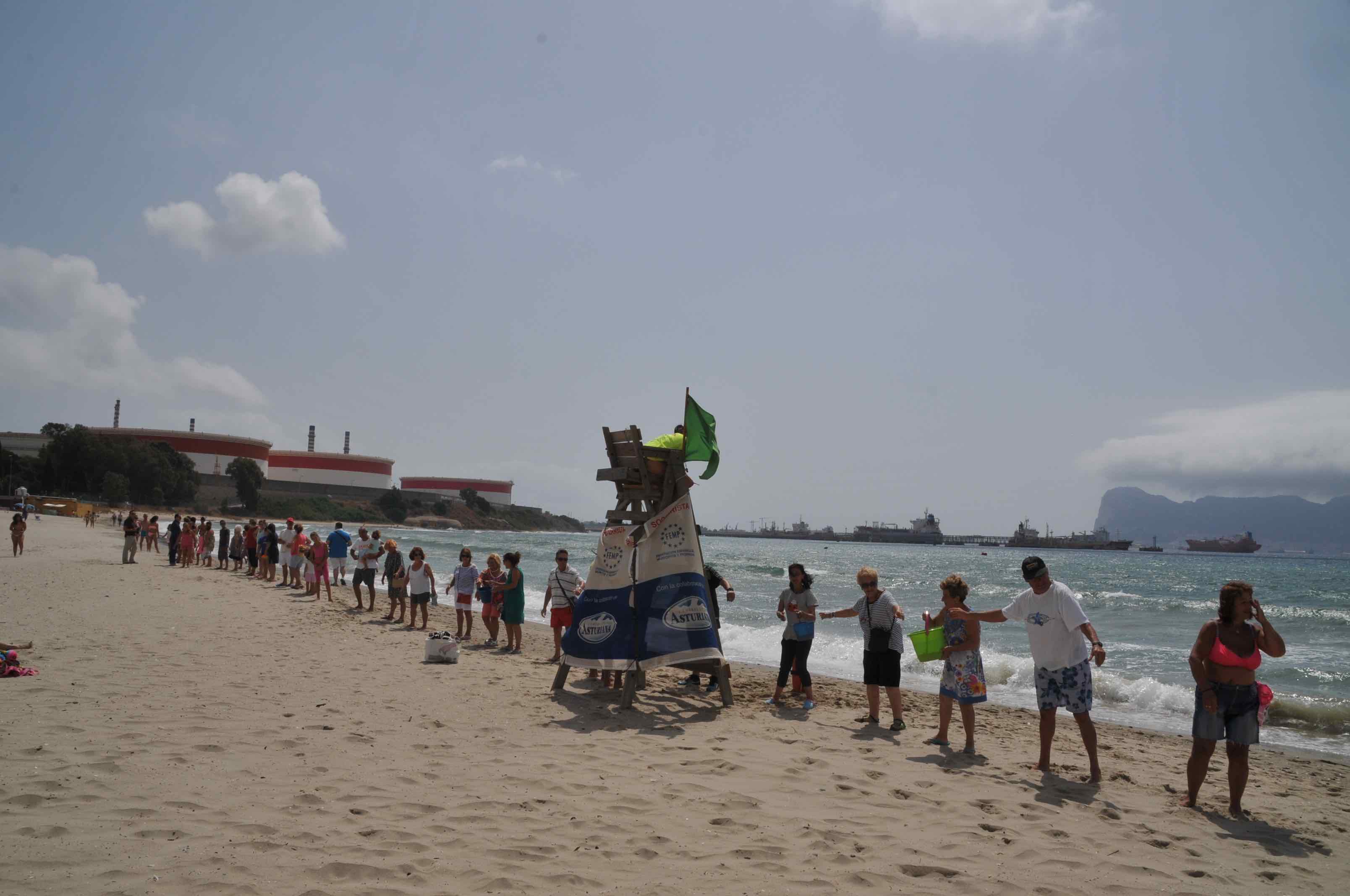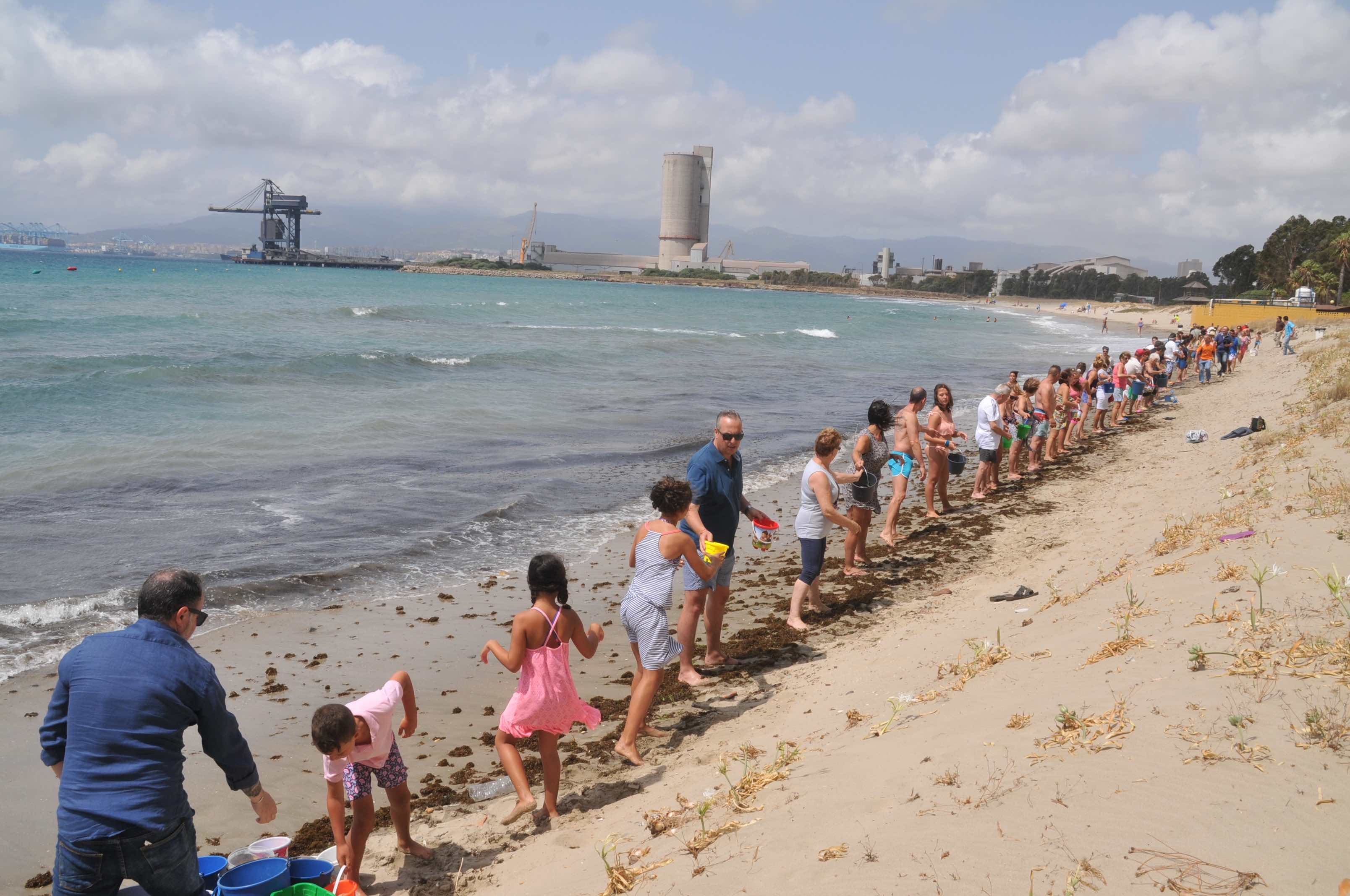 Más de un centenar de personas han participado esta mañana en la regeneración simbólica de la playa de Guadarranque. El acto había sido convocado por Asociaciones vecinales de las barriadas Guadarranque y Puente Mayorga, y contó con la colaboración del Ayuntamiento.