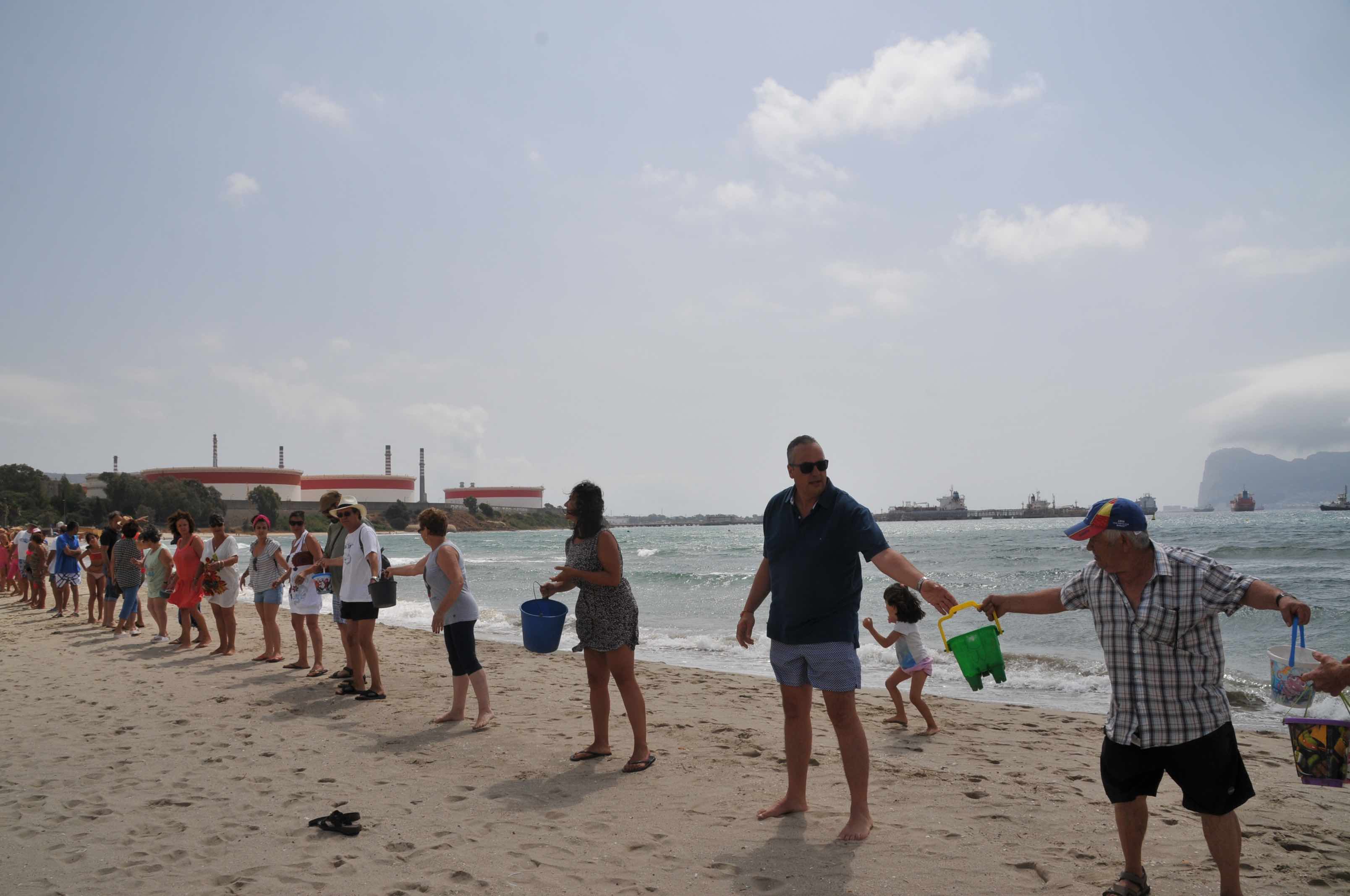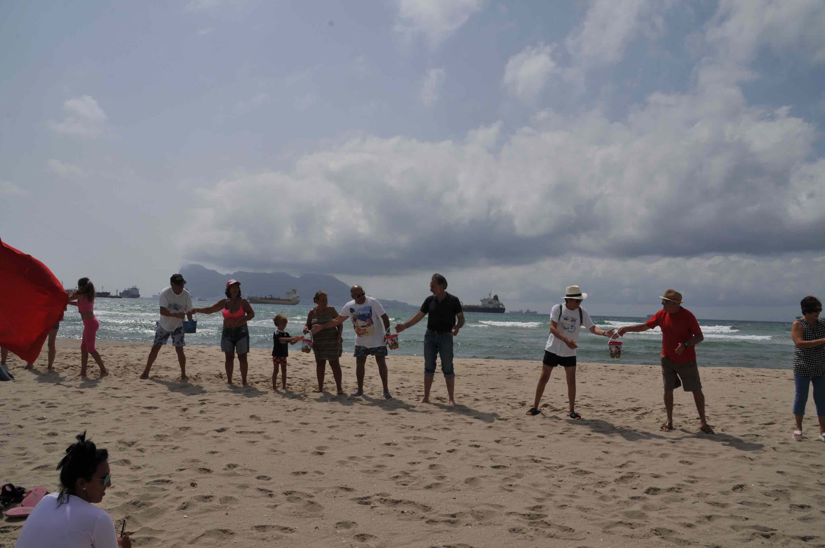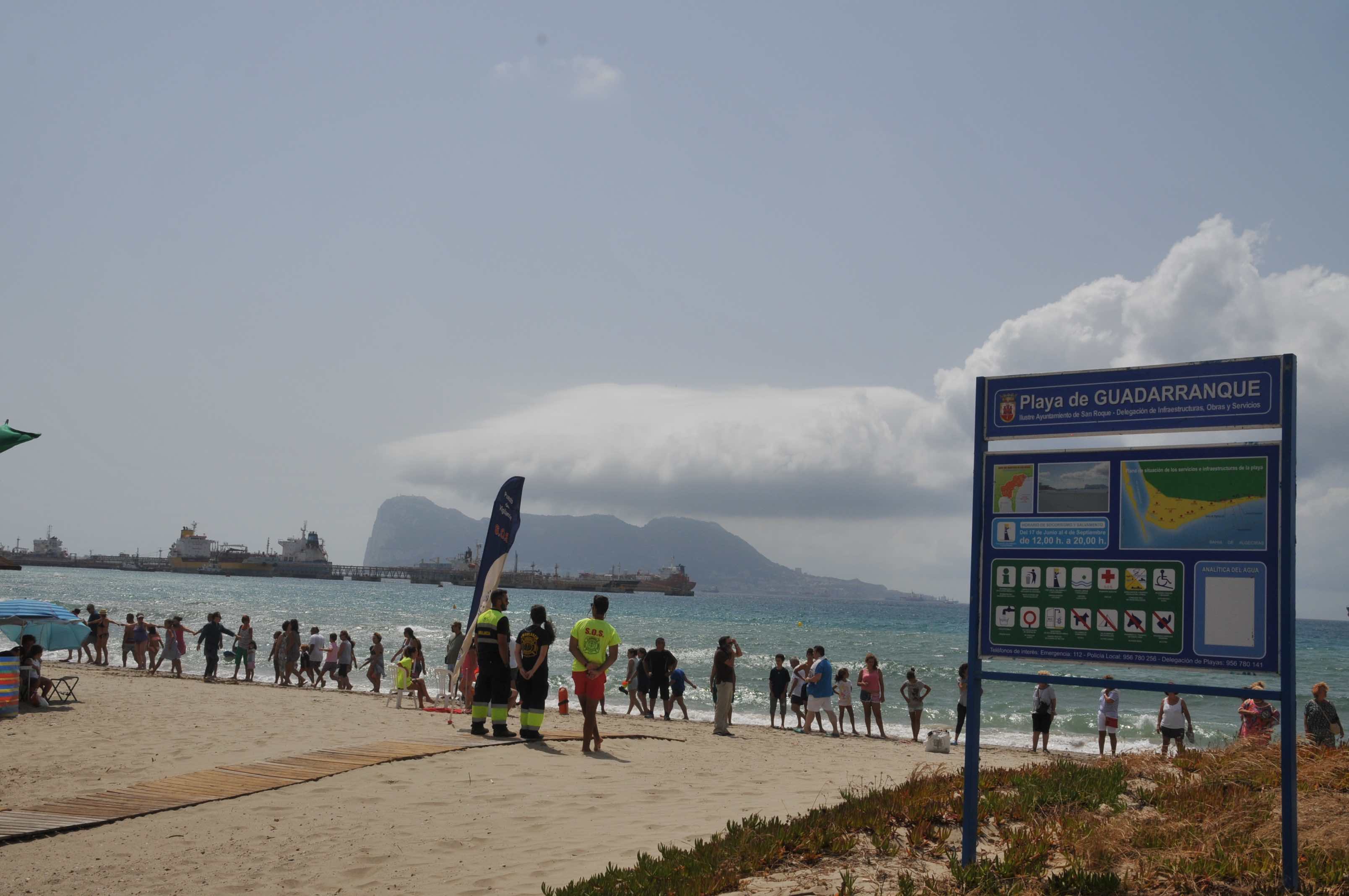 Más de un centenar de personas han participado esta mañana en la regeneración simbólica de la playa de Guadarranque. El acto había sido convocado por Asociaciones vecinales de las barriadas Guadarranque y Puente Mayorga, y contó con la colaboración del Ayuntamiento.