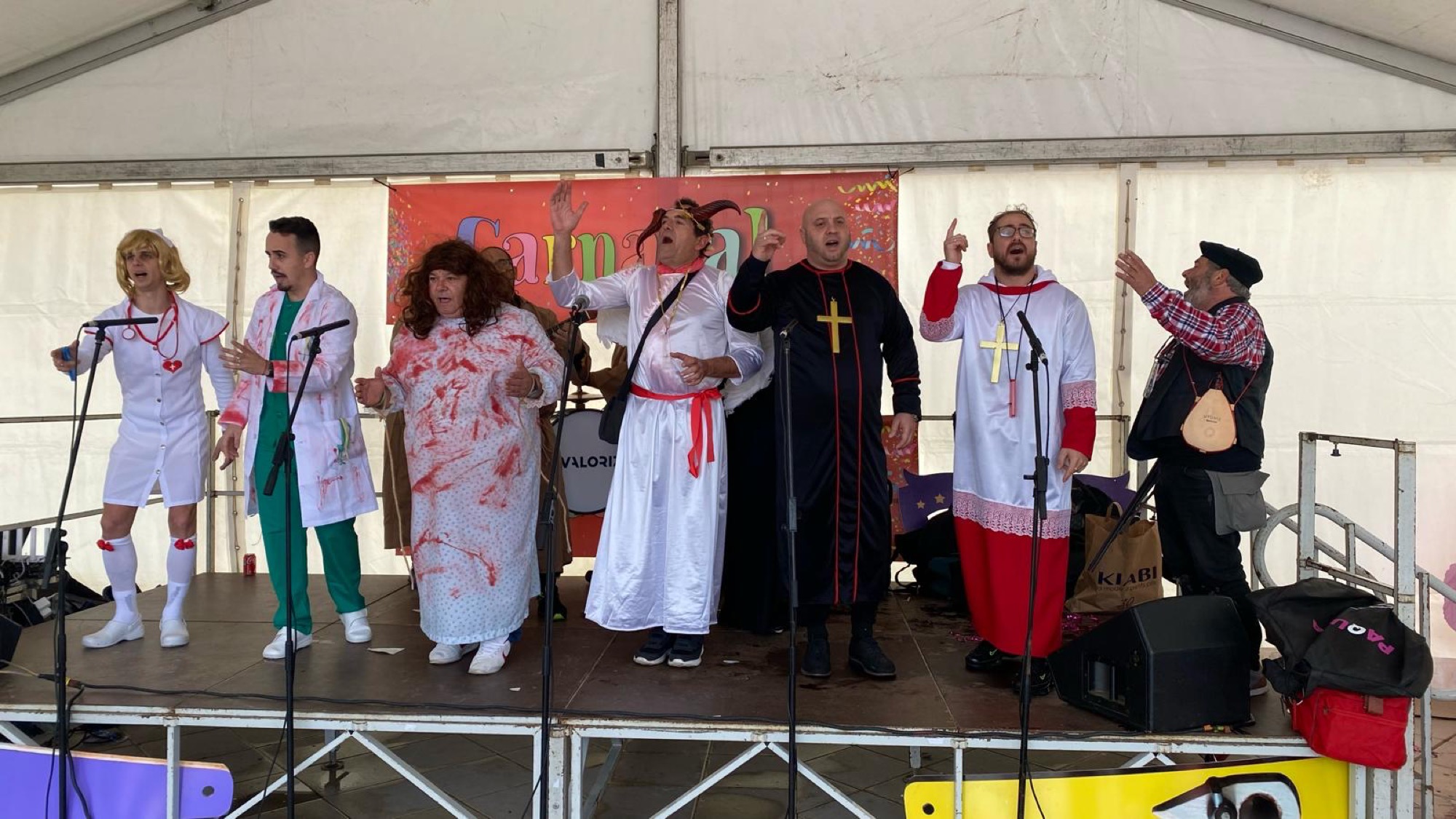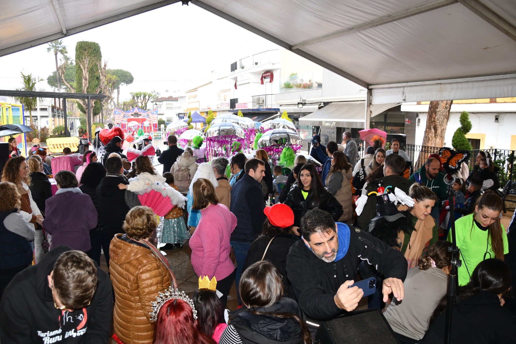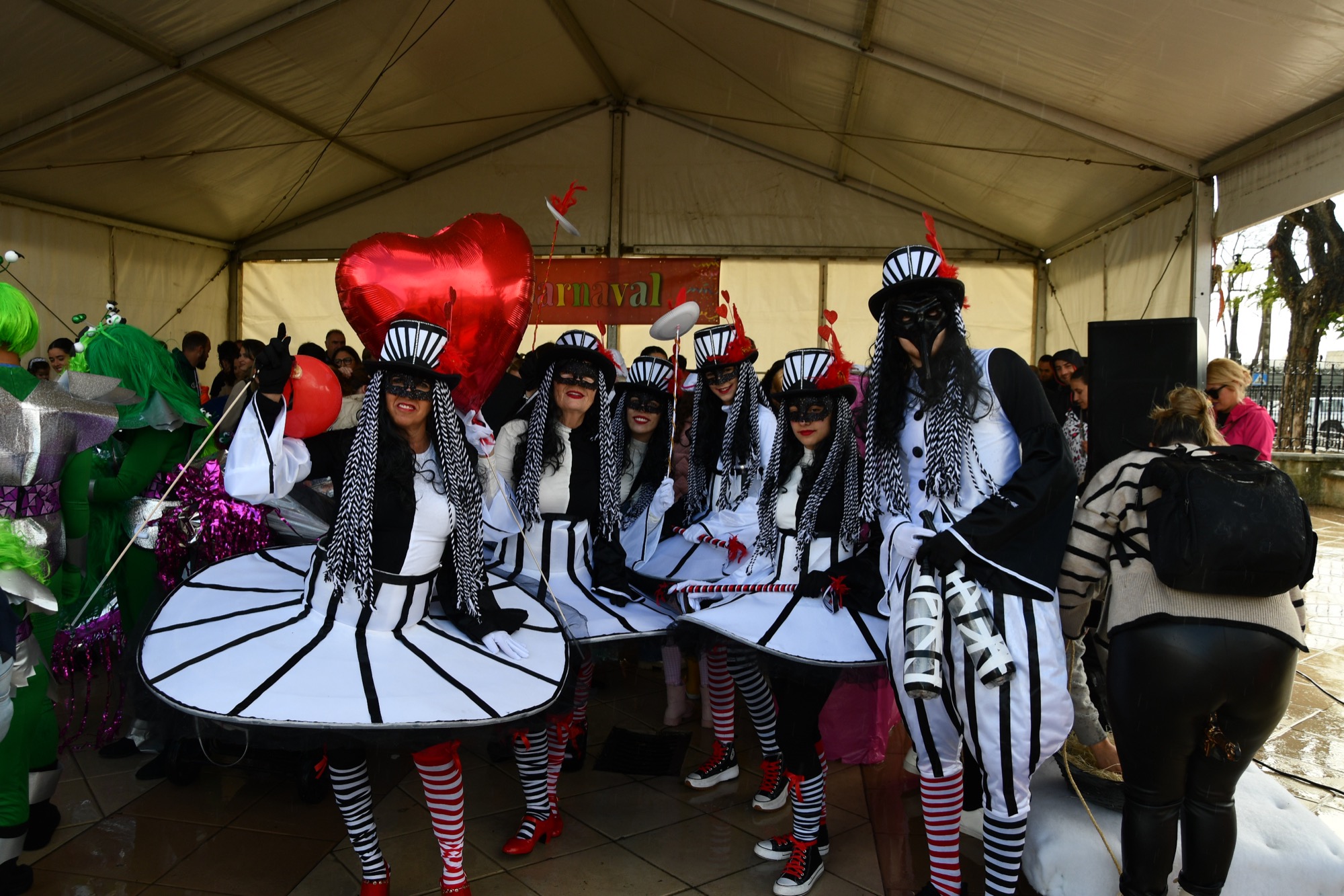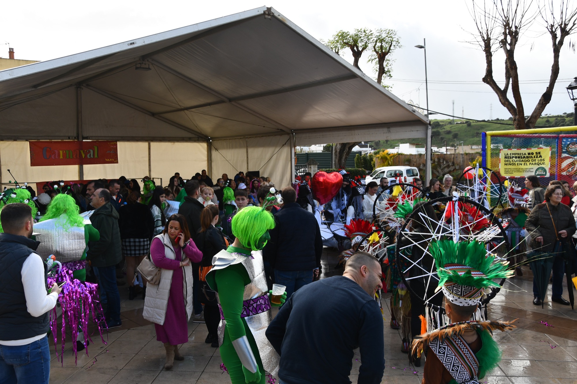 La lluvia intermitente no ha podido con las ganas de disfrutar el Carnaval de la Estación de San Roque, que se desarrolla en la jornada de este sábado con epicentro en una carpa instalada en la Plaza de San Bernardo. Aunque el agua obligó a suspender los tradicionales pasacalles, los vecinos y vecinas de todas las edades disfrutaron de actos como la presentación de la Diosa y las Ninfas, la actuación de una agrupación carnavalesca y los concursos de disfraces.