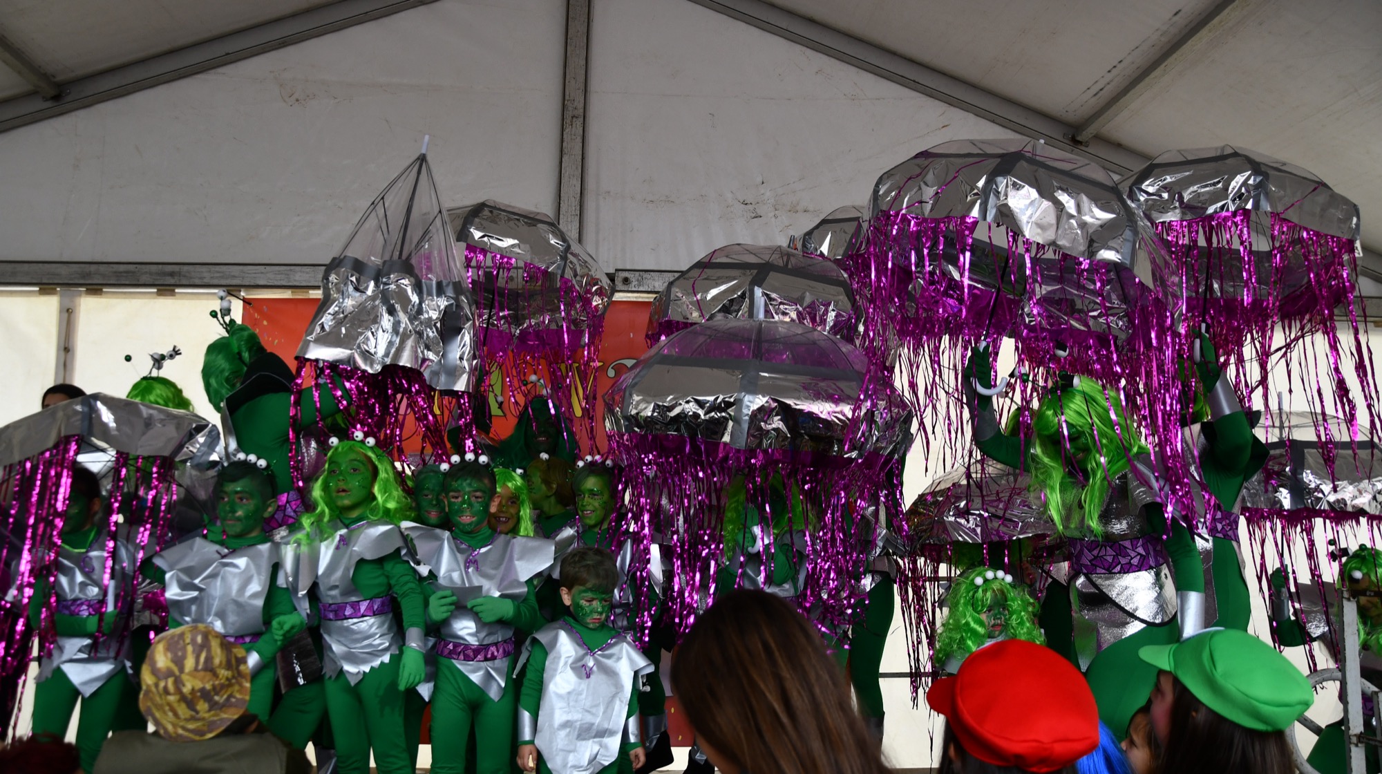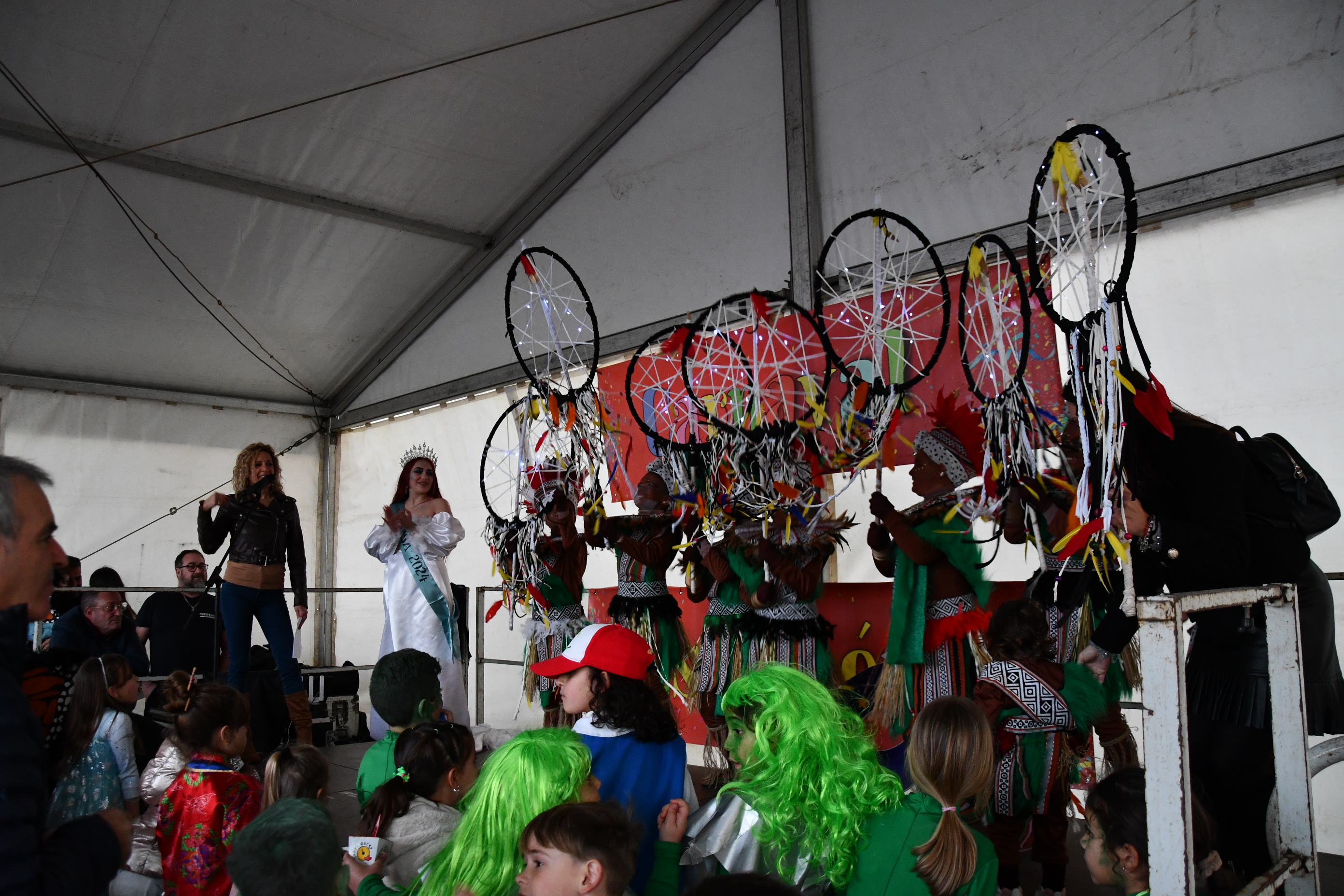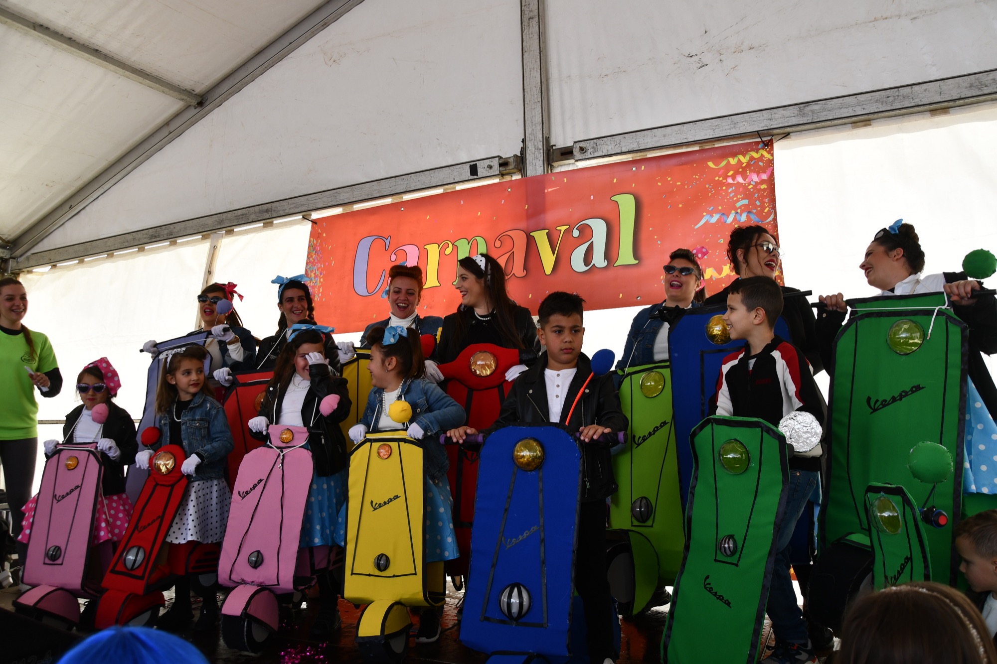 La lluvia intermitente no ha podido con las ganas de disfrutar el Carnaval de la Estación de San Roque, que se desarrolla en la jornada de este sábado con epicentro en una carpa instalada en la Plaza de San Bernardo. Aunque el agua obligó a suspender los tradicionales pasacalles, los vecinos y vecinas de todas las edades disfrutaron de actos como la presentación de la Diosa y las Ninfas, la actuación de una agrupación carnavalesca y los concursos de disfraces.