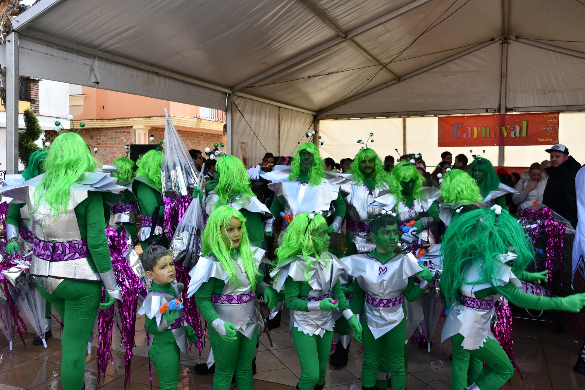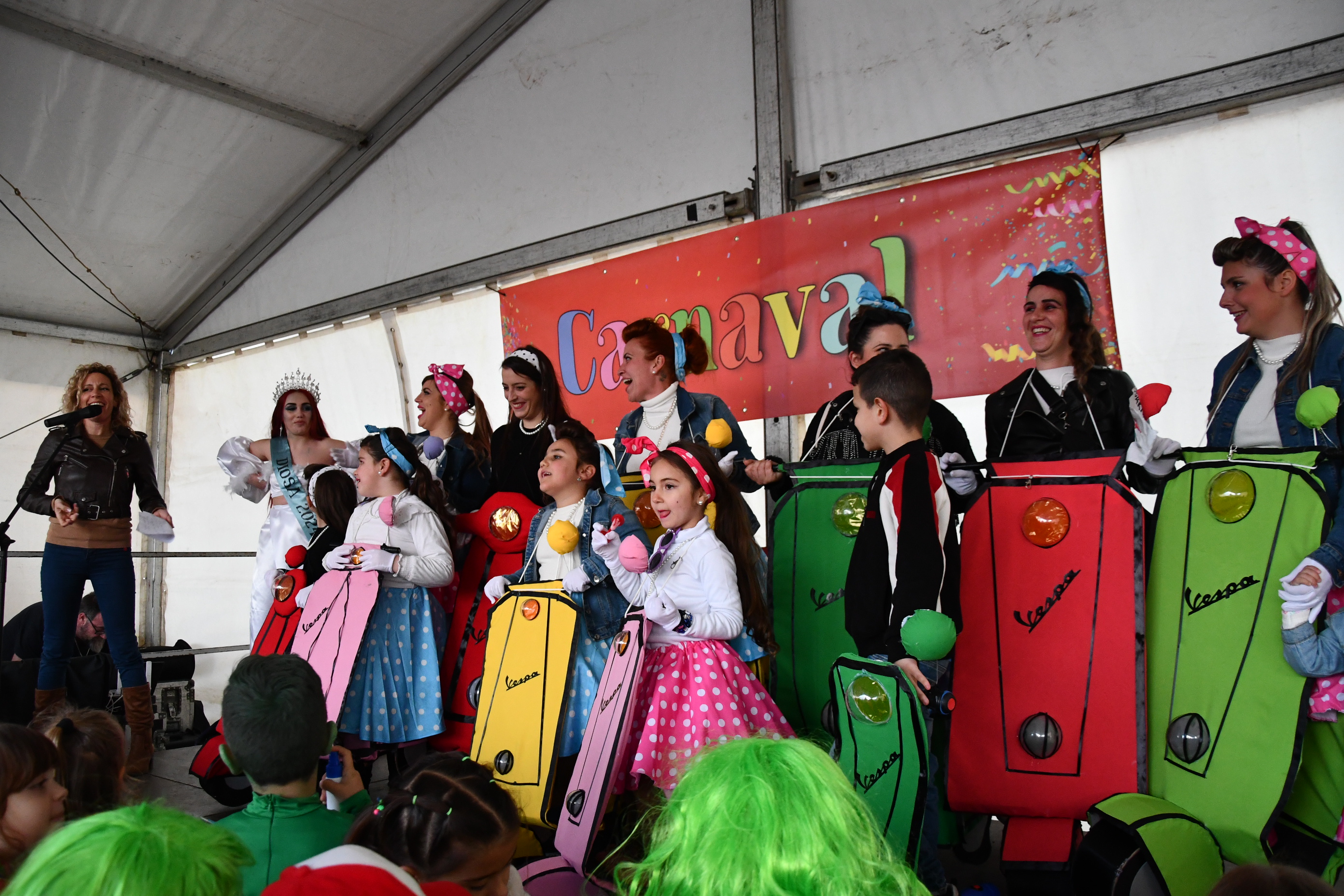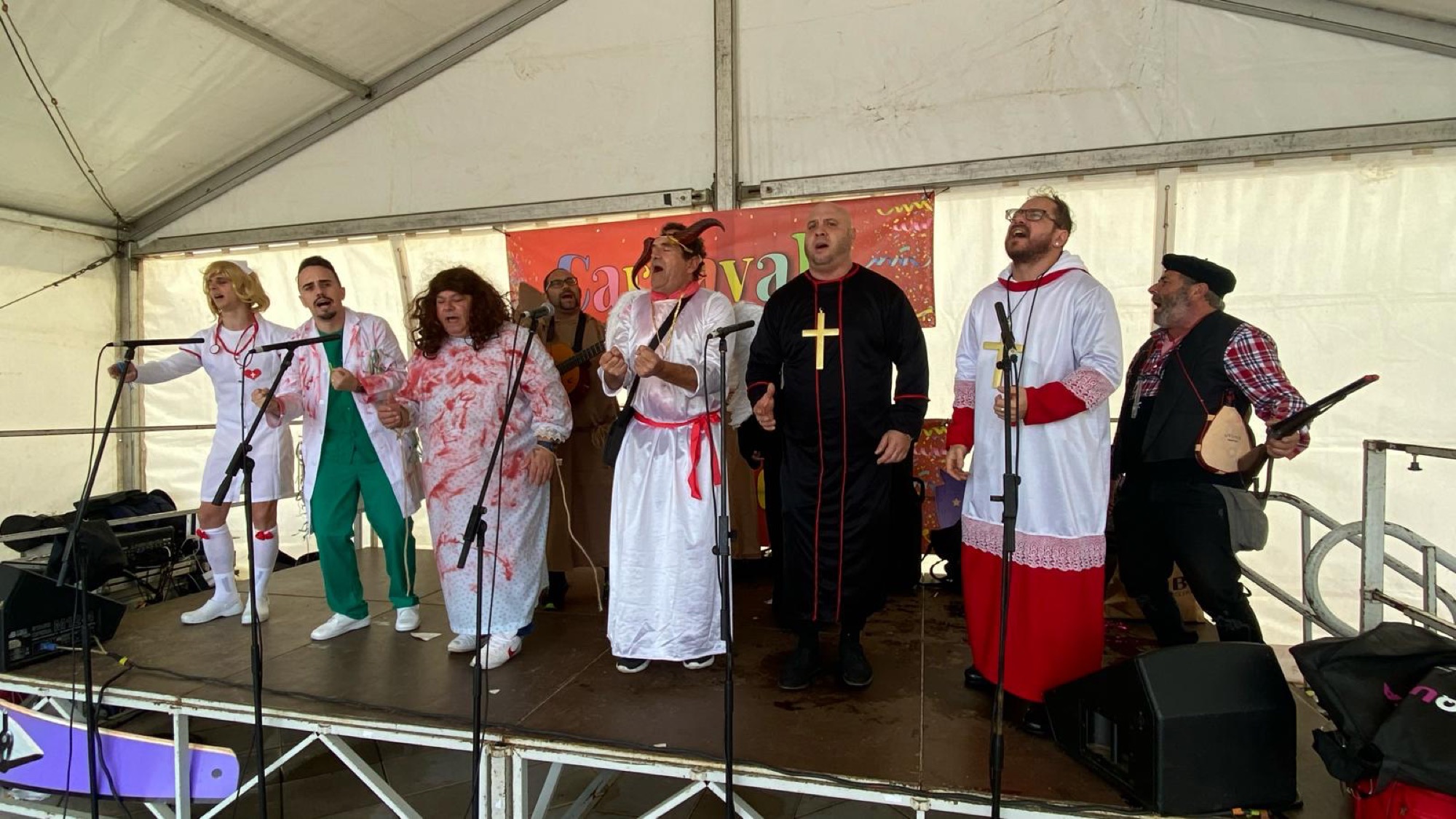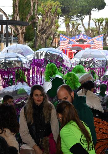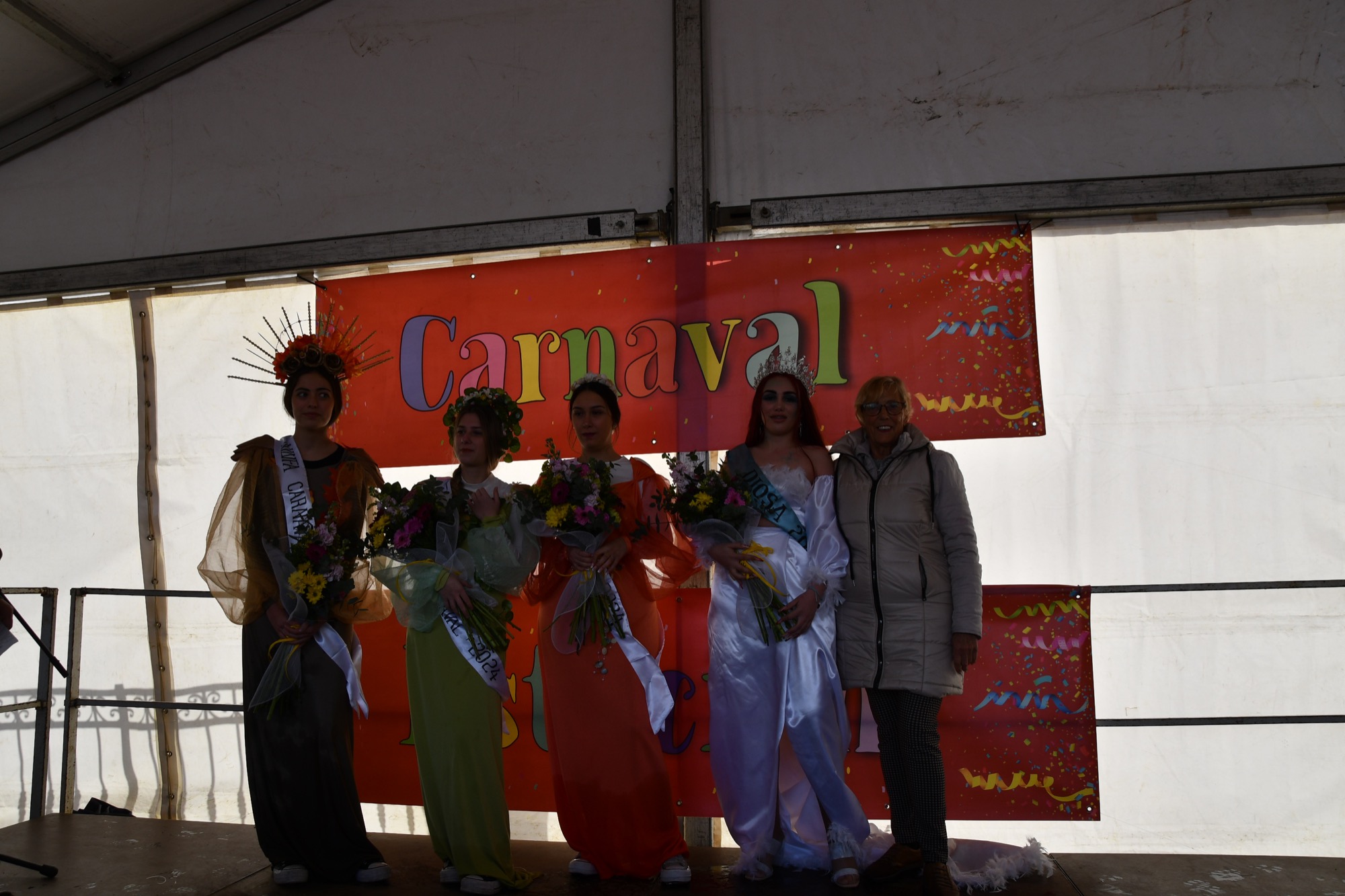 La lluvia intermitente no ha podido con las ganas de disfrutar el Carnaval de la Estación de San Roque, que se desarrolla en la jornada de este sábado con epicentro en una carpa instalada en la Plaza de San Bernardo. Aunque el agua obligó a suspender los tradicionales pasacalles, los vecinos y vecinas de todas las edades disfrutaron de actos como la presentación de la Diosa y las Ninfas, la actuación de una agrupación carnavalesca y los concursos de disfraces.