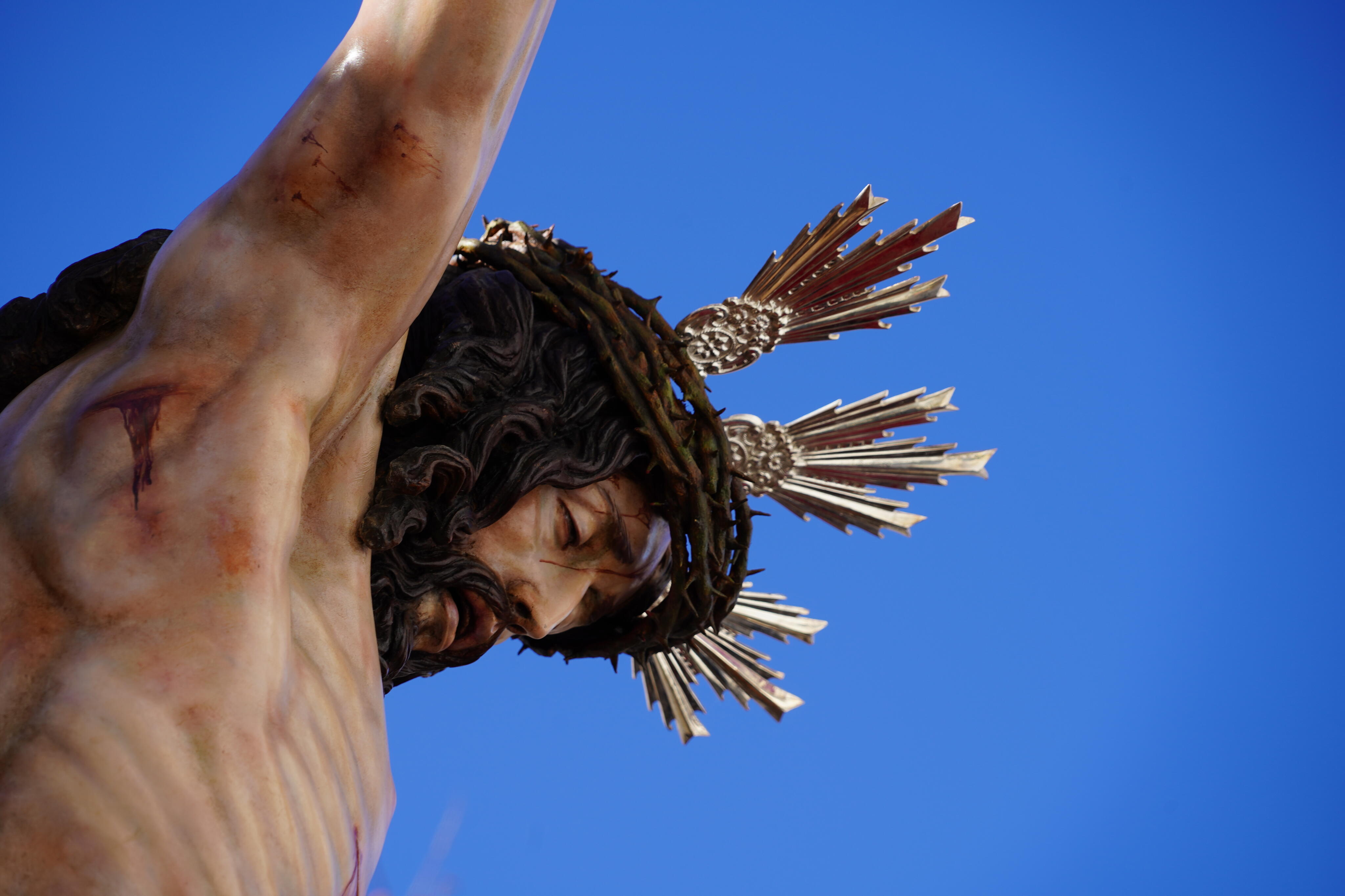 La imagen del Santísimo Cristo de la Buena Muerte es obra de Luis Ortega Brú de talla completa, con una altura de un metro y ochenta y cinco centímetros de altura. Se utilizó para su realización la madera procedente de un ciprés del cementerio local y como modelos a varios vecinos de San Roque. María Santísima de la Amargura fue realizada por los Hermanos Ortega Alonso en el año 1995. Tiene un metro y setenta y cinco centímetros de altura y fue realizada en madera de cedro real. Además, María Santísima de la Amargura recibió nueva donación de uno de nuestros hermanos para el enriquecimiento de su ajuar. Se trata de la medalla conmemorativa del 500 años de la celebración de la festividad de Santa Bárbara. Hecho incluido en el catálogo oficial de efemérides del Ejército de Tierra y avalado en el documento que se conoce con el nombre de recibo de la pólvora de 1522, que se encuentra en el Archivo de Simancas.