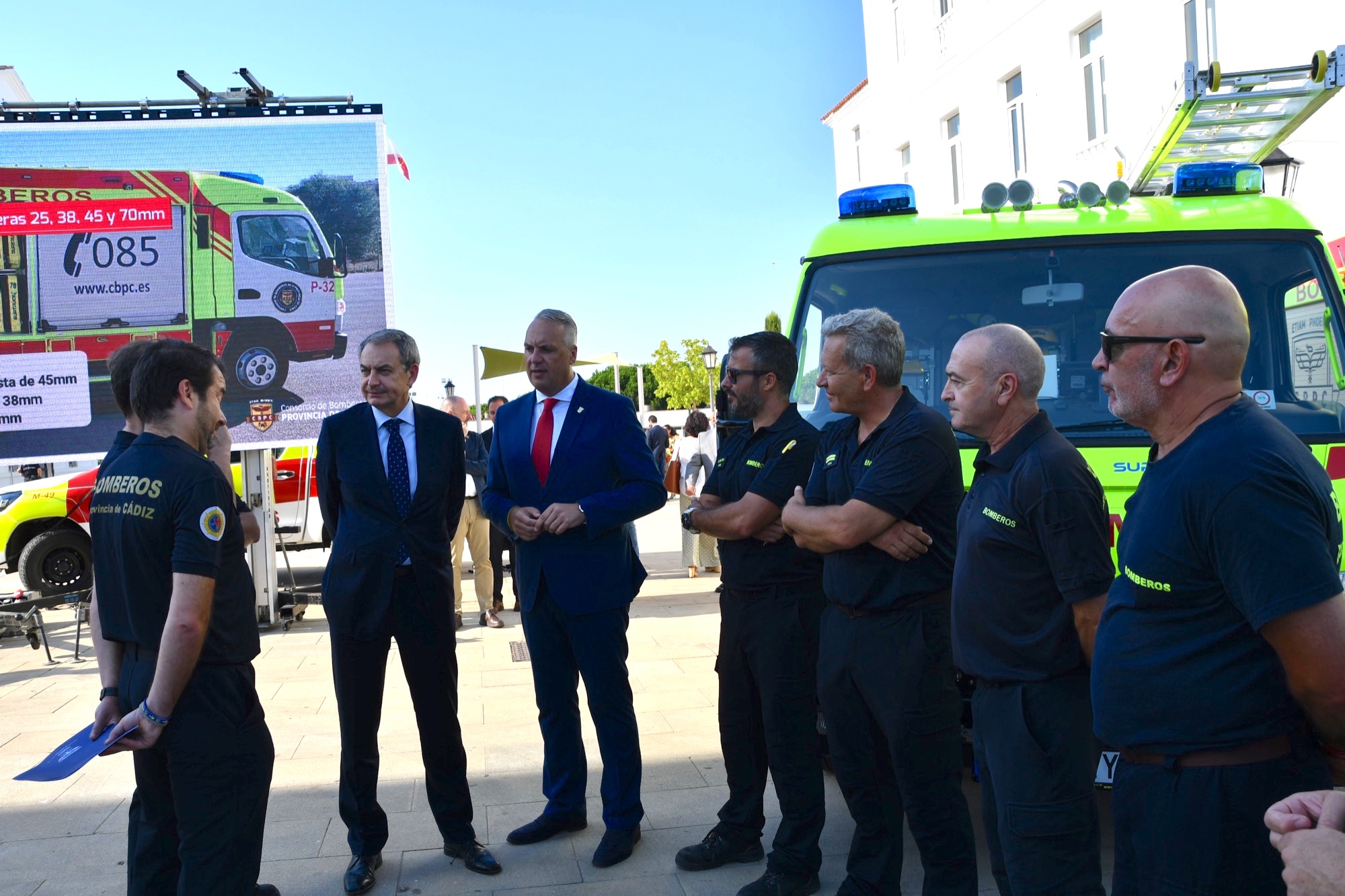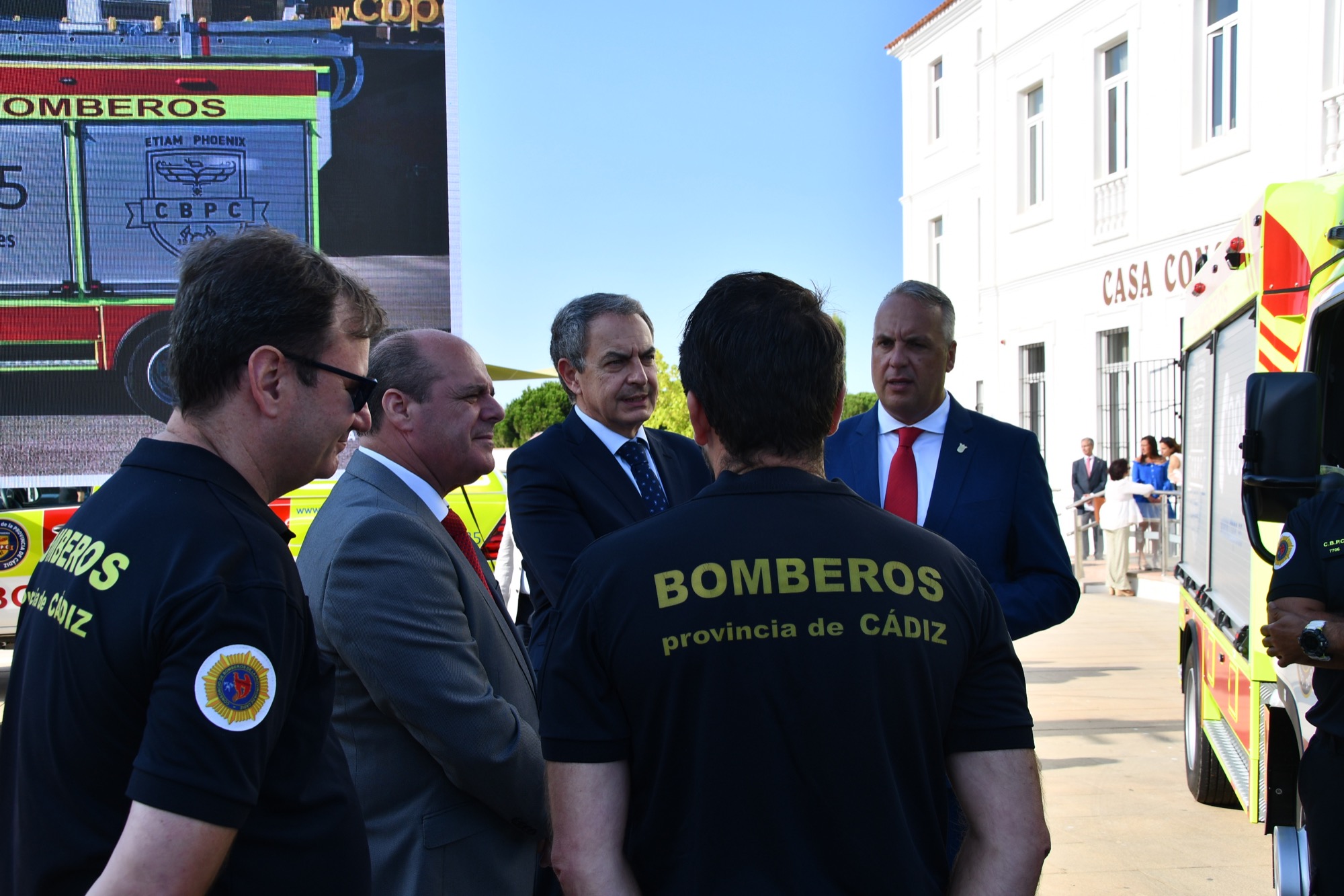 A continuación saludó a varias autoridades, como el alcalde de Castellar, Adrián Vaca, por el presidente del Consorcio Provincial de Bomberos, Francisco Vaca, y el coordinador de la Administración General del Estado en el Campo de Gibraltar, Francisco Gil, que habían participado minutos antes en una presentación de vehículos de este cuerpo.