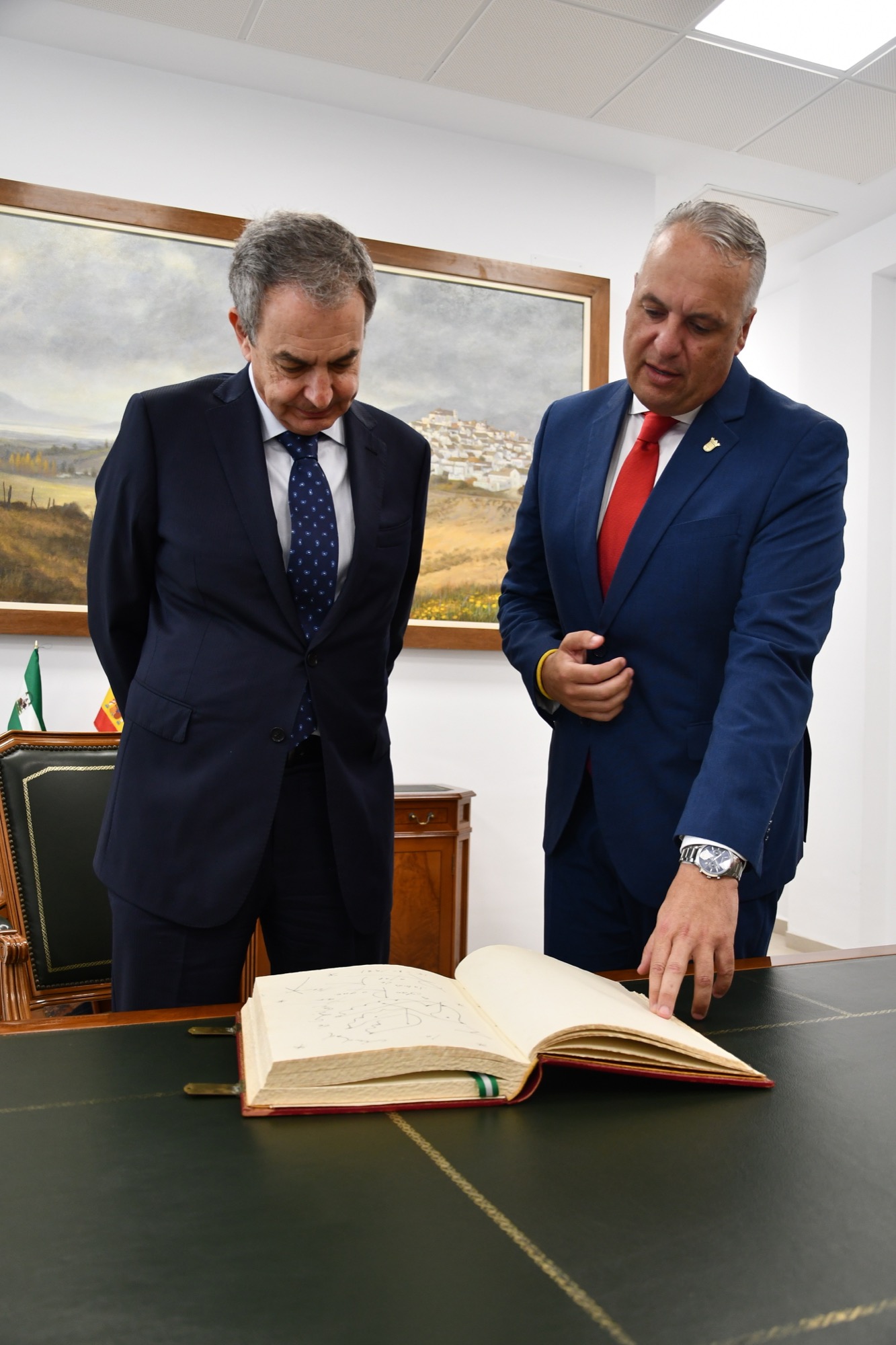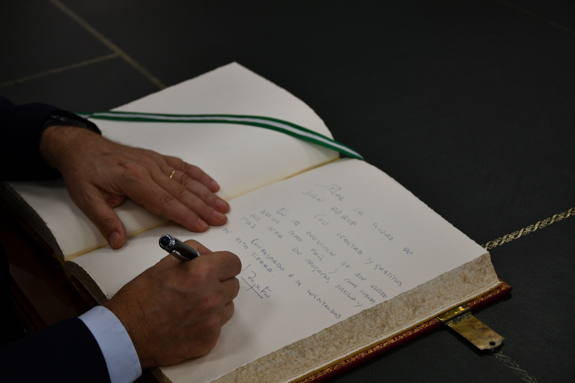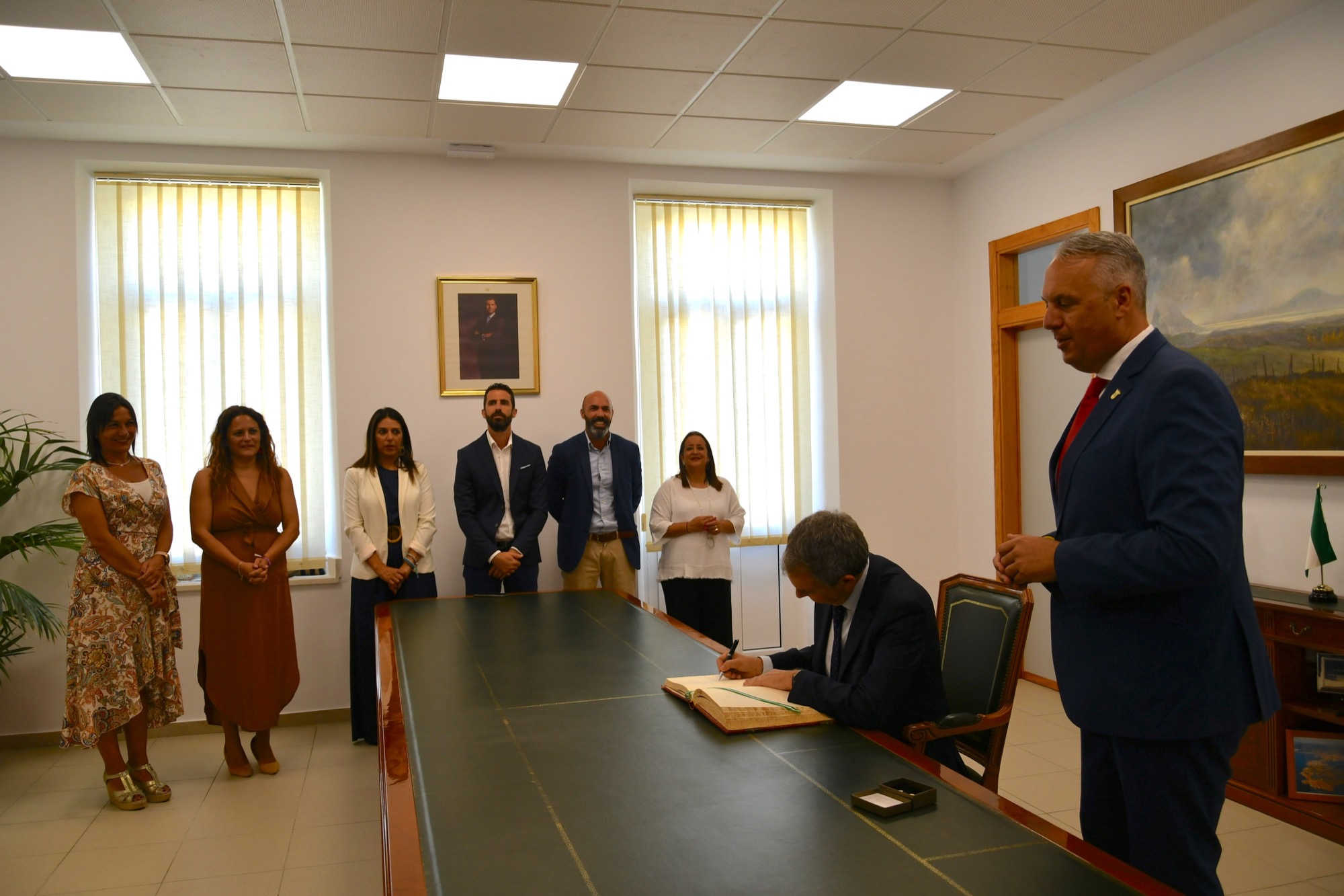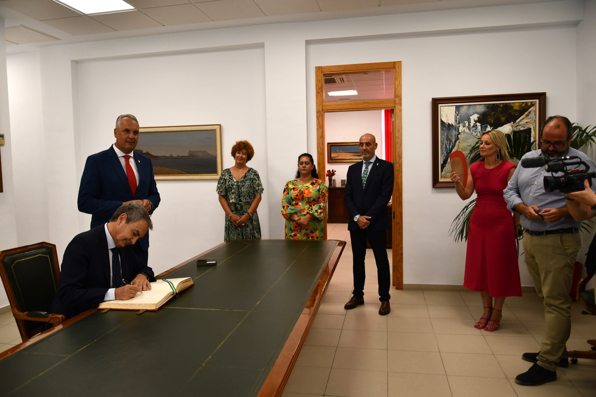 Poco después pasaron a una sala contigua, donde firmó en el Libro de Honor de la Ciudad, y se hizo varias fotografías con los ediles presentes. Seguidamente se reunió de nuevo con el primer edil, con el que departió de distintos temas durante poco menos de una hora.