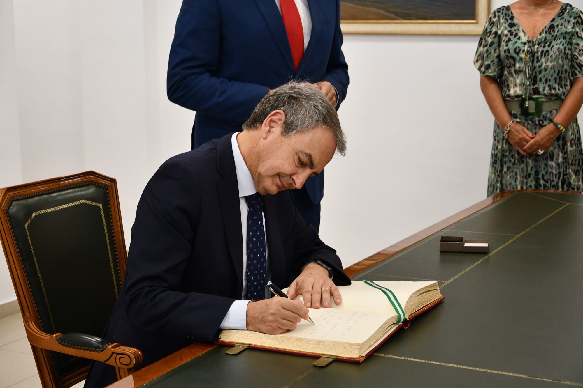José Luis Rodríguez Zapatero, ex presidente del Gobierno de España, ha visitado hoy, viernes, San Roque para ofrecer la Conferencia Inaugural del 40 Curso de Verano en el Teatro Juan Luis Galiardo. Previamente fue recibido por el alcalde, Juan Carlos Ruiz Boix, y firmó en el Libro de Honor de la Ciudad, además de que se dio un breve paseo por la Alameda Alfonso XI y otras calles sanroqueñas.
