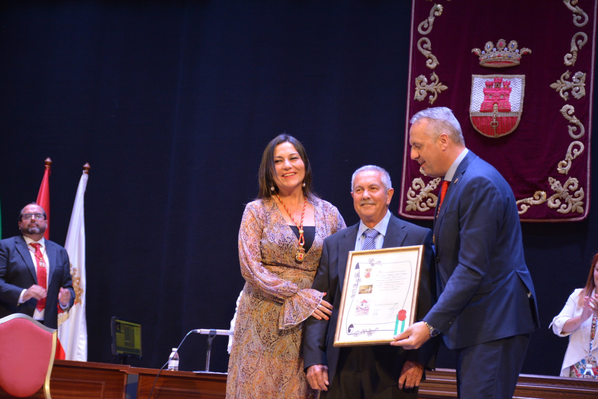 El alcalde, en todos los casos, y varios ediles en funciones entregaron las distinciones. El primero en subir fue el Miembro Honorario de la Corporación a Juan Simón Jaén Cabrera, al que le siguieron las Menciones de Honor para Antonio Ocaña Pérez por Pastelería La Nueva; Juan Antonio Sabe Martín por Panadería Sabe; Adrián Aranda, presidente del CD San Bernardo;