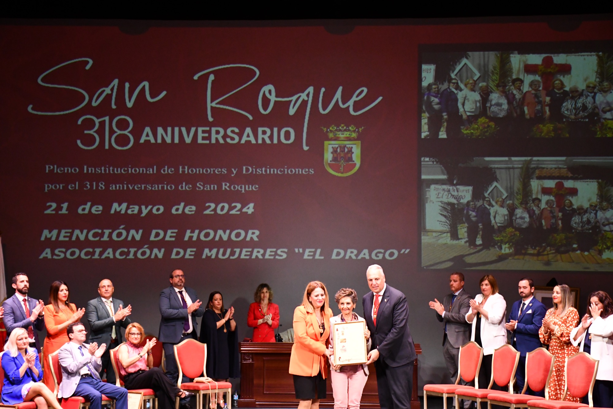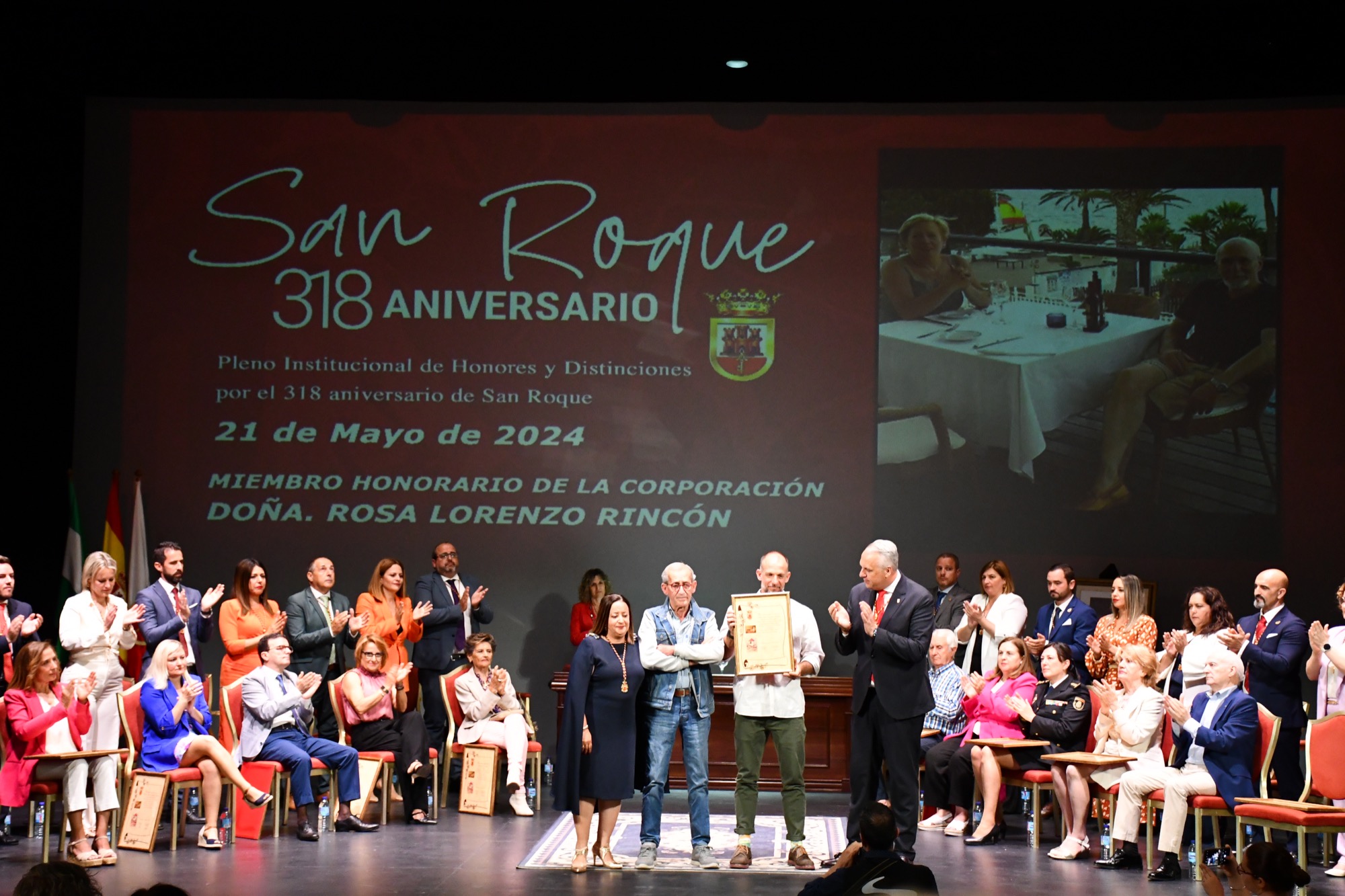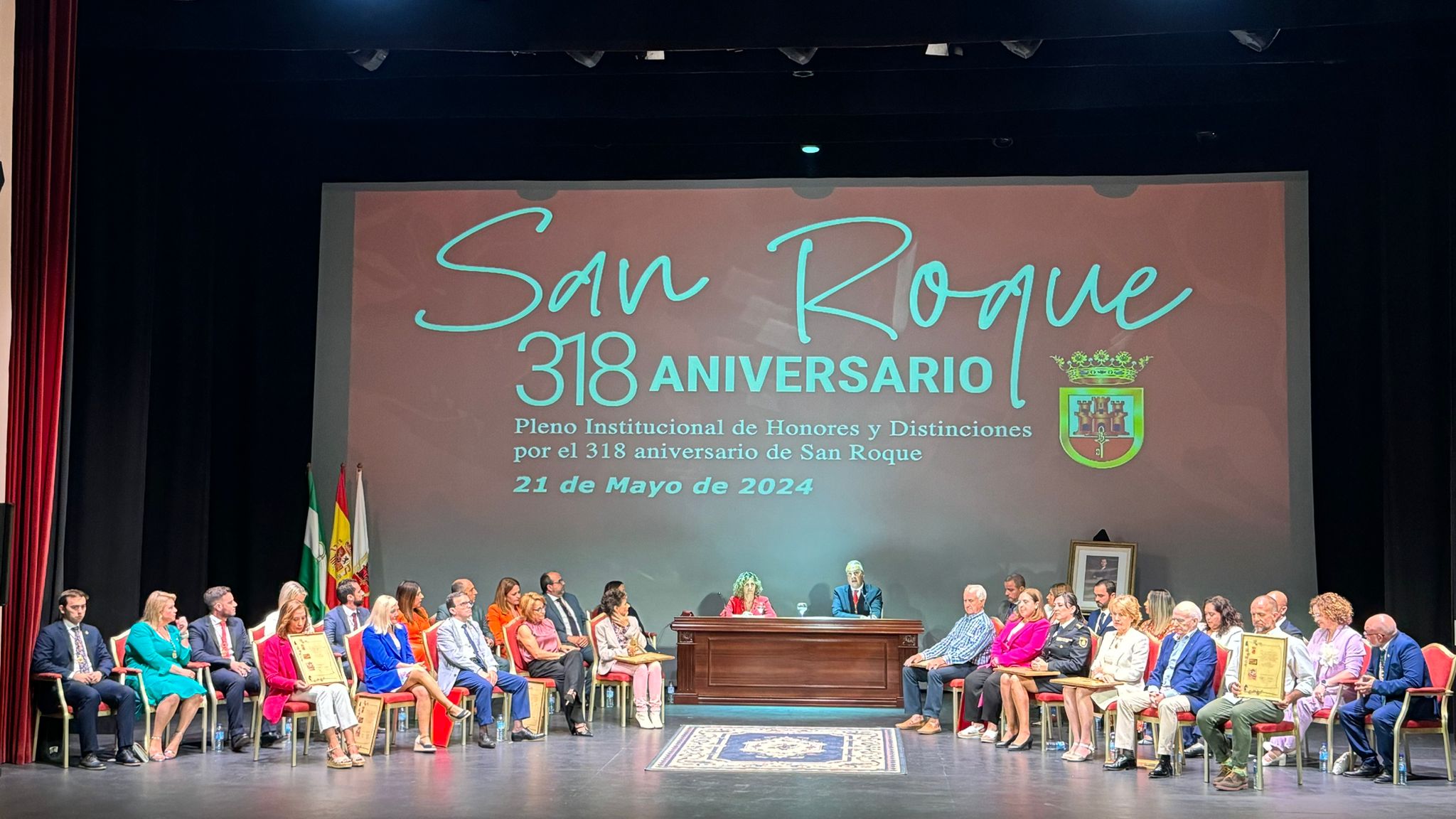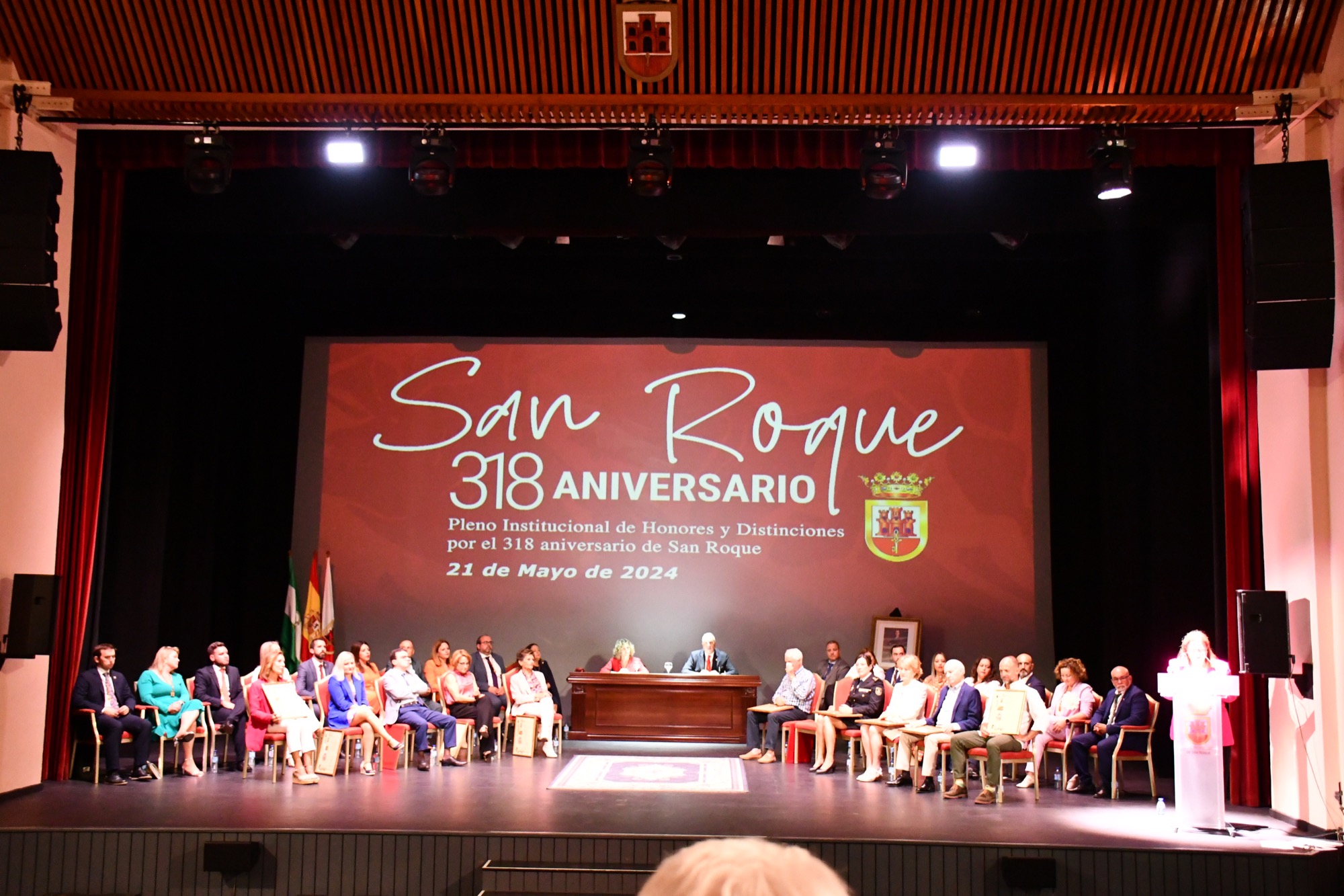 La Corporación de San Roque ha celebrado este martes festivo, 21 de mayo de 2024, el Pleno Institucional de Honores y Distinciones por el 318 Aniversario de la Ciudad a partir de las 11.00 horas en el Teatro Juan Luis Galiardo. En la sesión se nombraron como miembros honorarios de la Corporación a Juan Roca Quintero y a Rosa María Lorenzo Rincón, esta última a título póstumo; y a Anne Bullock como Hija Adoptiva de la Ciudad.