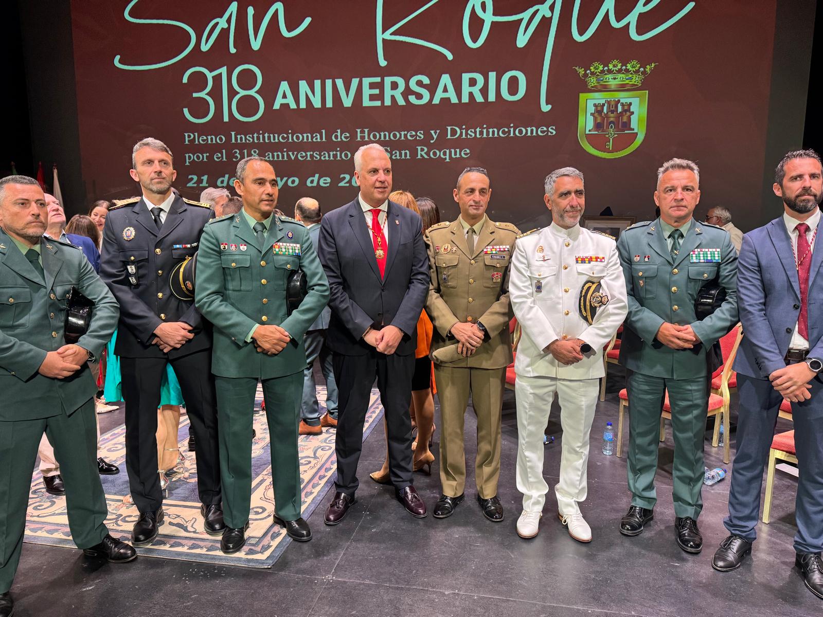 San Roque ha rendido hoy, martes 21 de mayo, un merecido homenaje a personas y entidades destacadas con motivo del Pleno Institucional de Honores y Distinciones por el 318 Aniversario de la Fundación de la Ciudad. El alcalde, Juan Carlos Ruiz Boix, ha presidido la sesión que se desarrolló en el Teatro Juan Luis Galiardo a partir de las 11.00 horas, en la que han asistido todos los concejales de la Corporación, a excepción de la edil Rocío Fernández, ausente por permiso de maternidad, y donde se han concedido once reconocimientos: dos títulos de miembros honorarios de la Corporación, uno de Hija Adoptiva y ocho menciones de honor.