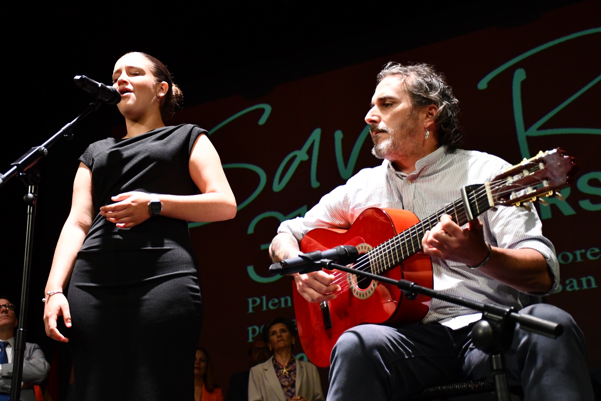 Finalizado el acto de entrega de galardones, la secretaria general anunció a la cantante sanroqueña Triana Jiménez Segovia y al guitarrista Juan Marcos Ledesma Moreno, que interpretaron el Himno de Andalucía como colofón del acto.