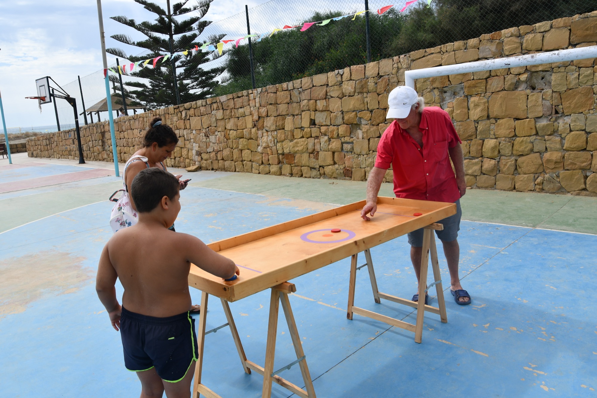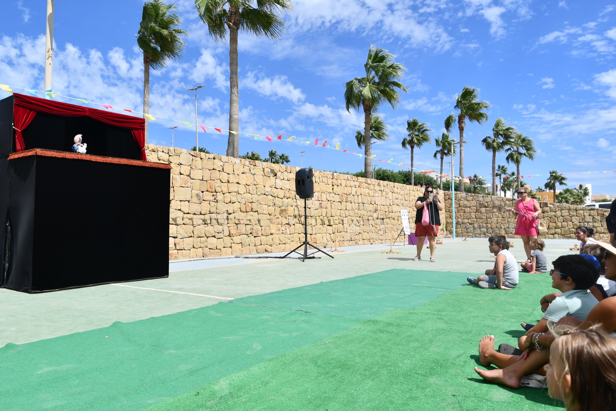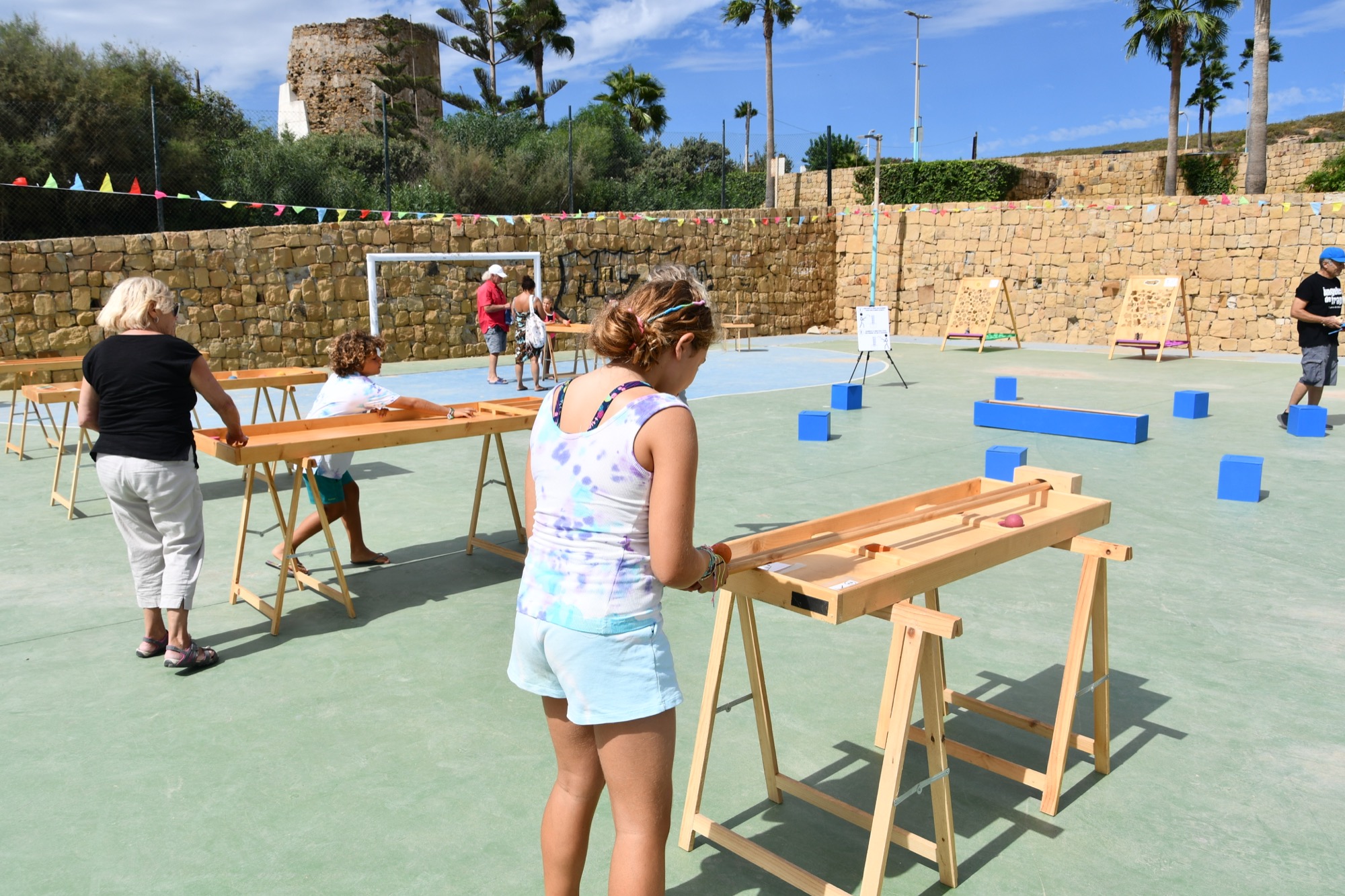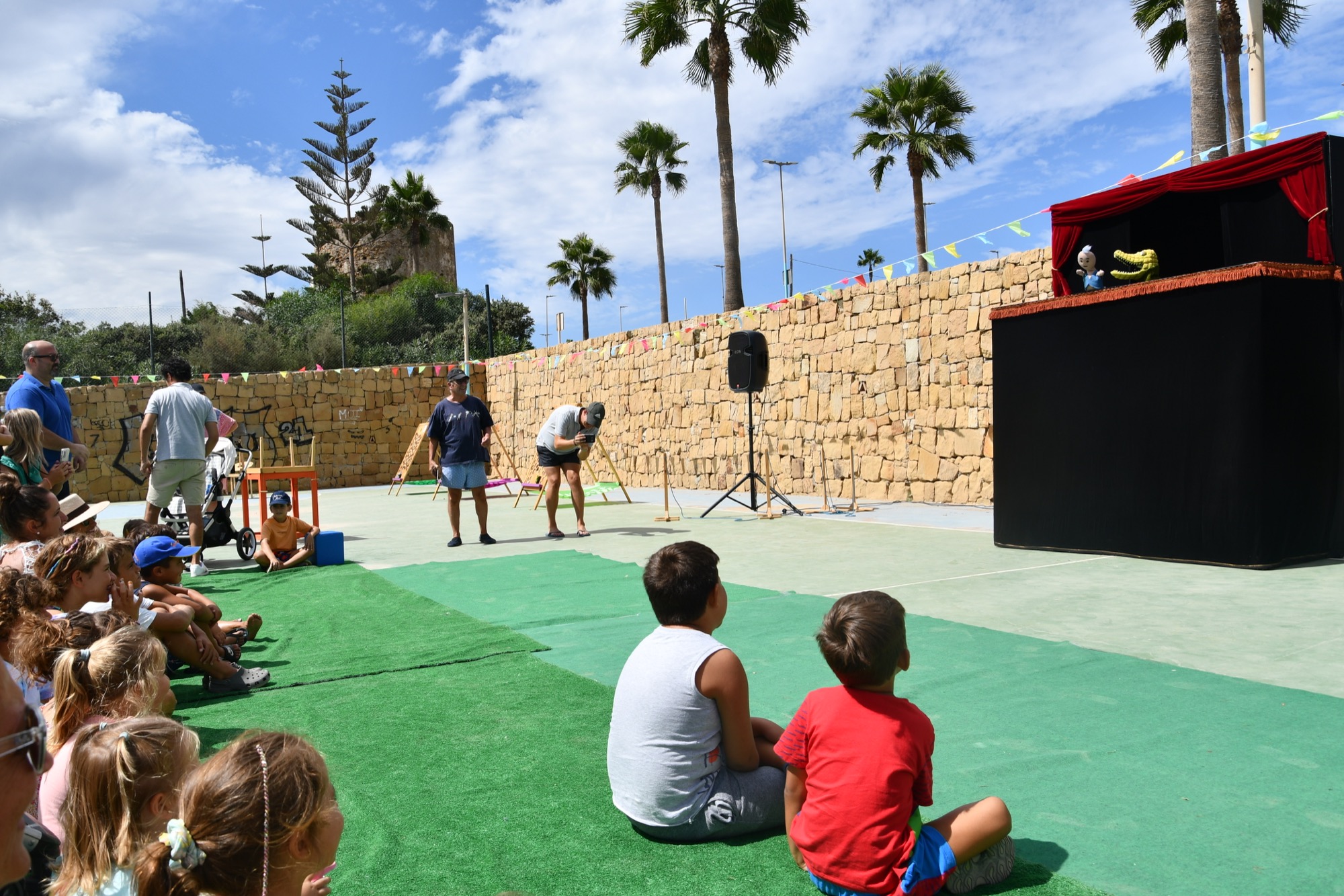 Por su parte, hoy sábado en las pistas deportivas de Torreguadiaro los niños, junto a unos curiosos padres, se divirtieron con los creativos juegos de madera a tamaño natural creados por la compañía Ángeles de Trapo y luego con cuatro historias de títeres que hicieron brotar las carcajadas de pequeños y mayores.