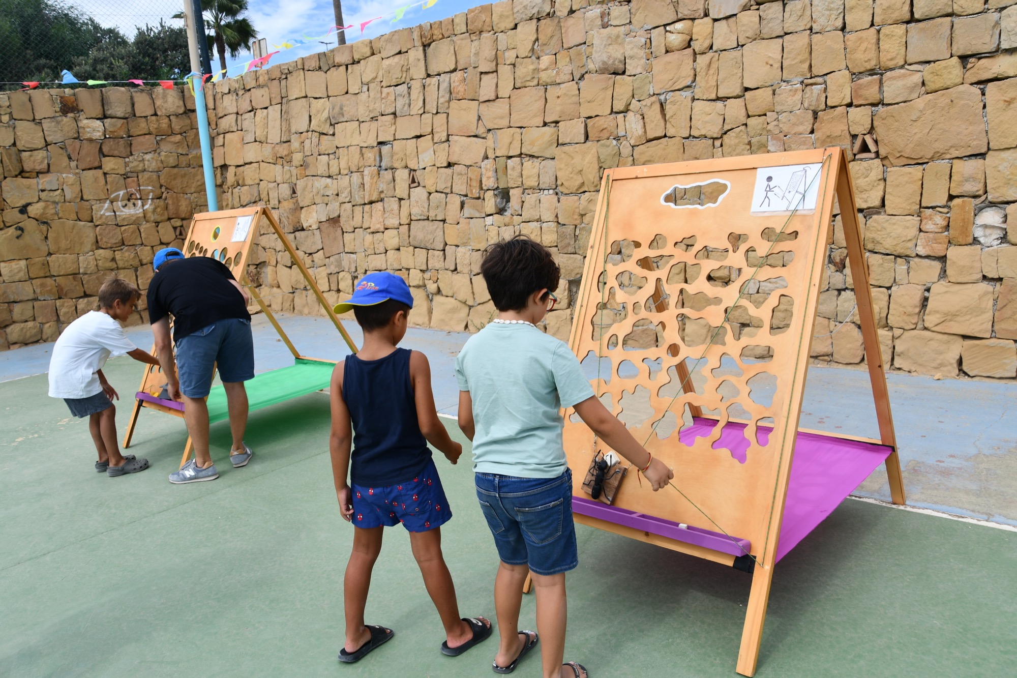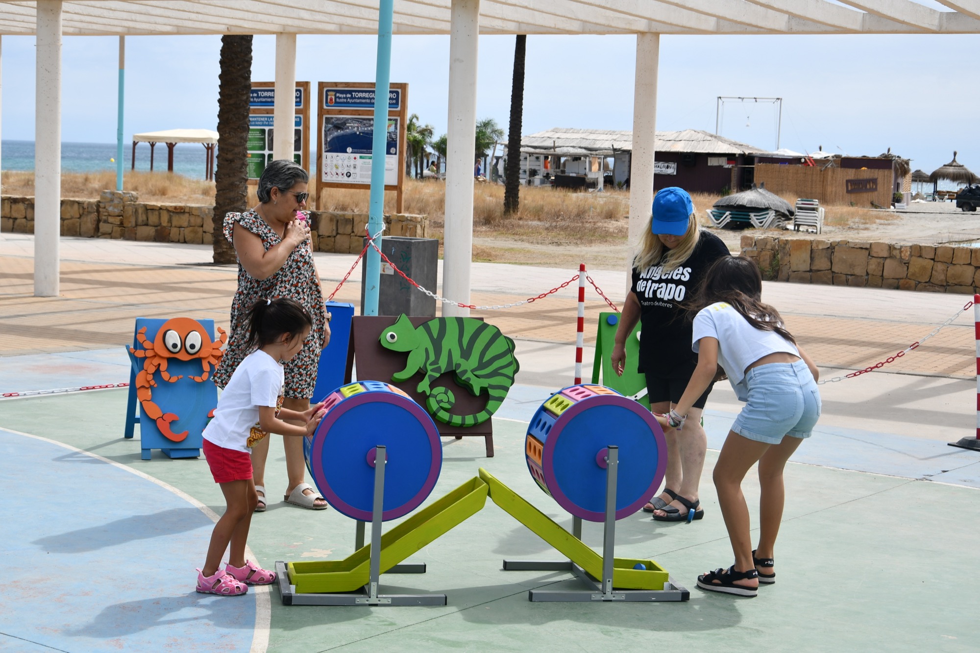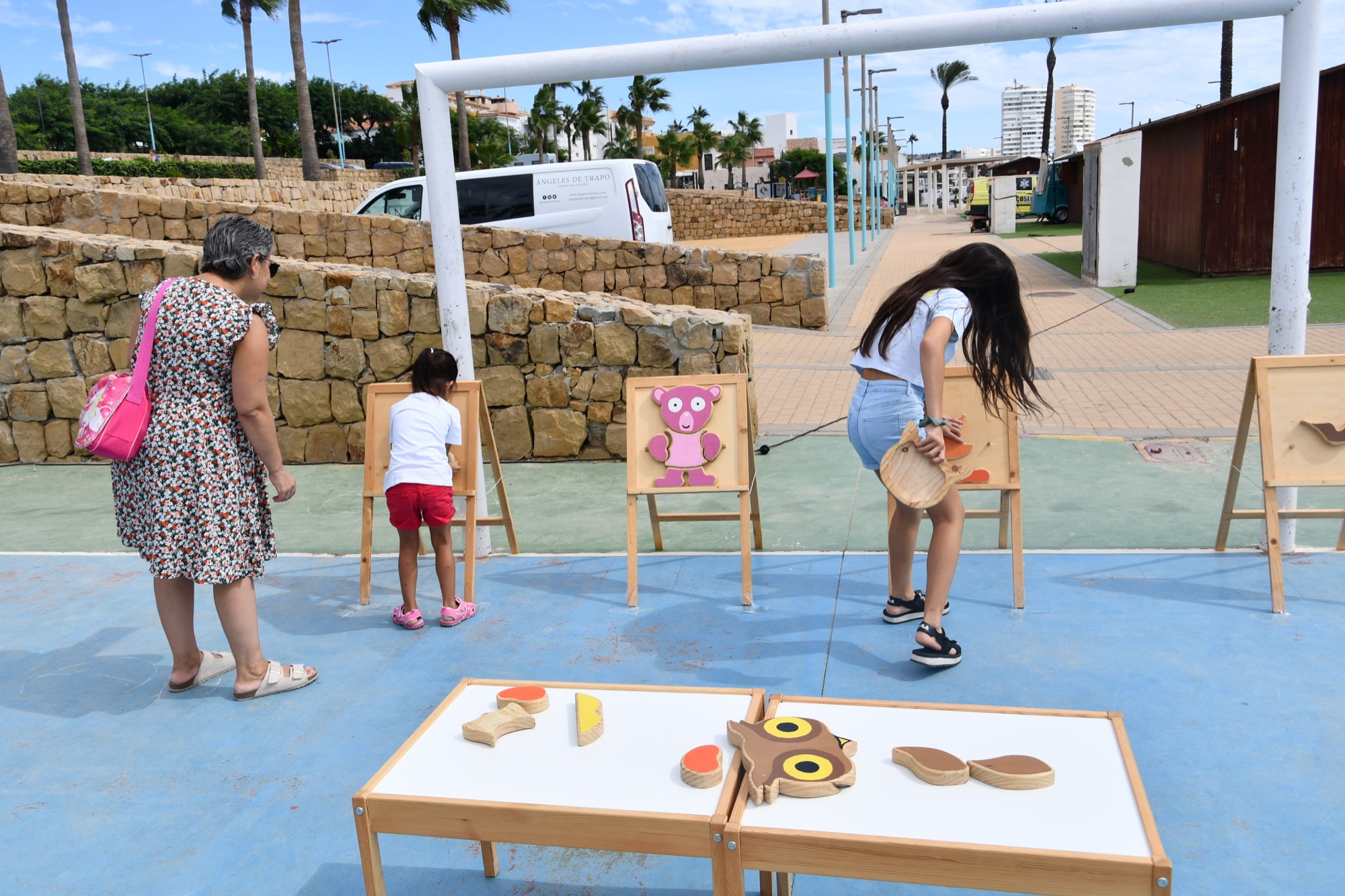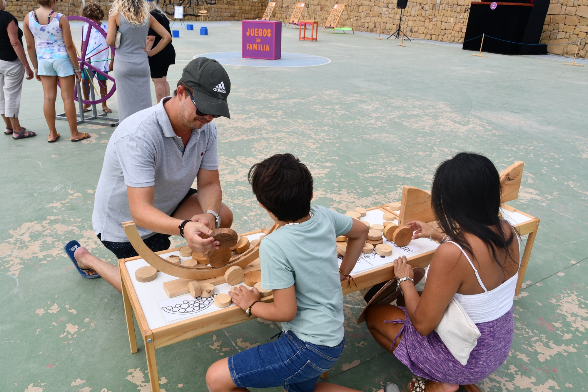 Por su parte, hoy sábado en las pistas deportivas de Torreguadiaro los niños, junto a unos curiosos padres, se divirtieron con los creativos juegos de madera a tamaño natural creados por la compañía Ángeles de Trapo y luego con cuatro historias de títeres que hicieron brotar las carcajadas de pequeños y mayores.