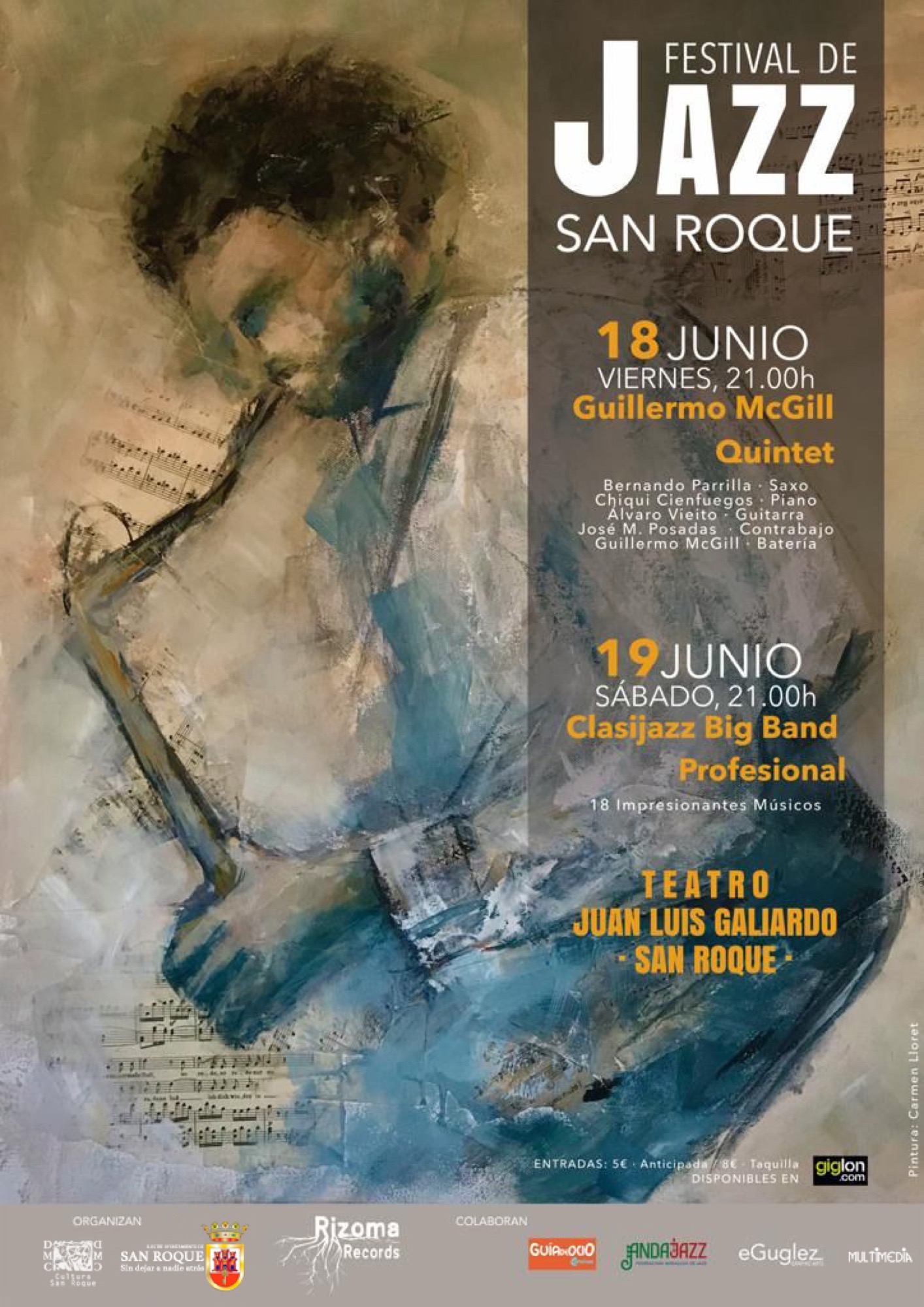 El I Festival de Jazz de San Roque constó de dos conciertos. El viernes 18 actuó el quinteto liderado por Guillermo McGill, una propuesta de flamenco jazz que encantó a los numerosos espectadores que acudieron al Teatro Juan Luis Galiardo. Este éxito se repitió el sábado 19, con la actuación de la Clasijazz Big Band Profesional (CJBb PRO), una formación compuesta por jóvenes jazzistas residentes en España que también logró gran respaldo de público. Este festival fue organizado por la Delegación Municipal de Cultura junto con Rizoma Records, Asociación de Jazz del Campo de Gibraltar.