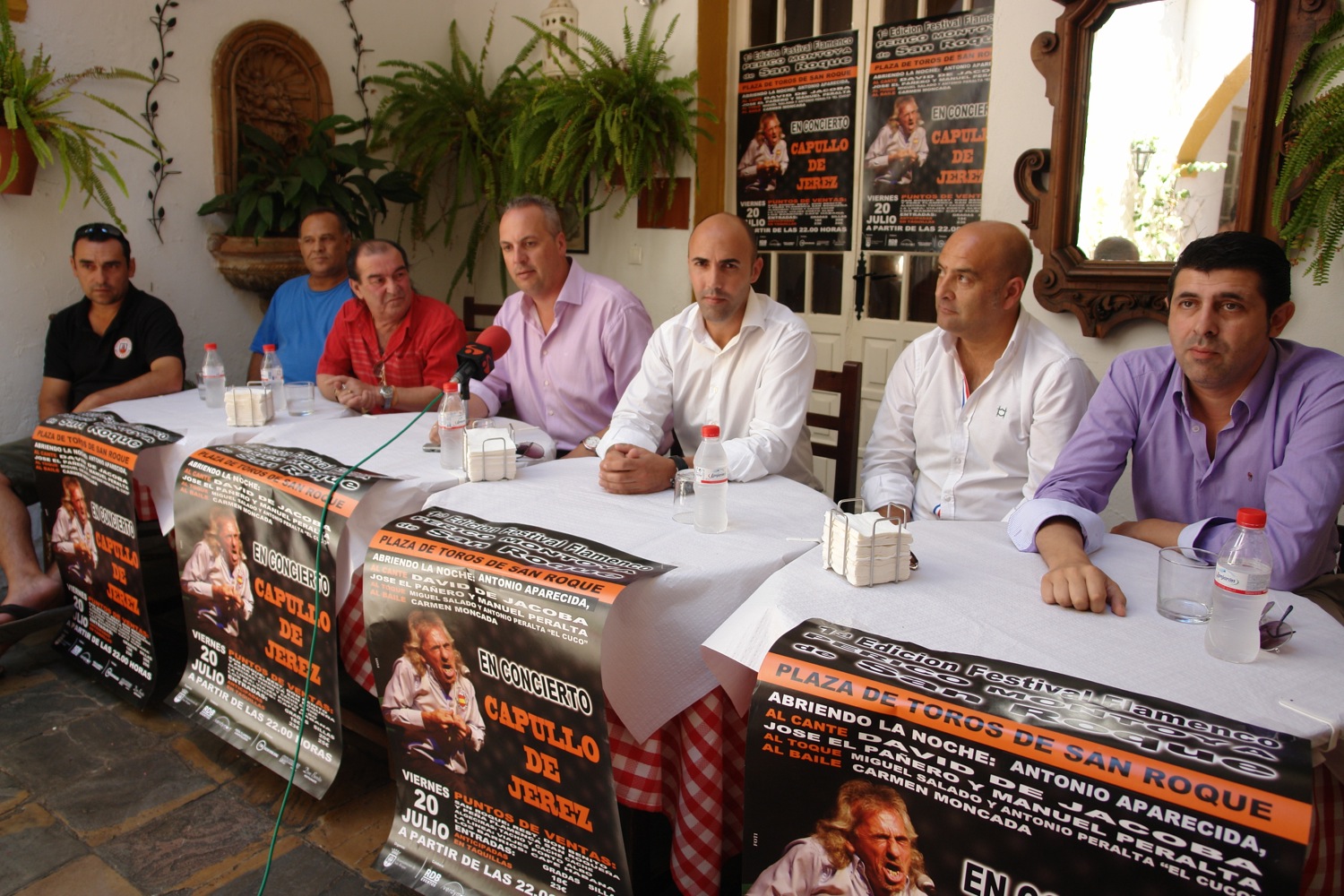 El restaurante Don Benito ha acogido hoy, jueves, la presentación del I Festival Flamenco Perico Montoya, que tendrá lugar el próximo día 20 en la Plaza de Toros dentro de la iniciativa “Verano en la Plaza” de las delegaciones de Fiestas y Juventud. El cantaor Capullo de Jerez será la estrella de una velada con la que se pretende recobrar la brillante etapa vivida en San Roque hace algunos años, cuando actuaban en el municipio grandes figuras de este arte.
