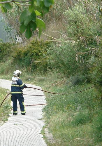 Efectivos del Consorcio de Bomberos han sofocado en Guadiaro un incendio en un cañaveral. Las causas del inicio del mismo se desconocen, pero al estar junto a un camino peatonal se estima que pudiera ser una colilla la causante del mismo.