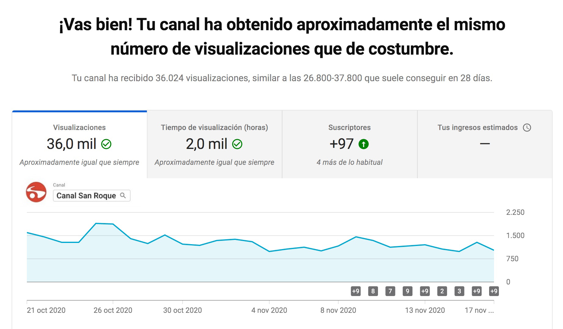 En los últimos 28 días, durante el mes de noviembre, han sido más de 36.000 los videos visionados, casi la mitad visionados desde youtube ordenadores, y el resto en móviles y otras plataformas.