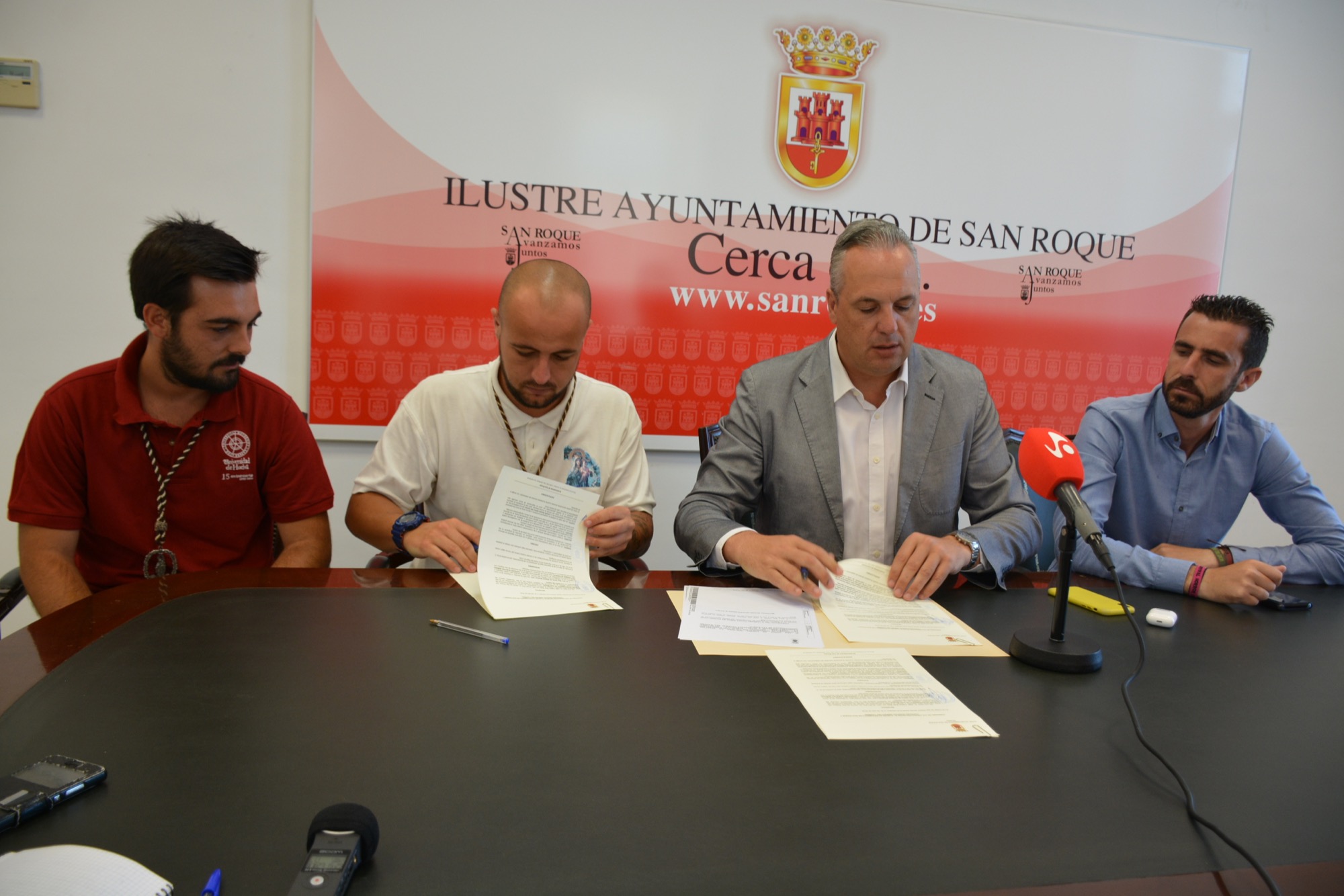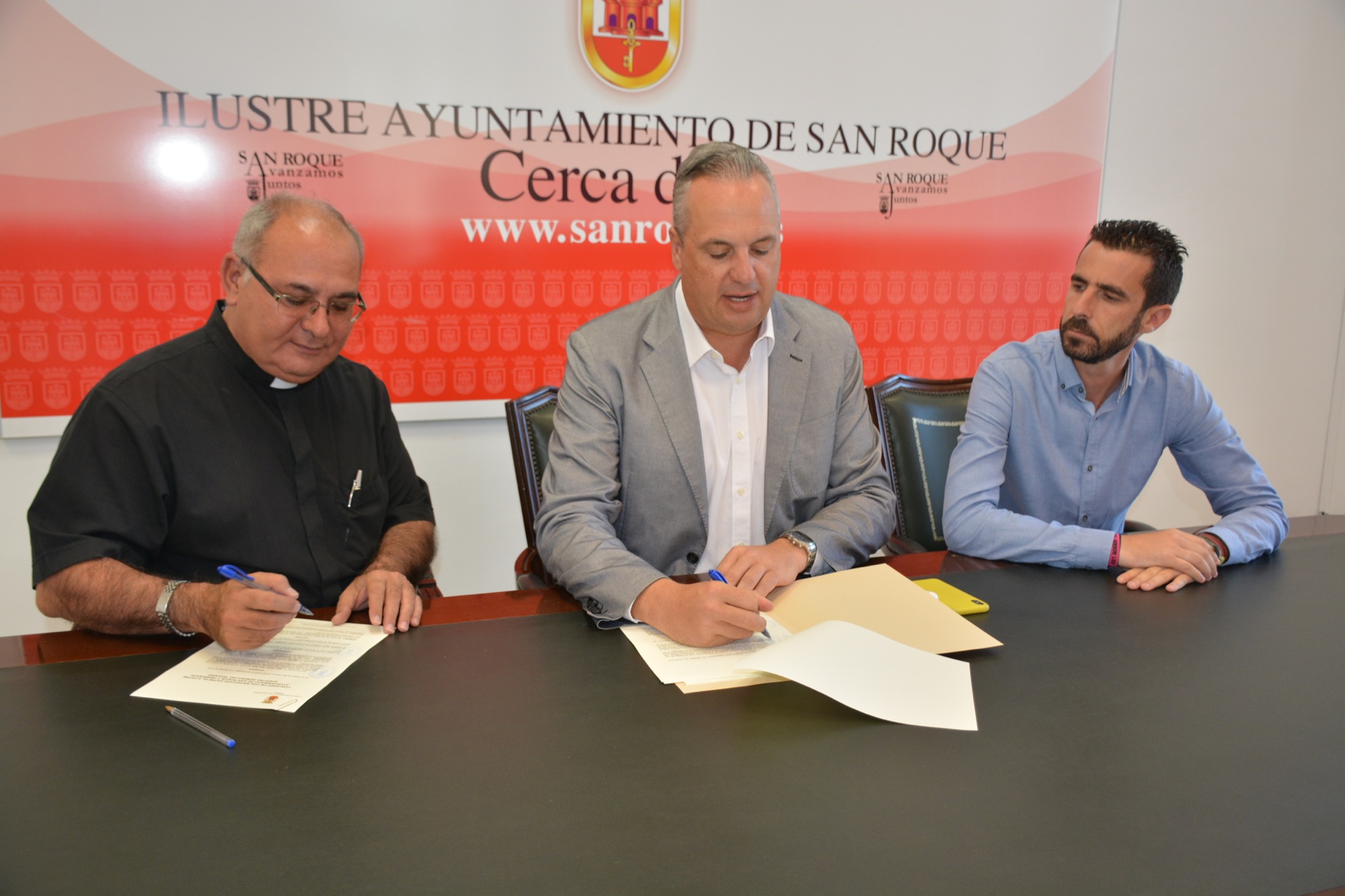 El alcalde, Juan Carlos Ruiz Boix, ha firmado ambos convenios junto al concejal de Participación Ciudadana, David Ramos, ya que el dinero aportado procede de dicho departamento. Por parte de la parroquia de Guadiaro firmó el sacerdote Agustín Borrell, mientras que el representante de la Cofradía de Puente Mayorga fue Jesús de Nazaret Bautista.
