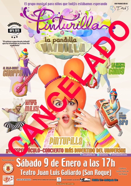 El espectáculo musical para niños “Pinturilla y la Pandilla Vainilla”, programado para el sábado, ha quedado suspendido. Este evento estaba programado dentro de los actos conmemorativos del 50 aniversario del CD San Roque.