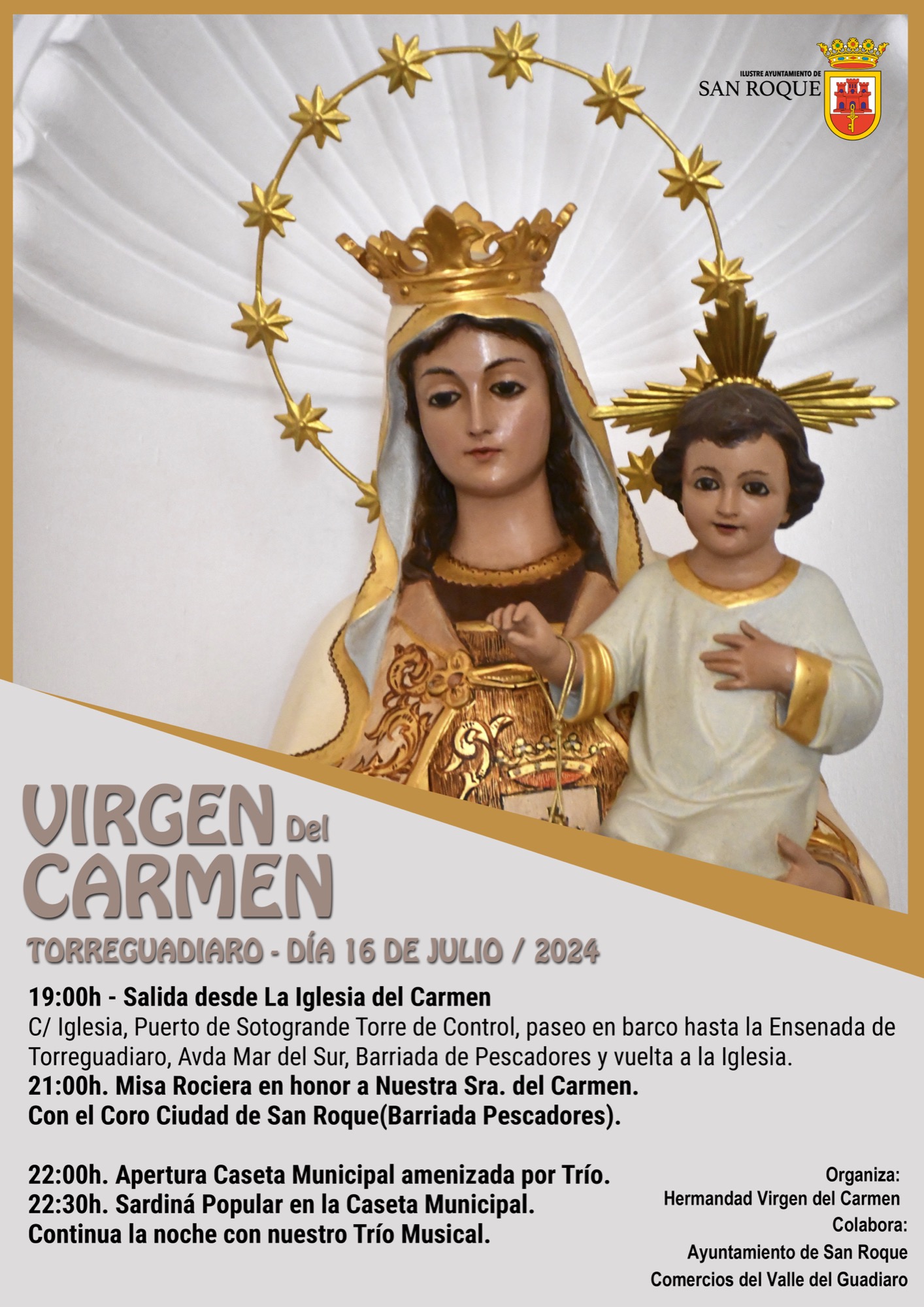 Las barriadas de Guadarranque, Torreguadiaro, Puente Mayorga y San Roque casco vivirán el próximo martes 16 sus tradicionales procesiones en honor de la Virgen del Carmen, en las que se celebra la estrecha vinculación con la mar de dichos núcleos de población sanroqueños.