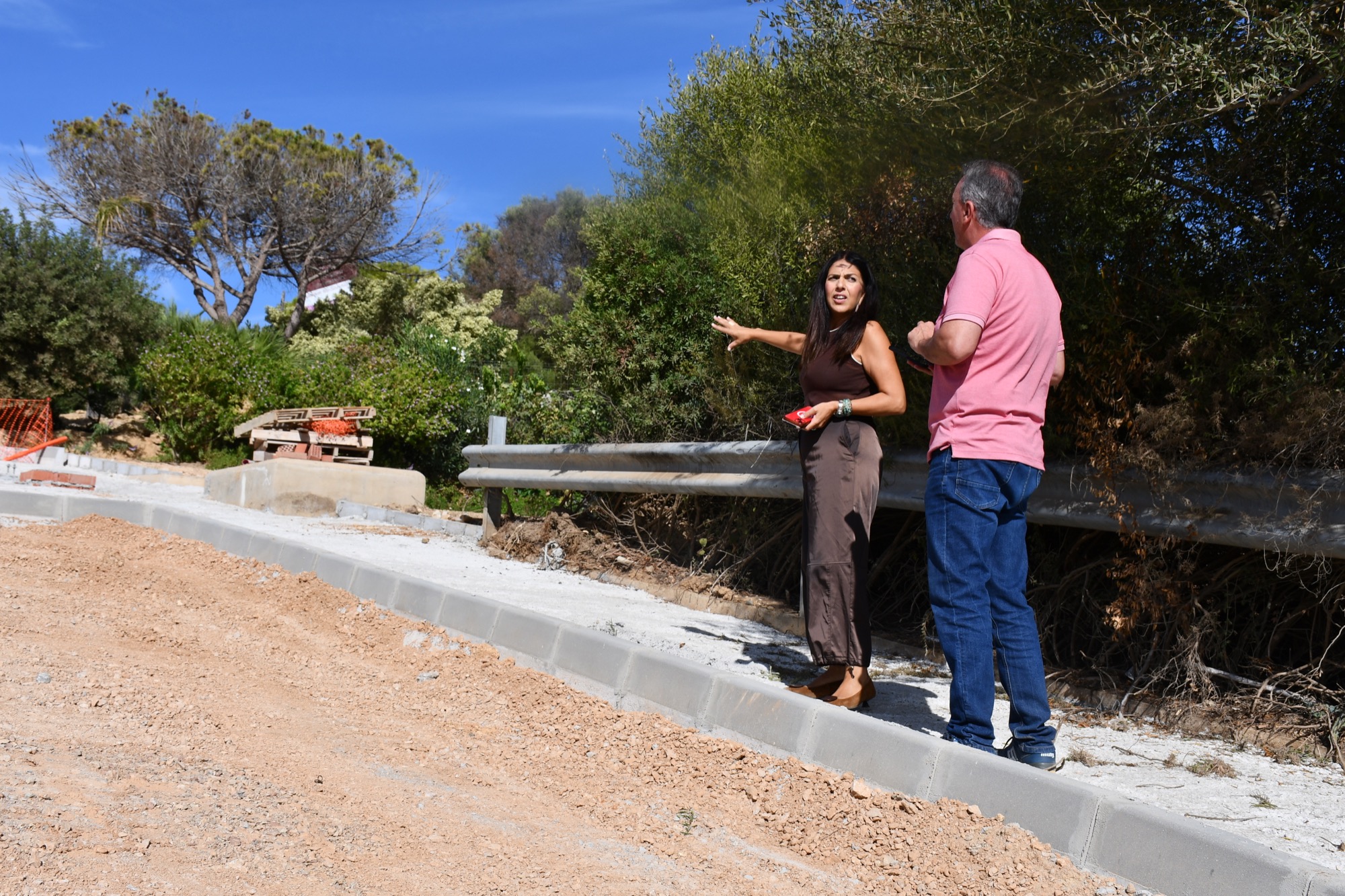 La teniente de alcalde de Obras y Servicios, Belén Jiménez, junto a un técnico municipal, ha realizado una visita de inspección a una de las actuaciones que se vienen haciendo desde el departamento de Infraestructuras y Obras, de la mencionada delegación. Se trata de una de las vías centrales de Pueblo Nuevo de Guadiaro, la Avenida El Conchudo, que además cuenta con mucho tráfico y no tenía acera.