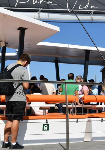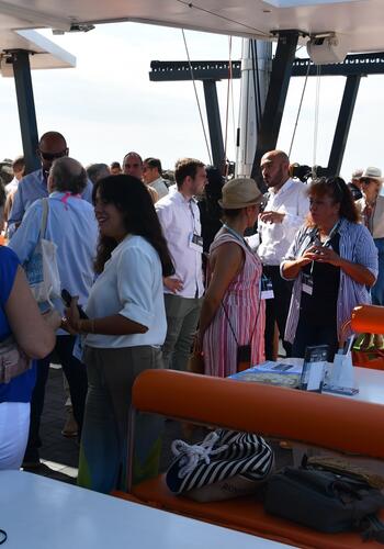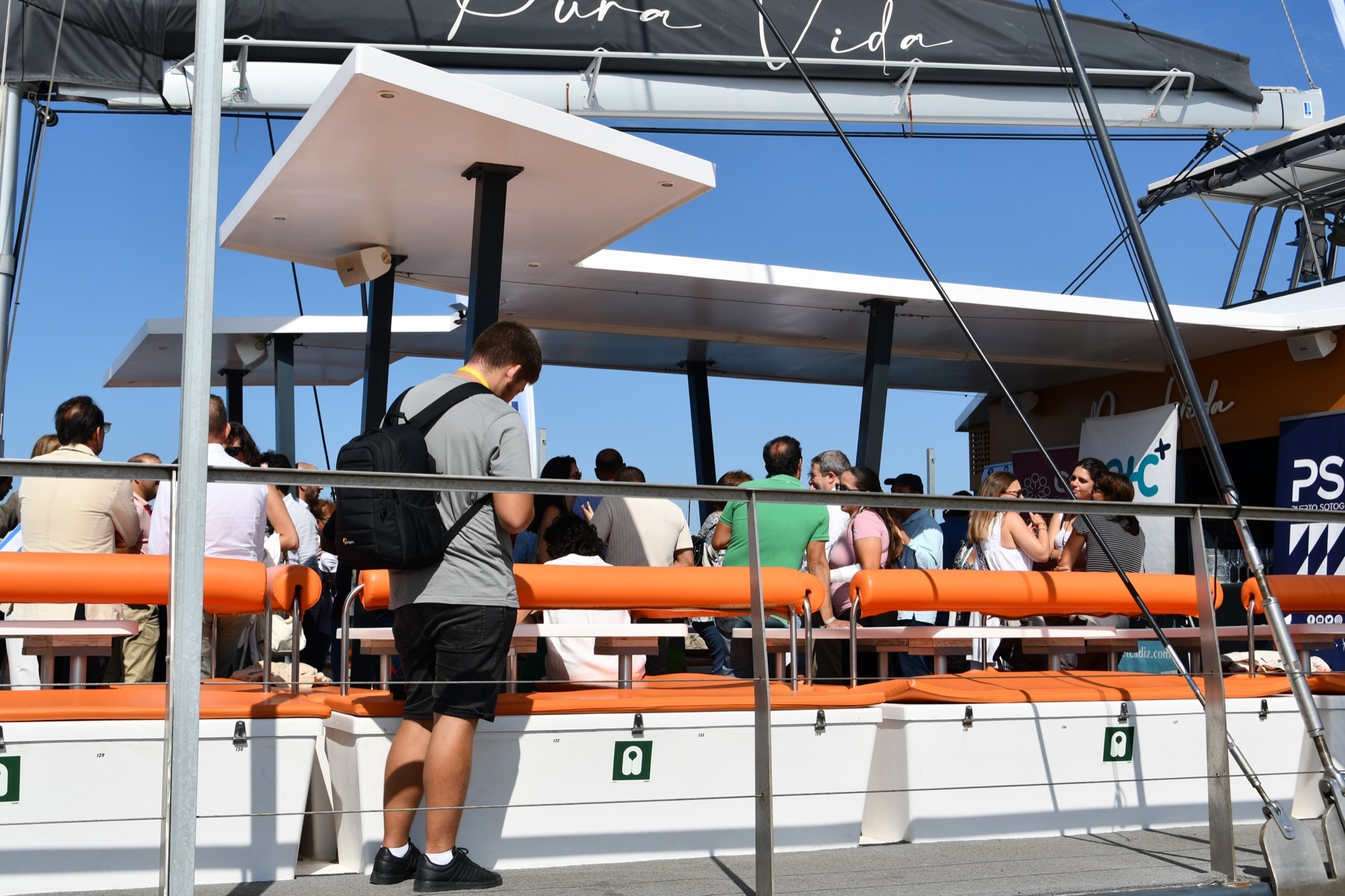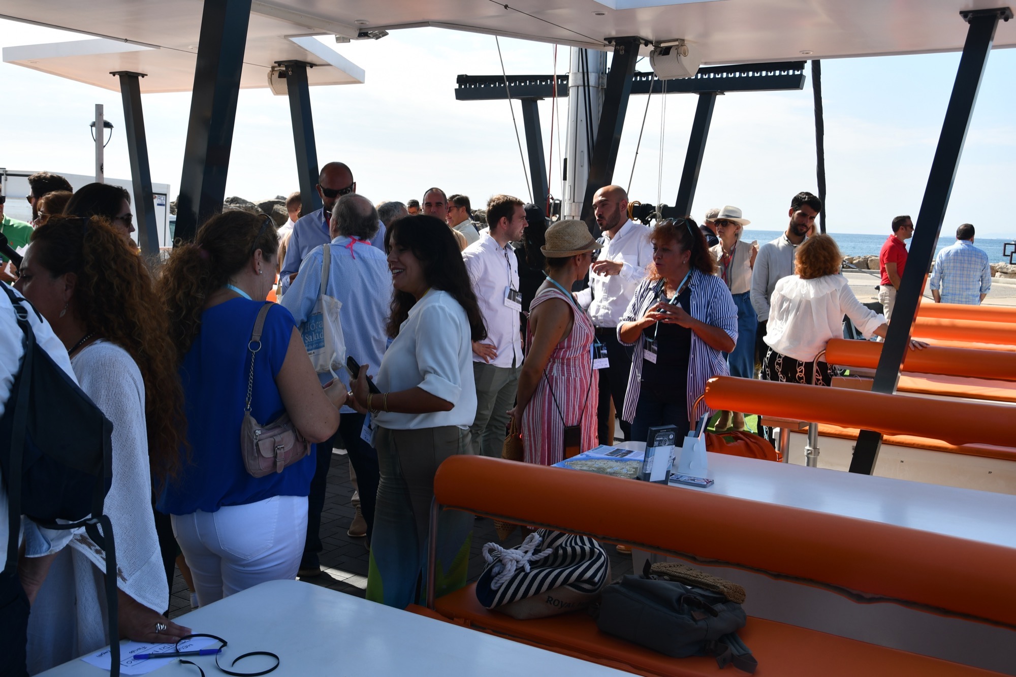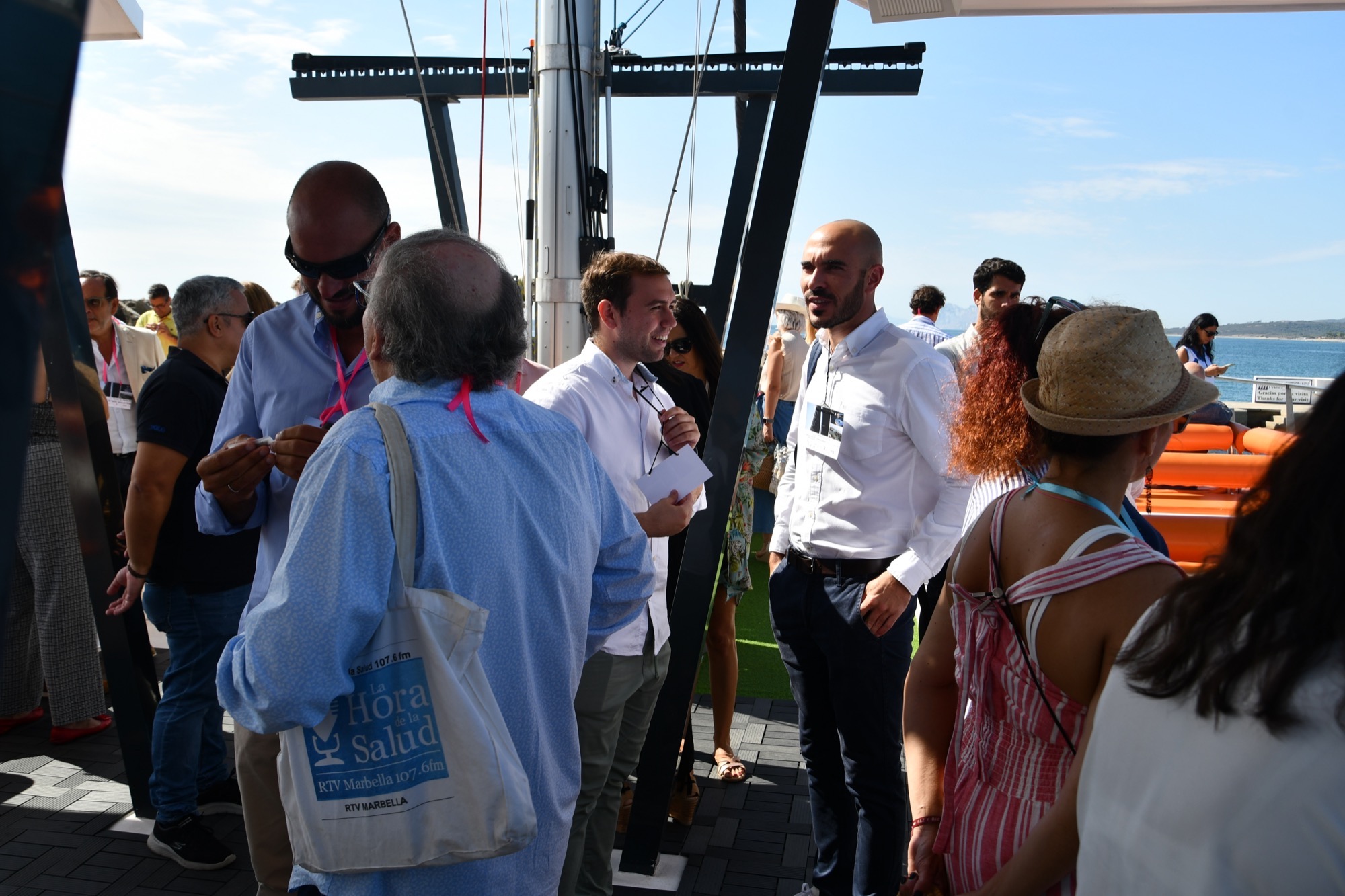 Unos cien participantes se han dado cita hoy miércoles en Puerto Sotogrande con motivo de un Encuentro de Networking de Empresas de los Sectores Turístico y Náutico, que se ha celebrado a bordo del catamarán Pura Vida. Los asistentes se dividieron en cinco grupos de trabajo para tratar de distintas cuestiones mientras navegaban en la citada embarcación, con el objetivo de crear sinergias con las que mejorar sus negocios.