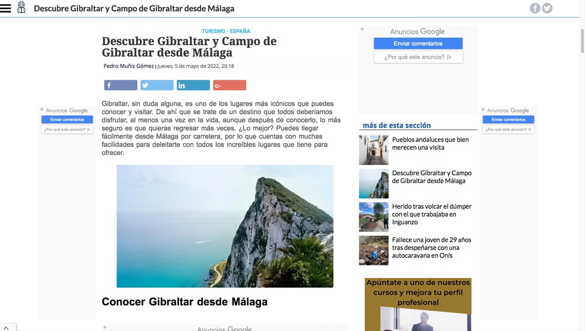 La concejal de Turismo, Ana Ruiz, ha señalado que “bajo el título 'Descubre Gibraltar y Campo de Gibraltar desde Málaga', este diario digital de la montaña oriental leonesa y palentina propone un viaje por carretera, especialmente en autocaravana, para conocer los principales atractivos de nuestra comarca. Sobre todo, recomienda el autor visitar Sotogrande, que califica como 'un lugar que combina grandes bellezas naturales, tranquilidad y un alto poder adquisitivo'”.