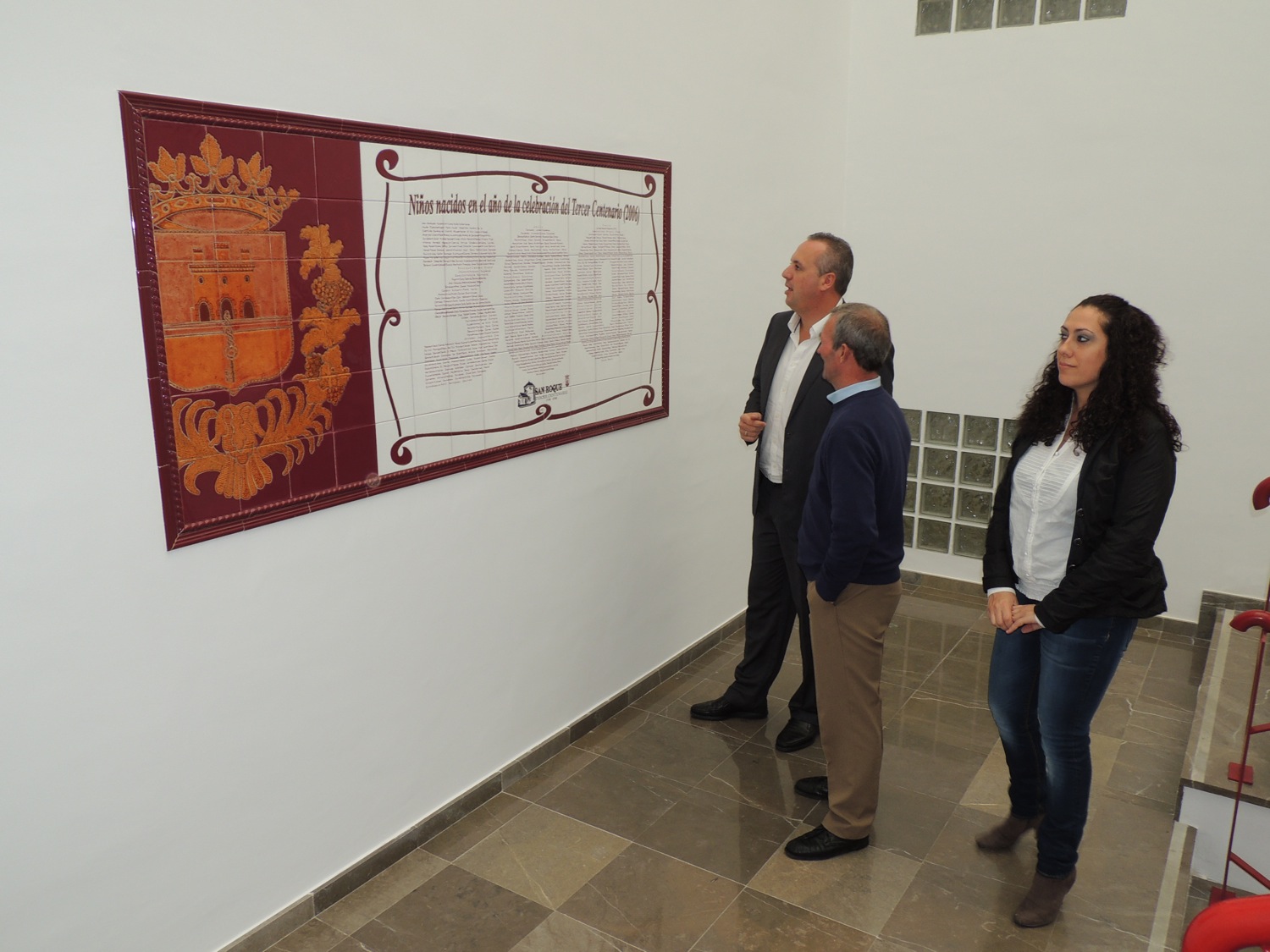 Un mosaico, instalado en la Casa Consistorial, recoge los nombres de los niños nacidos en 2006 en San Roque, año del Tercer Centenario de la creación de la ciudad. El mosaico ha sido visitado esta mañana por el alcalde, Juan Carlos Ruiz Boix, la te de alcalde de Cultura, Dolores Marchena, y el tte de alcalde de Obras y Servicios, José Vera.