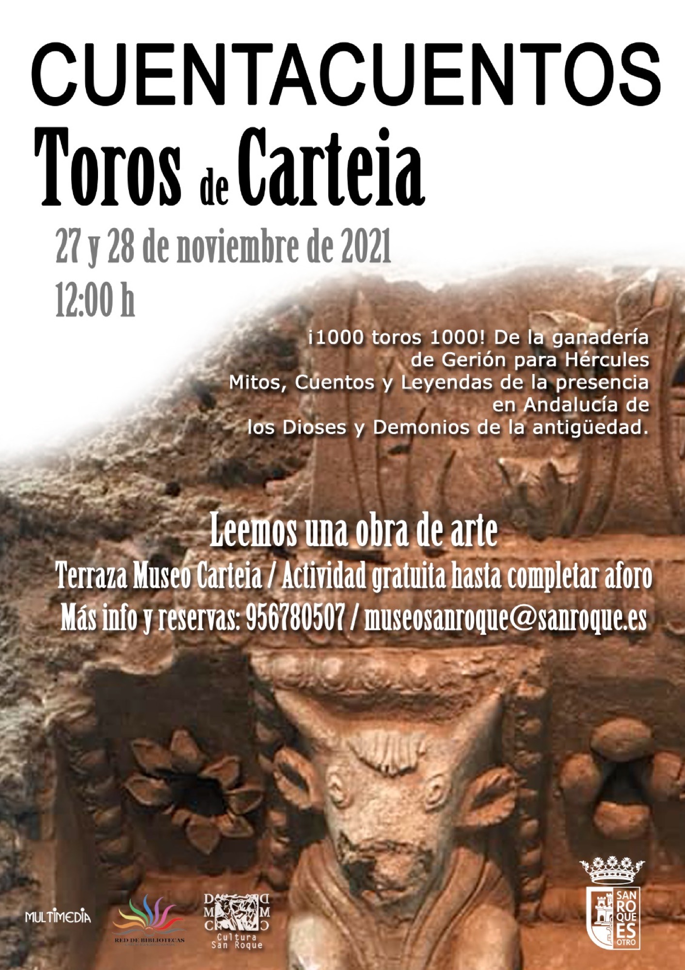 Los cuentacuentos “Toros de Carteia” se desarrollarán los días 27 y 28 a las 12.00 horas. Con la colaboración de la Red Municipal de Bibliotecas, que dirige la teniente de alcalde Mónica Córdoba, el narrador oral Filiberto Chamorro toma como base leyendas como las aventuras de Hércules con los toros de Gerión para referirse a varias piezas que se guardan en el museo, como friso del bucráneo.